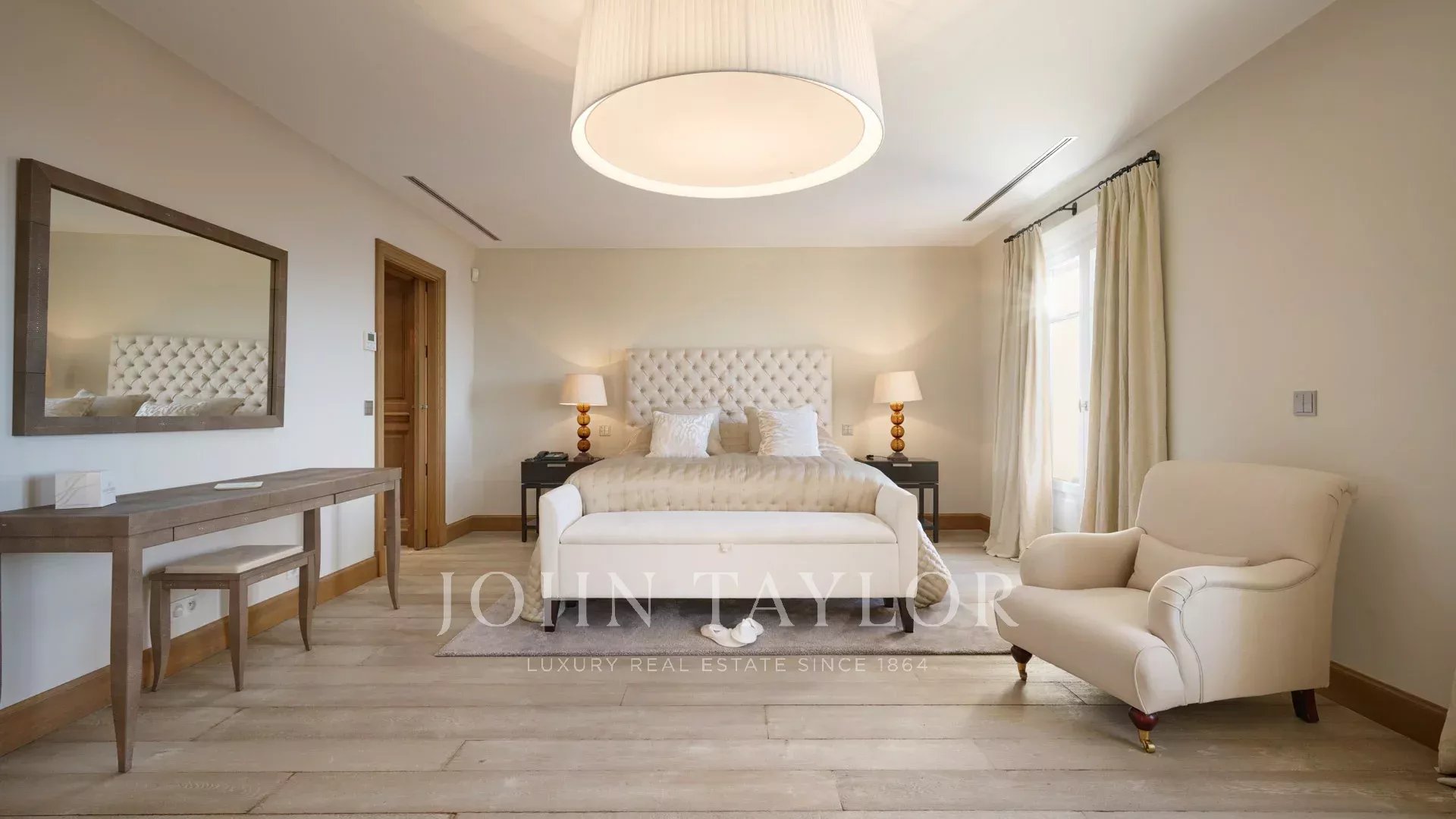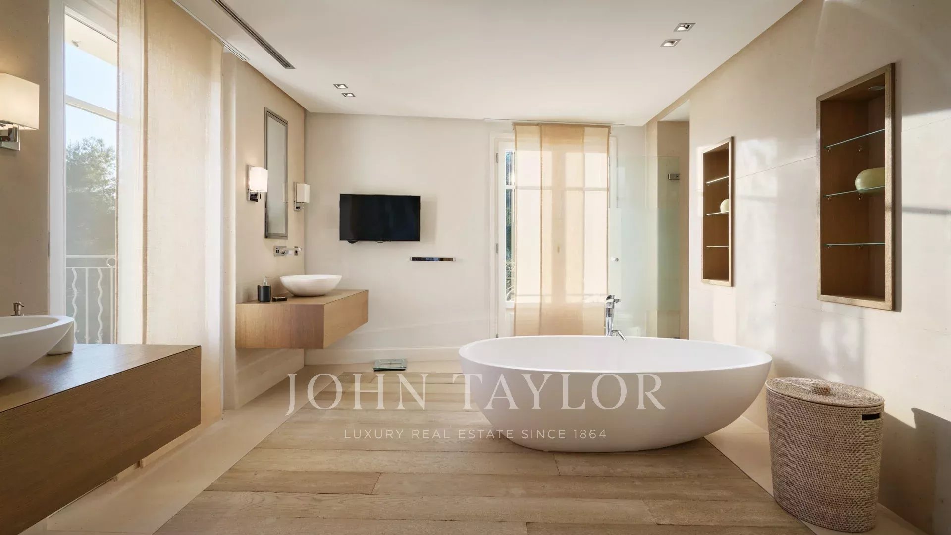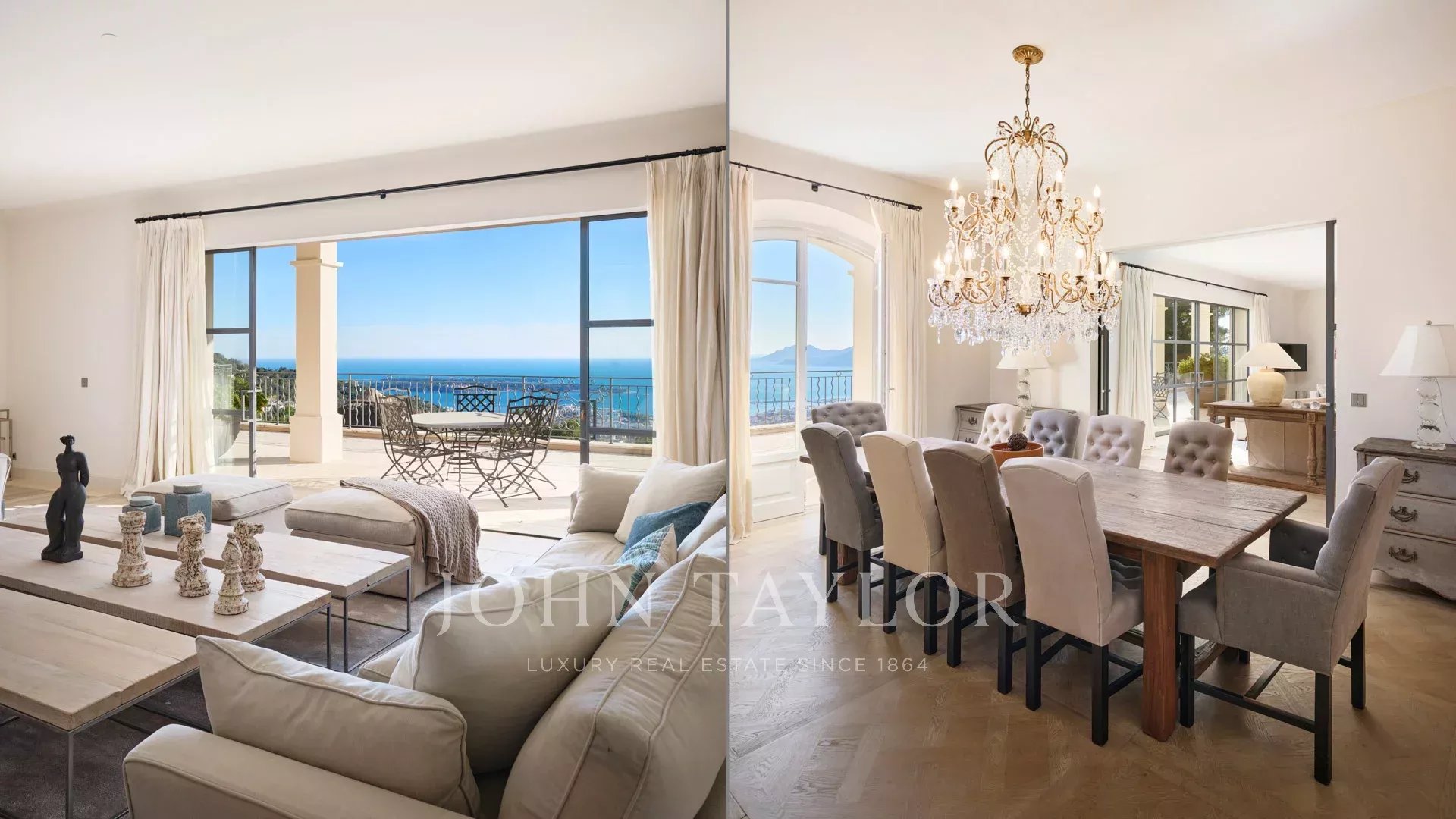On the heights of Cannes, offering a panoramic view of the Bay of Cannes, this magnificent villa fully renovated in a contemporary style is set in the heart of a park of 7 700 sq.m. The fully air-conditioned villa of 500 sq.m impresses with its generous volumes, the top of the range appointments throughout and its large terraces.