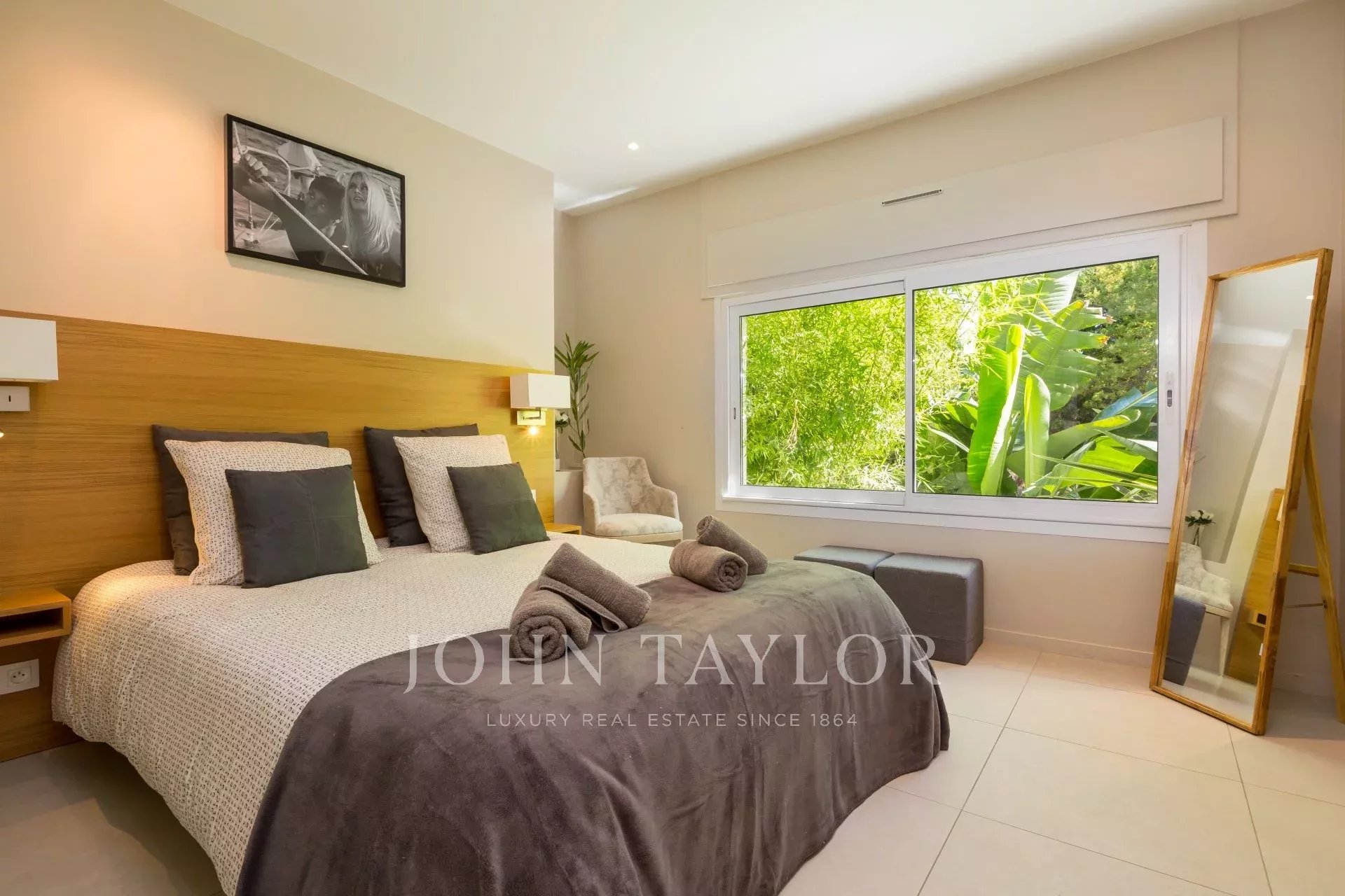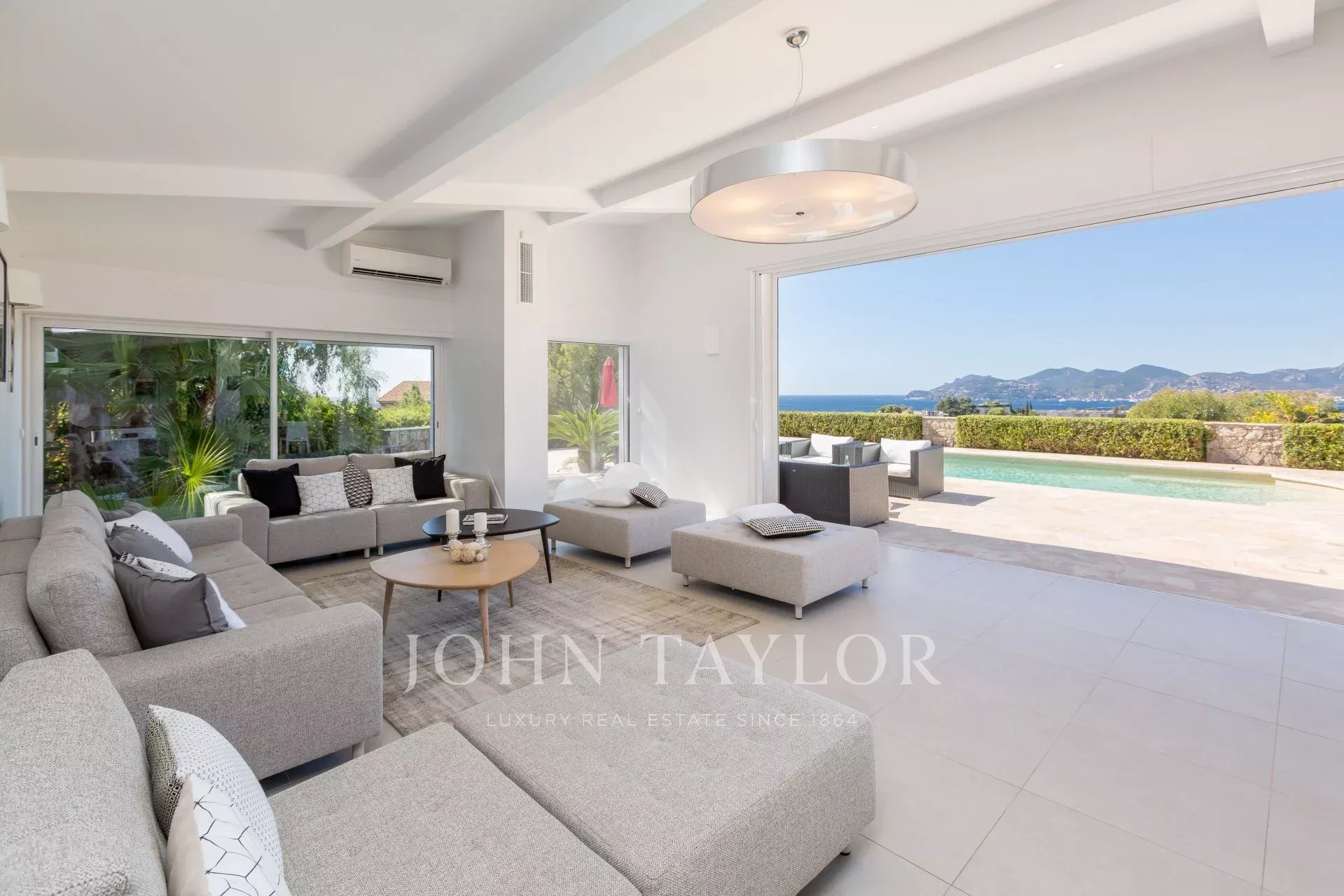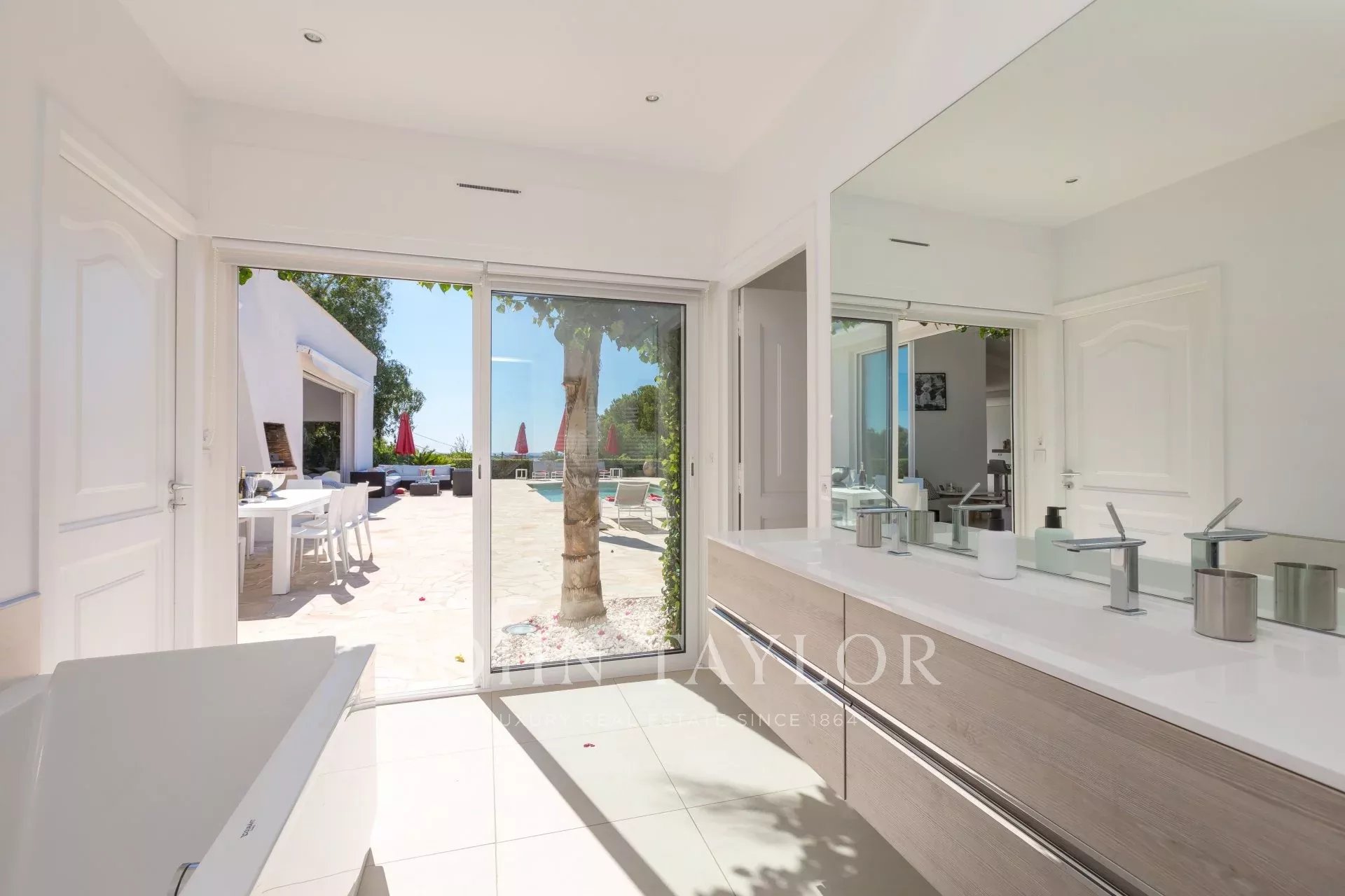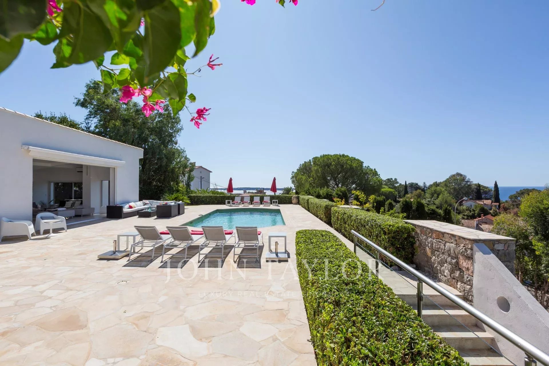 On the heights of Cannes, in the area called "Croix des Gardes", a few minutes from downtown and the beaches, modern villa entirely renovated of 300 sq.m on a ground of 2 000 sq.m enjoying a panoramic sea-view.