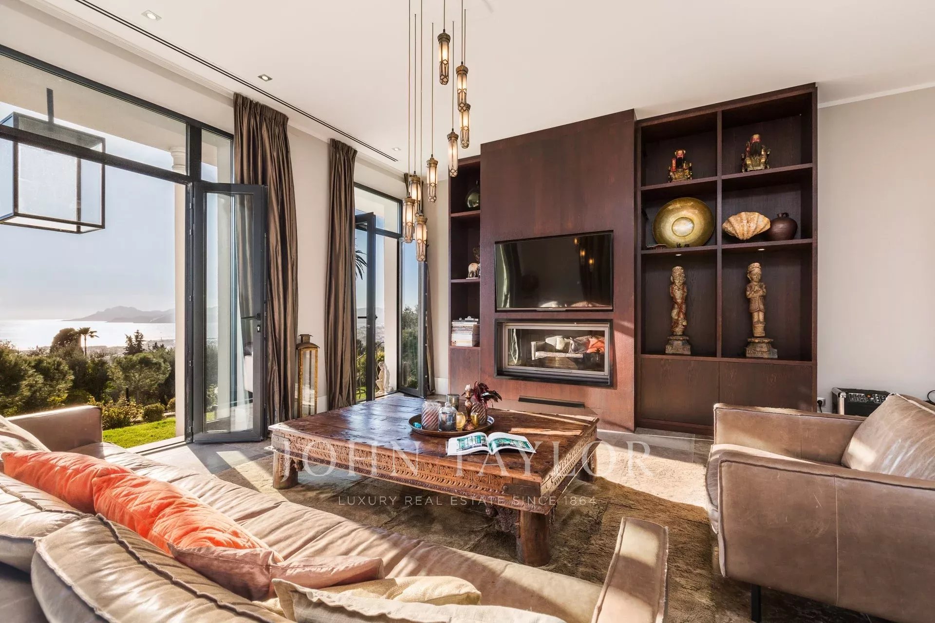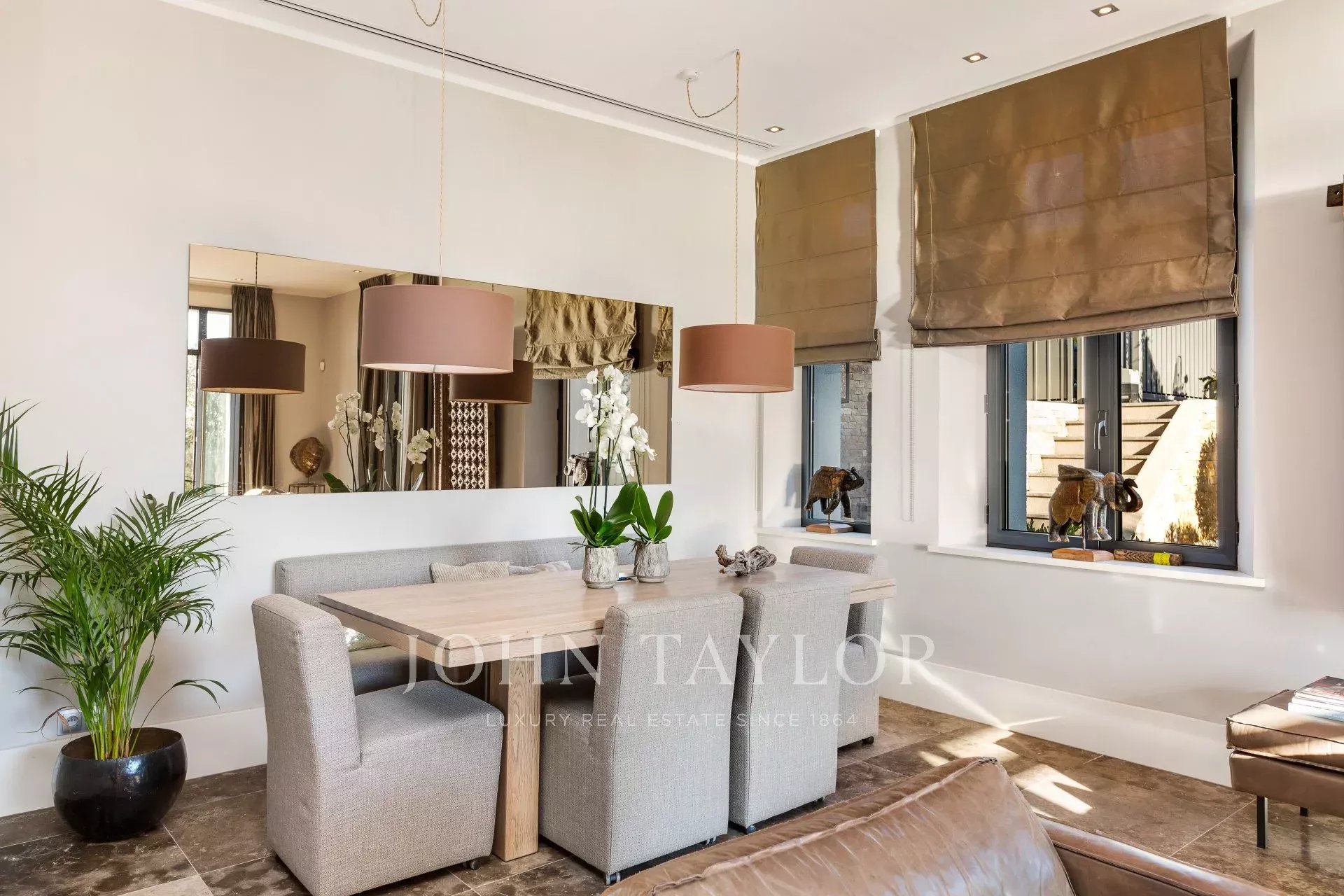 Attractive reception room comprising lounge and dining room, opening onto the terrace and the garden, sea view