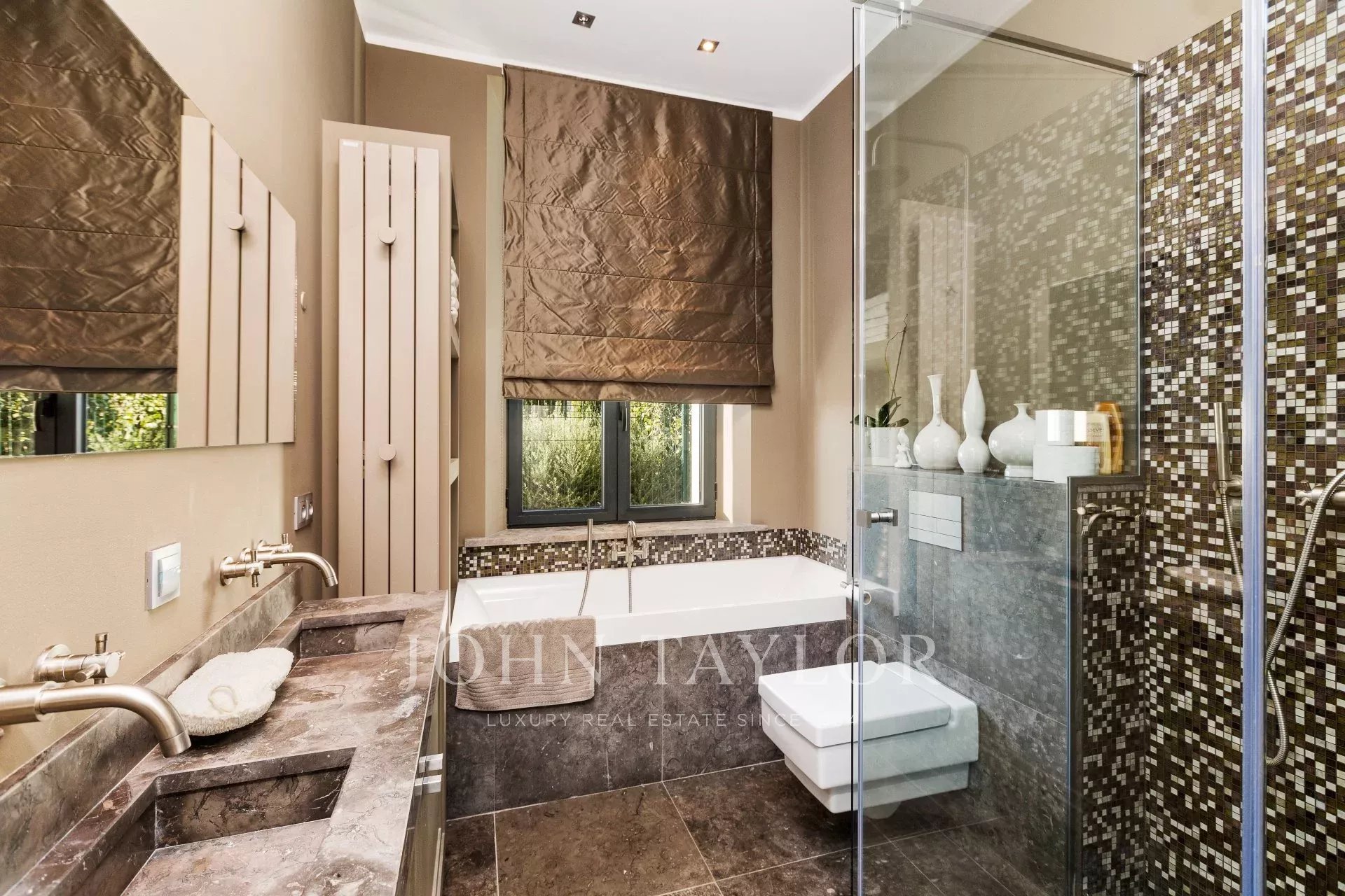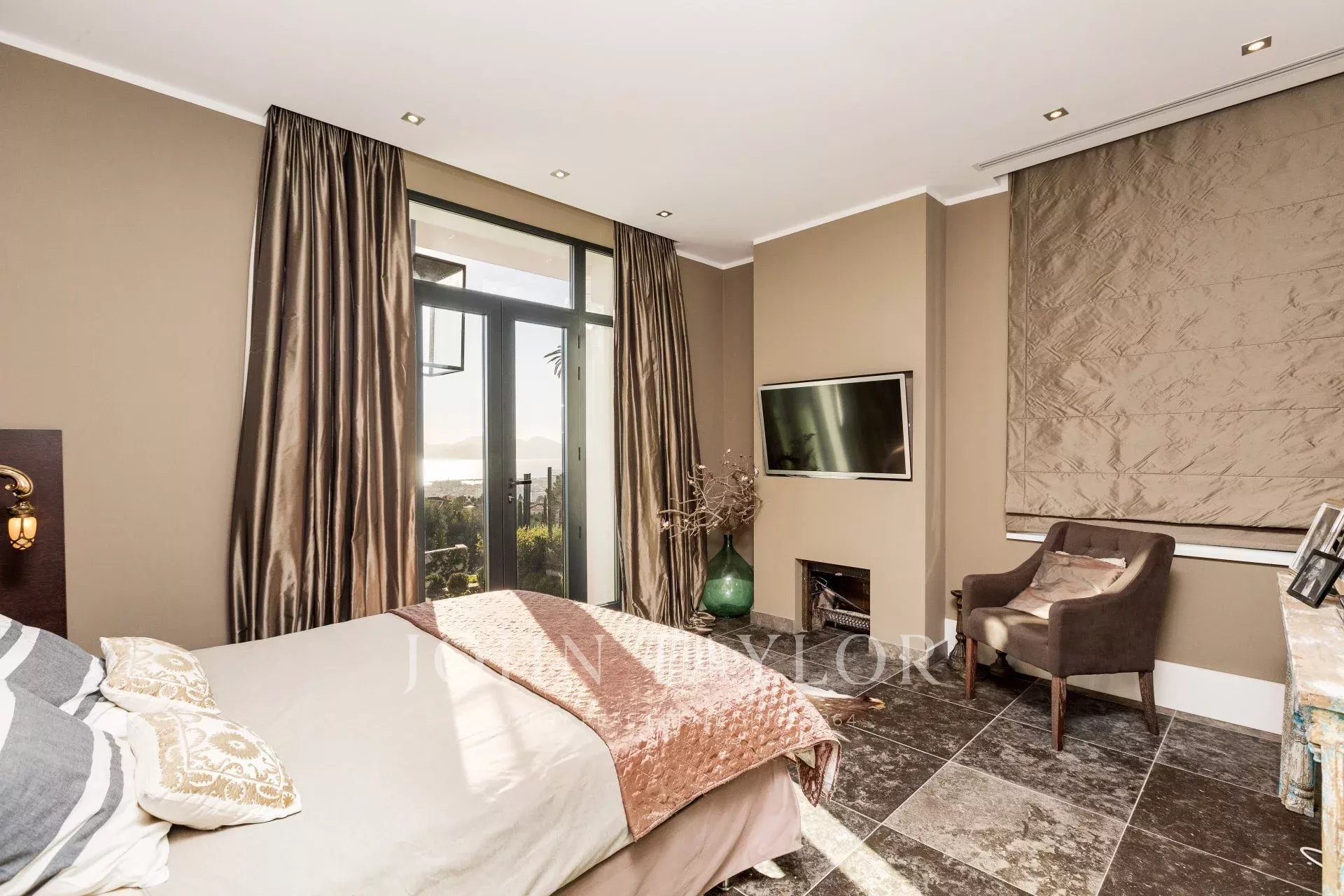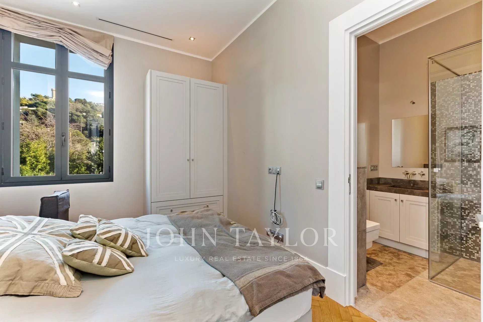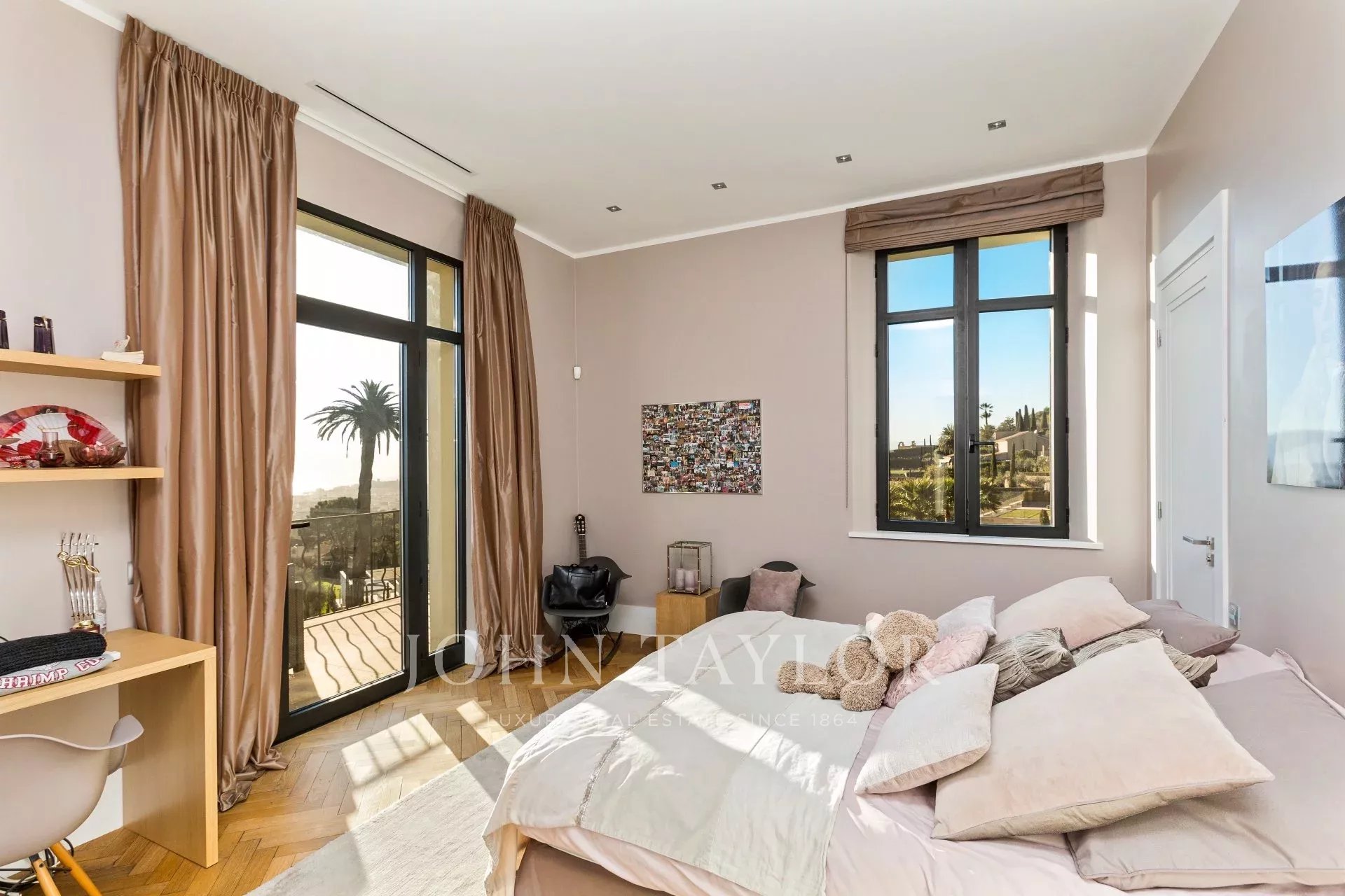 Sets on 600 sq.m garden, beautiful mansion newly renovated and decorated in contemporary style with a dominant position and enjoying superb sea views over the bay of Cannes , close to city centre. Top range amenities, air-conditioning, internet connection.