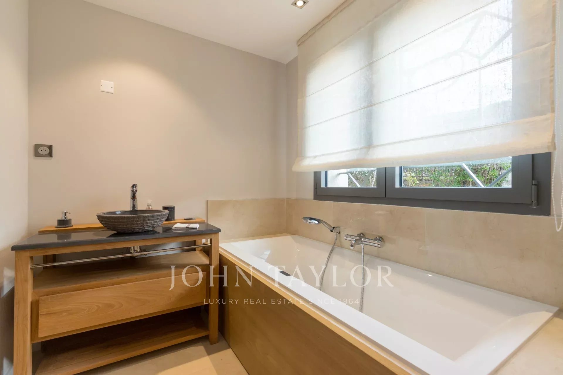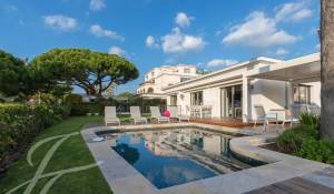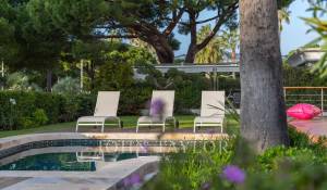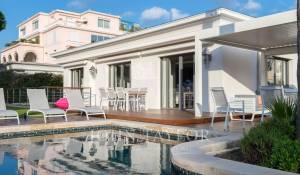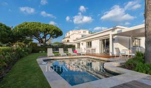 In a private estate on the Croisette, at walking distance from the beaches and the Port Canto, close to the city center of Cannes, attractive air- conditioned villa of 340 sq.m on 650 sq.m of flat garden with terraces. Recently renovated, the villa seduces by its decoration and its high quality amenities.