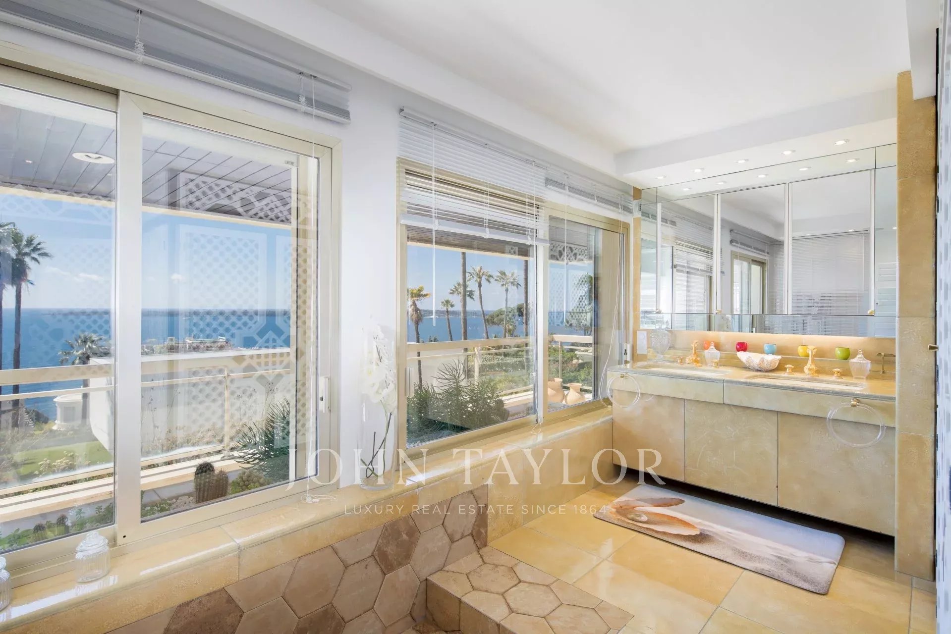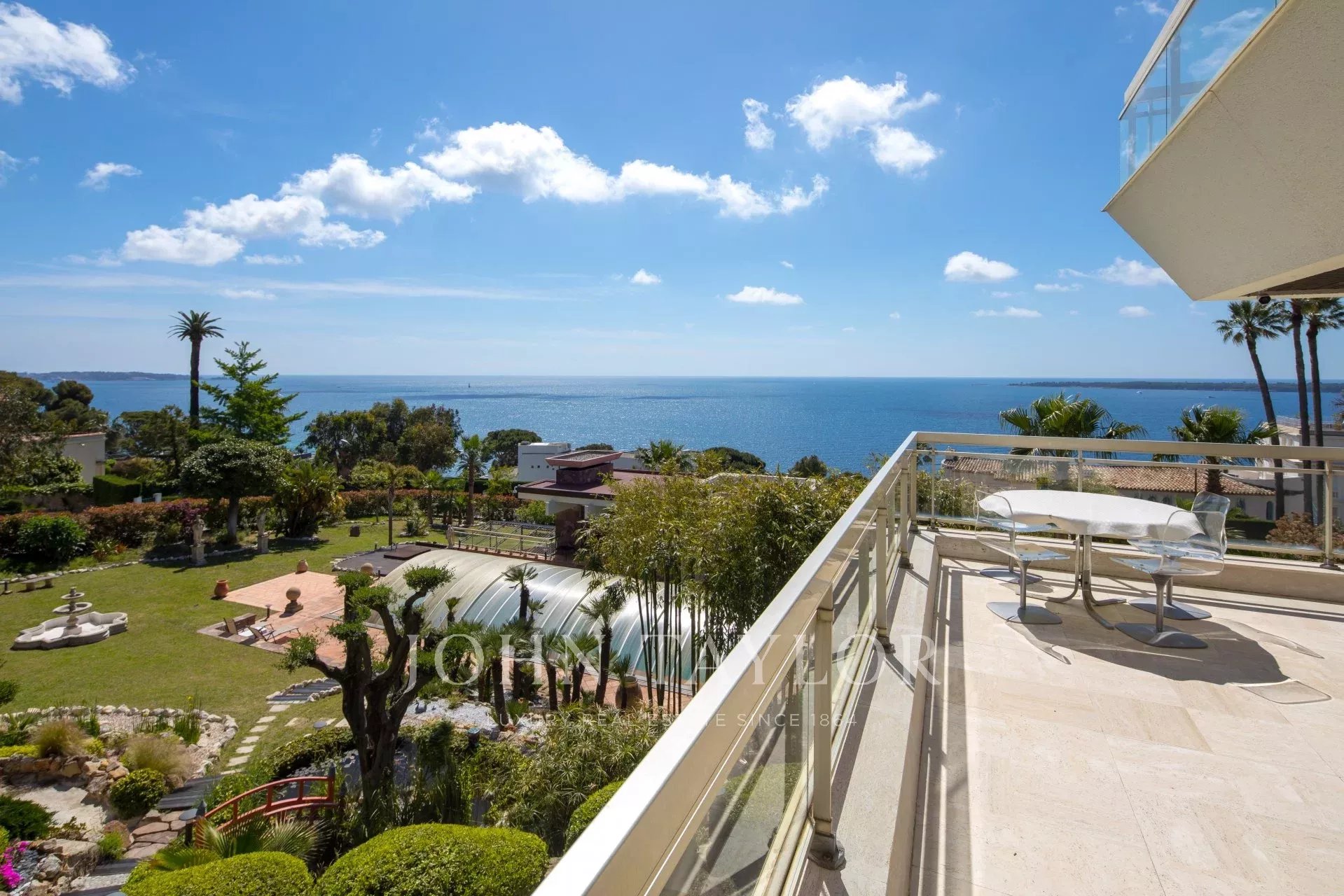 In a secured domain, large villa offering 700 sq.m living area, set in grounds of about 3 000 sq.m enjoying panoramic views of the sea and the Lerins Islands.