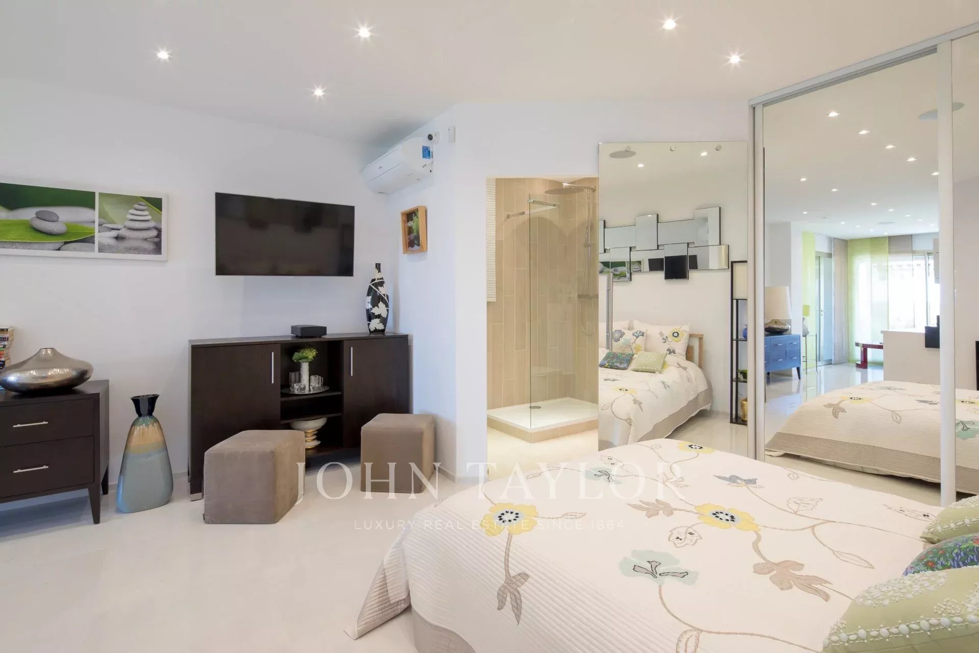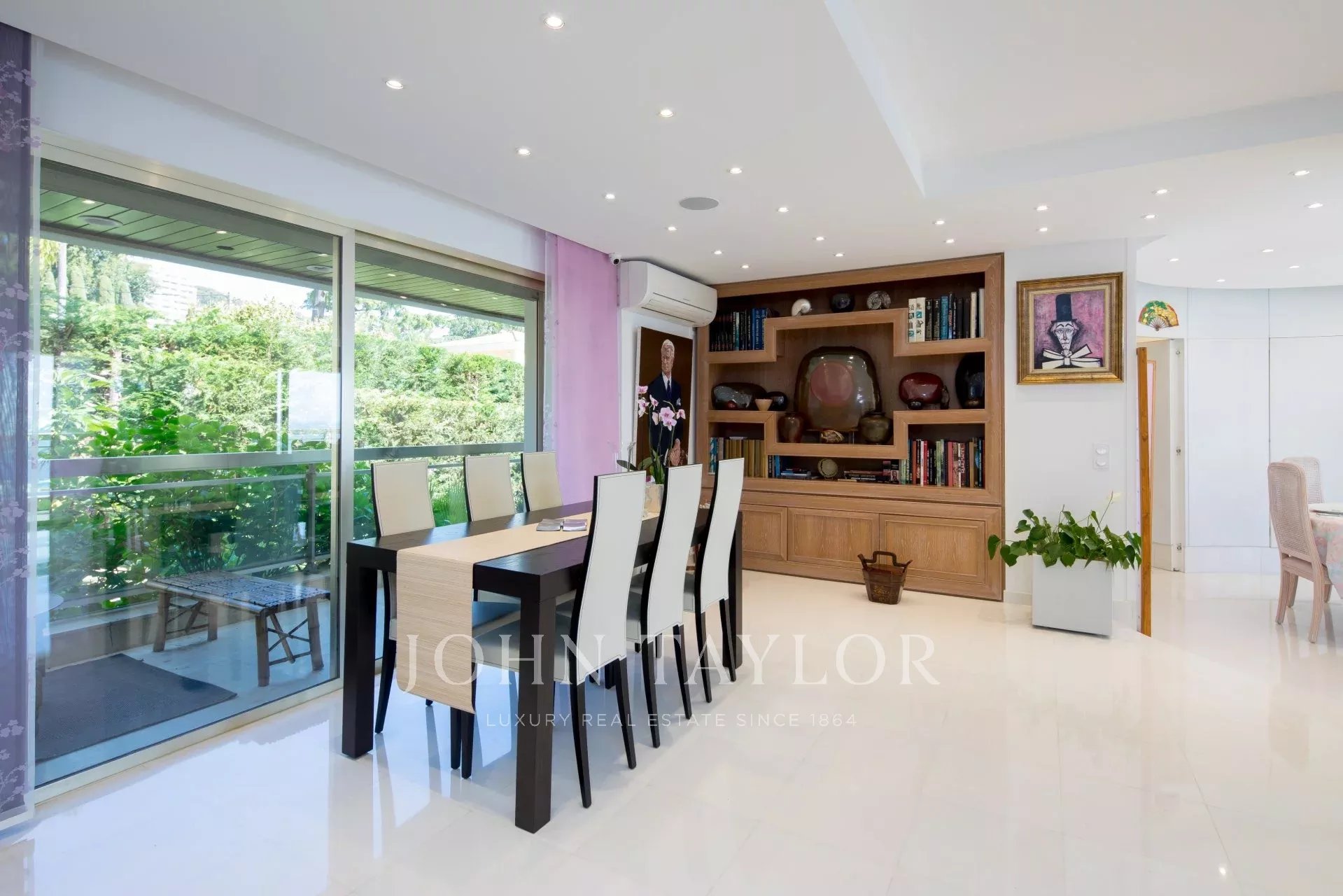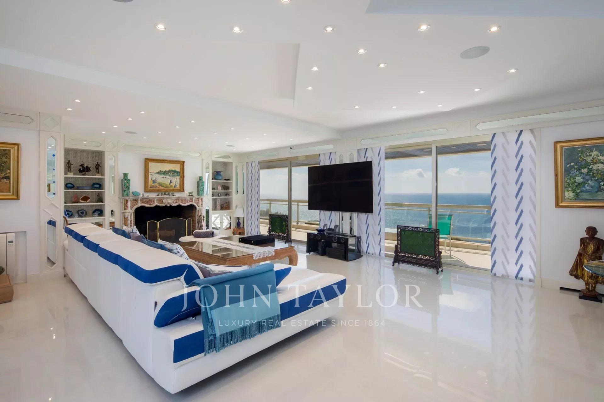 Entrance leading to a double living / dining room opening onto the terrace, overlooking the Bay of Cannes, the Lerins Islands