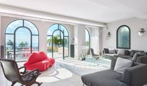 Attractive reception room with living room,very well equiped kitchen and dining area, opening onto a large terrace enjoying sea view with summer lounge and dining-table