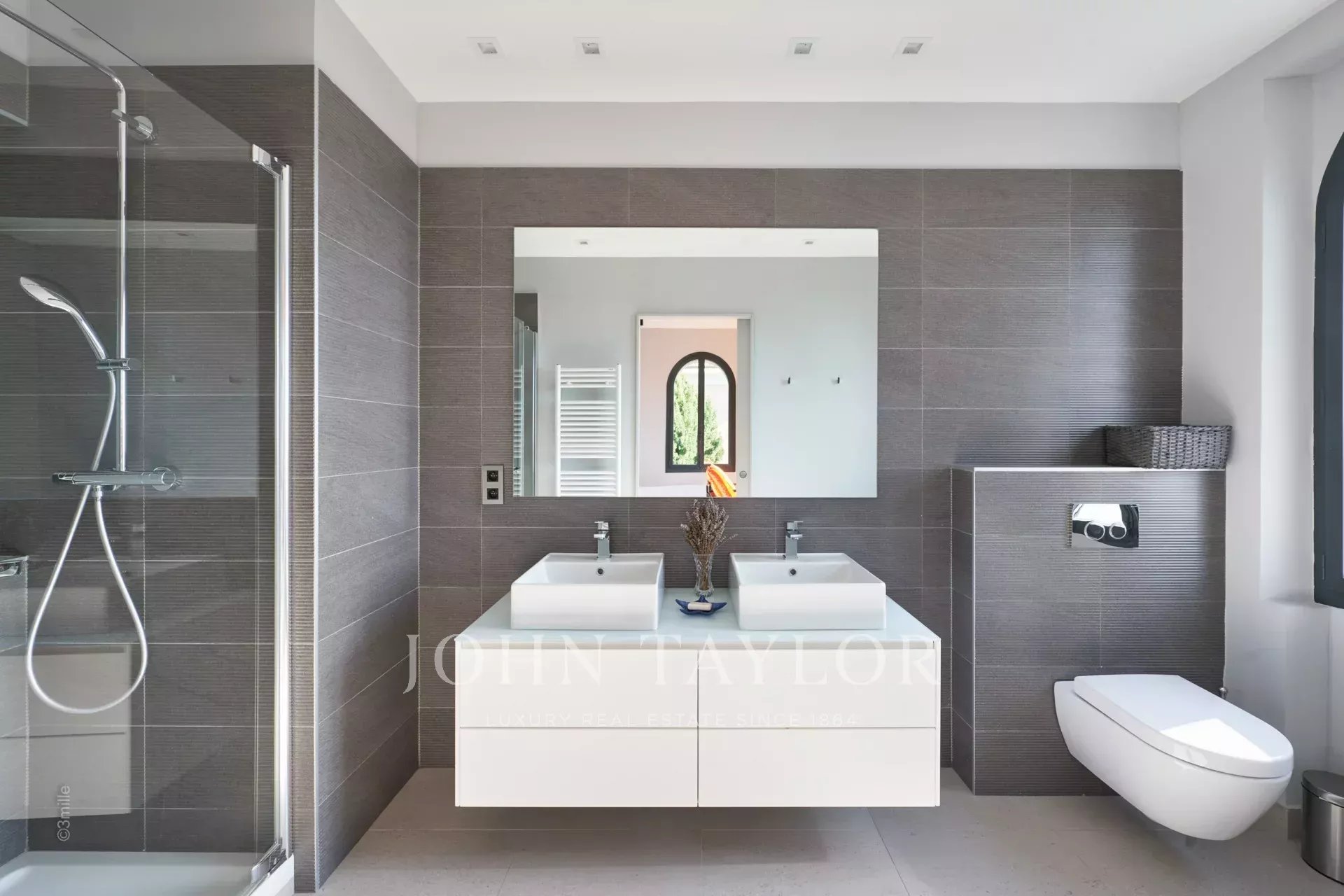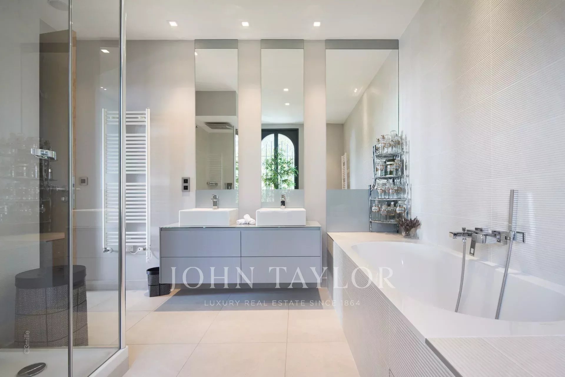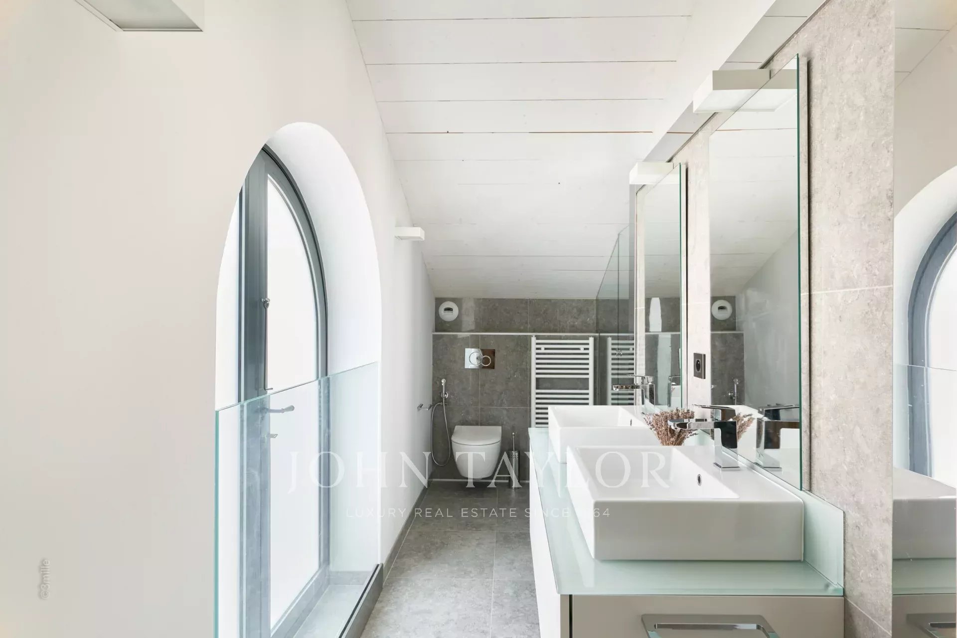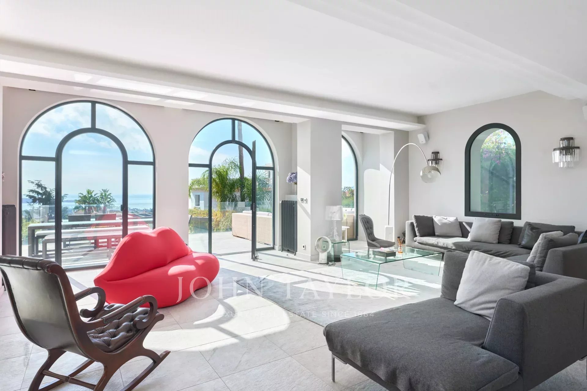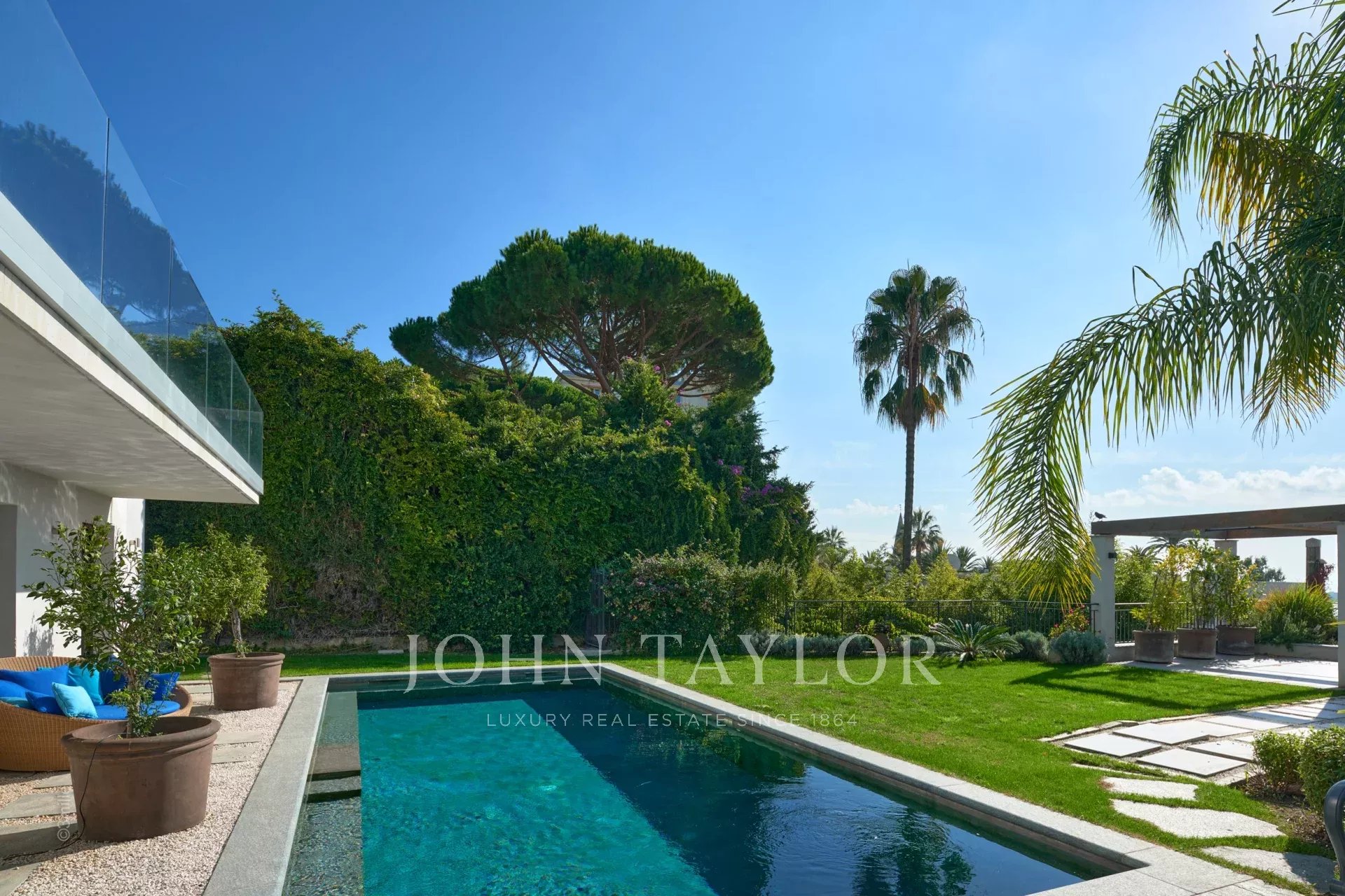 In the heart of the Californie area, 15 minutes walking distance from the centre of Cannes and 5 minutes by car from the Croisette, an attractive private mansion dating from 1925. Completely renovated and air-conditioned, it benefits from a southern exposure and offers a superb view of the bay of Cannes and the Lérins Islands.