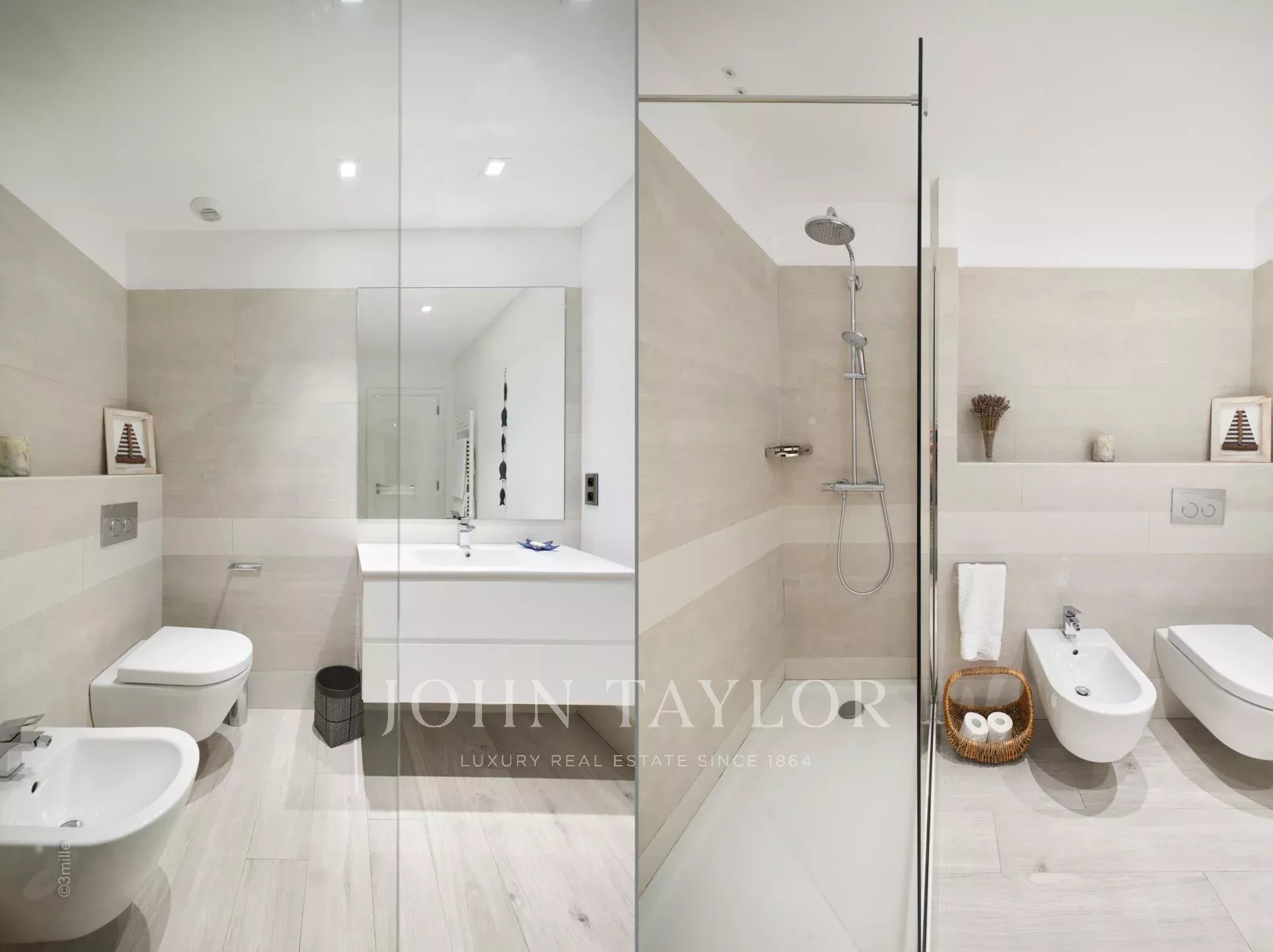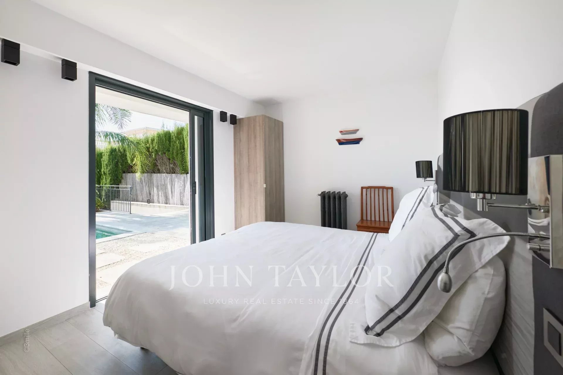 Bedroom (king size bed or two single beds), magnificent view over the bay of Cannes and the Lerins Islands – Ensuite Shower room / WC