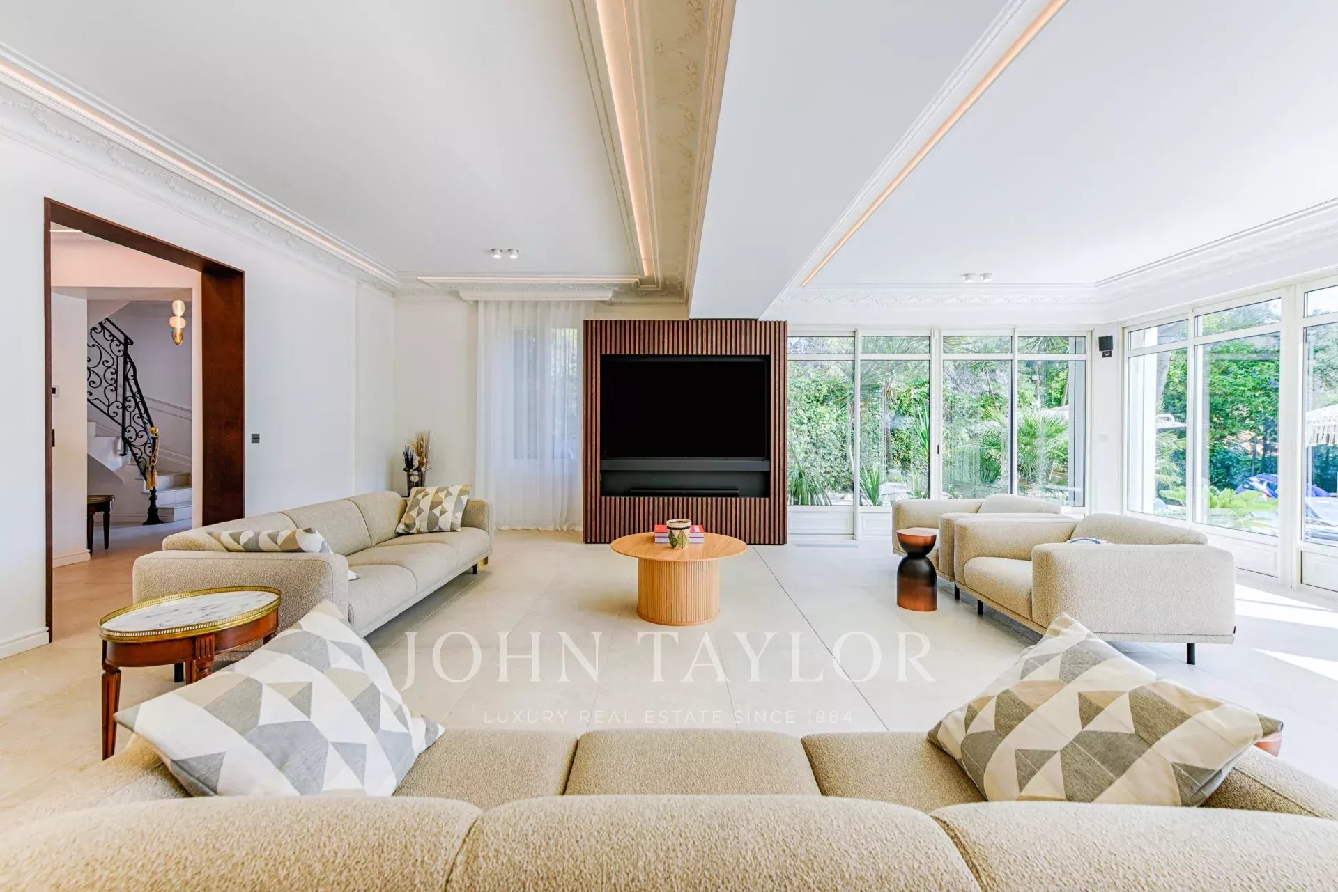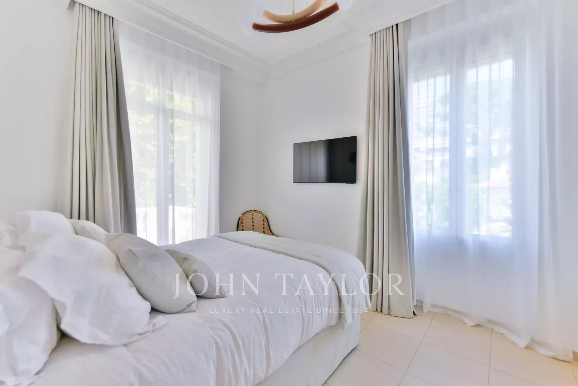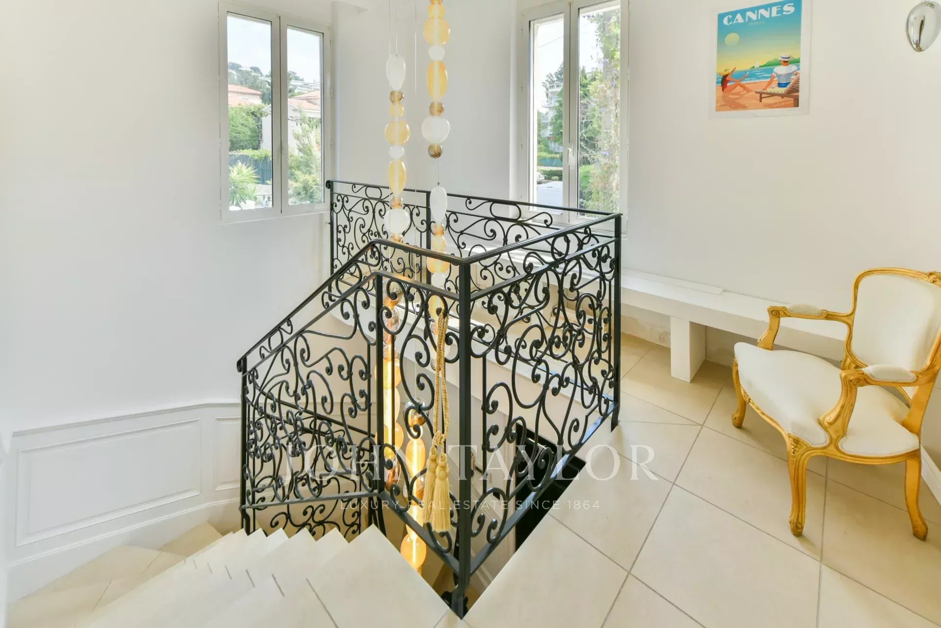 A few minutes from the centre of Cannes, on two levels, very attractive villa offering 300 sq.m living space fully air-conditioned. Completely renovated, the villa seduces by its decoration, the top of the range appointments throughout and its beautiful and large terraces.
