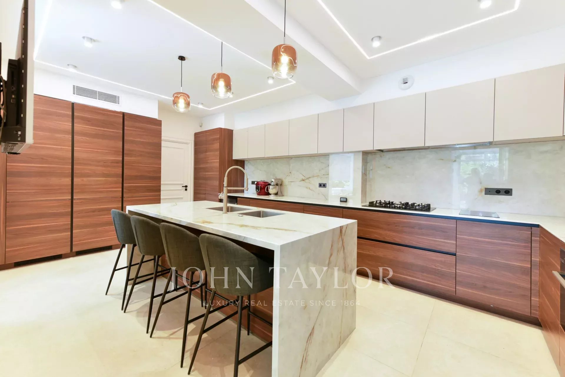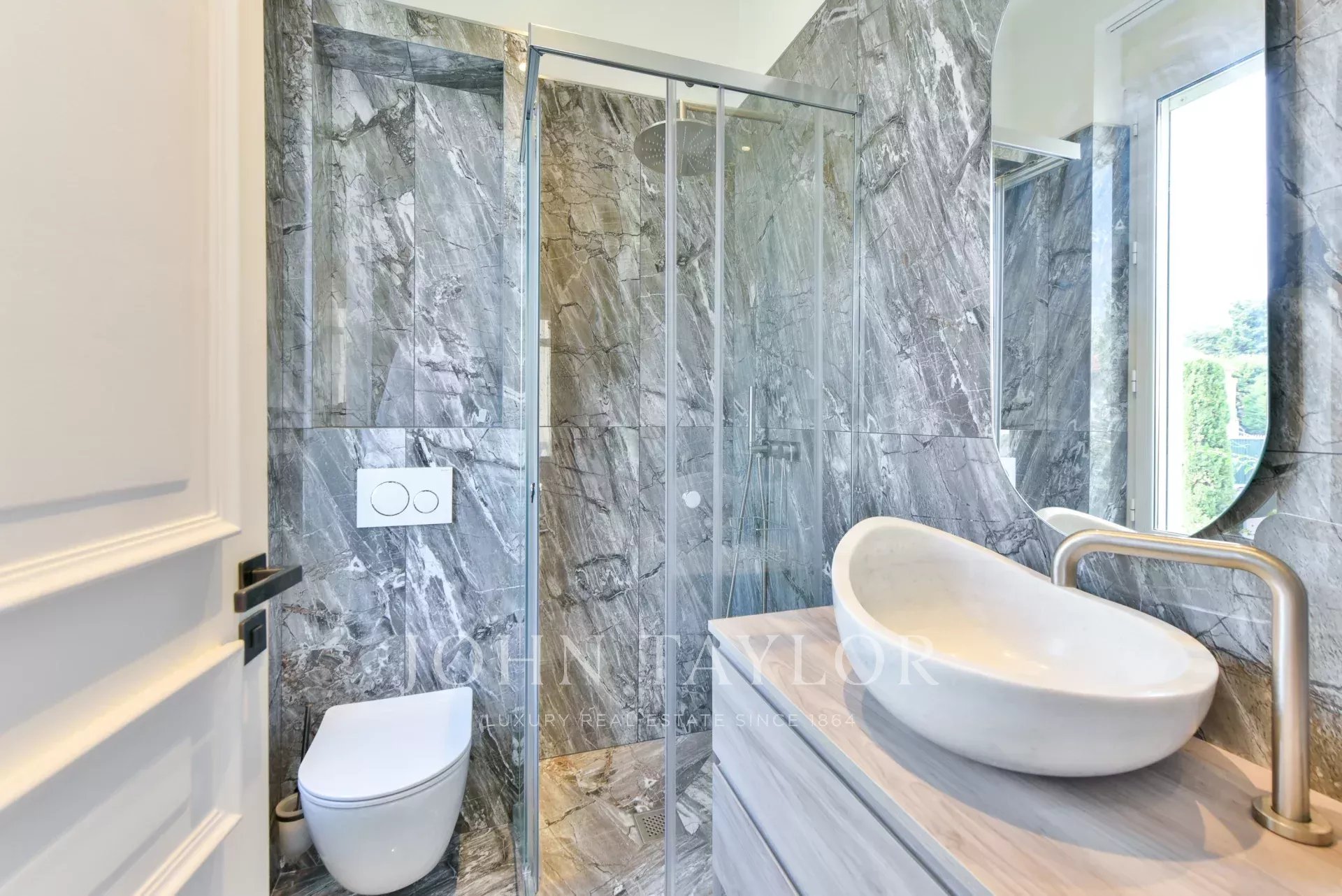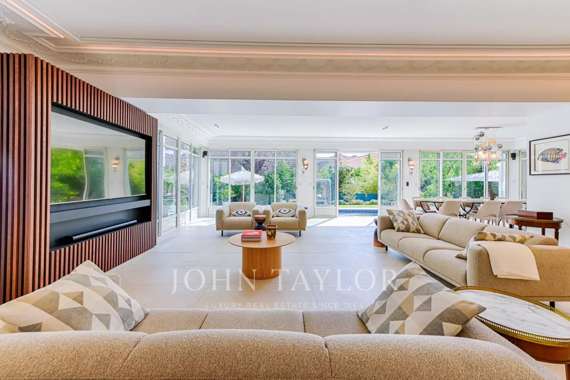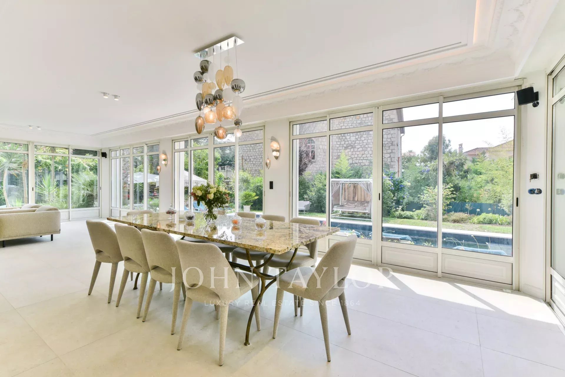 A few minutes from the centre of Cannes, on two levels, very attractive villa offering 300 sq.m living space fully air-conditioned. Completely renovated, the villa seduces by its decoration, the top of the range appointments throughout and its beautiful and large terraces.