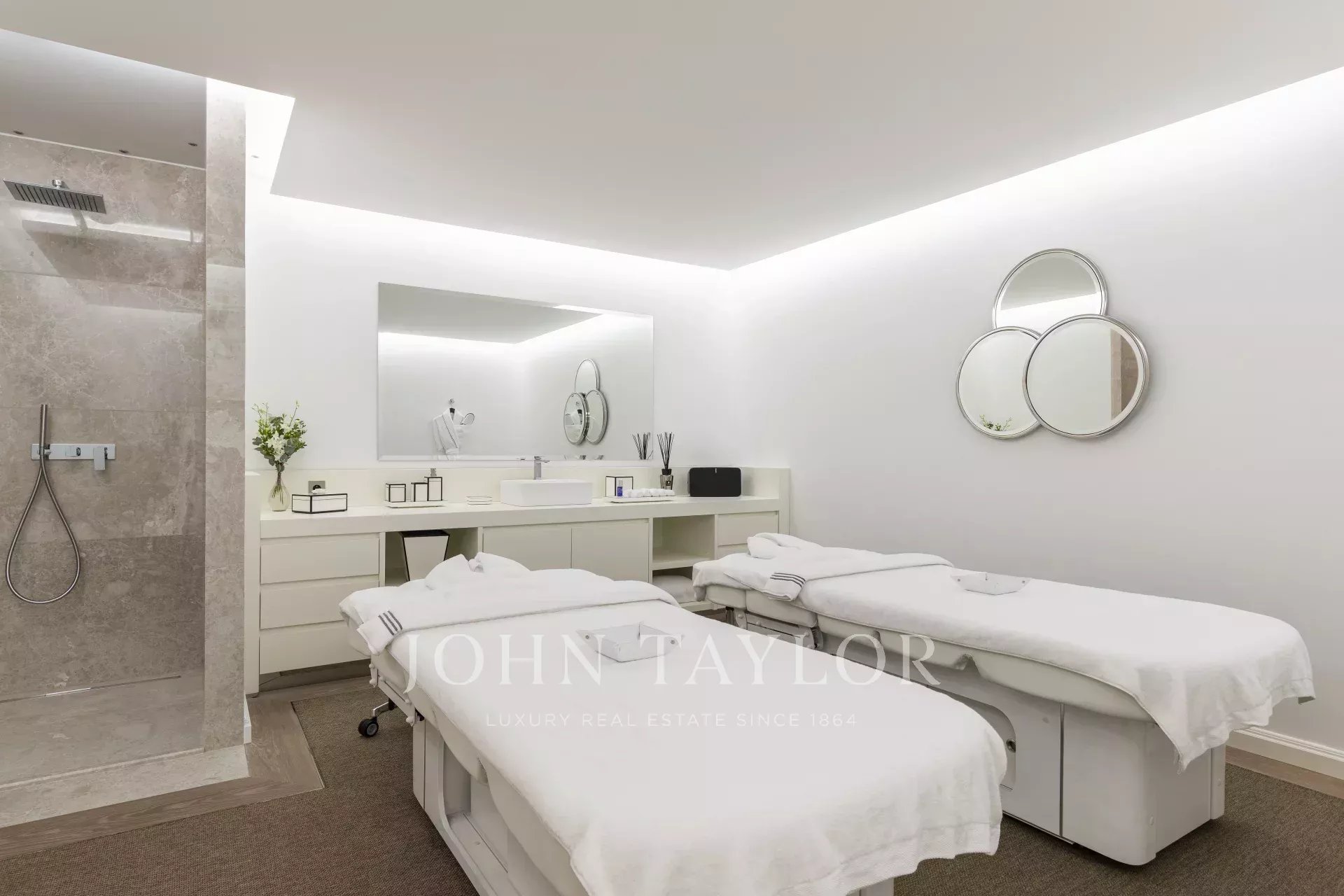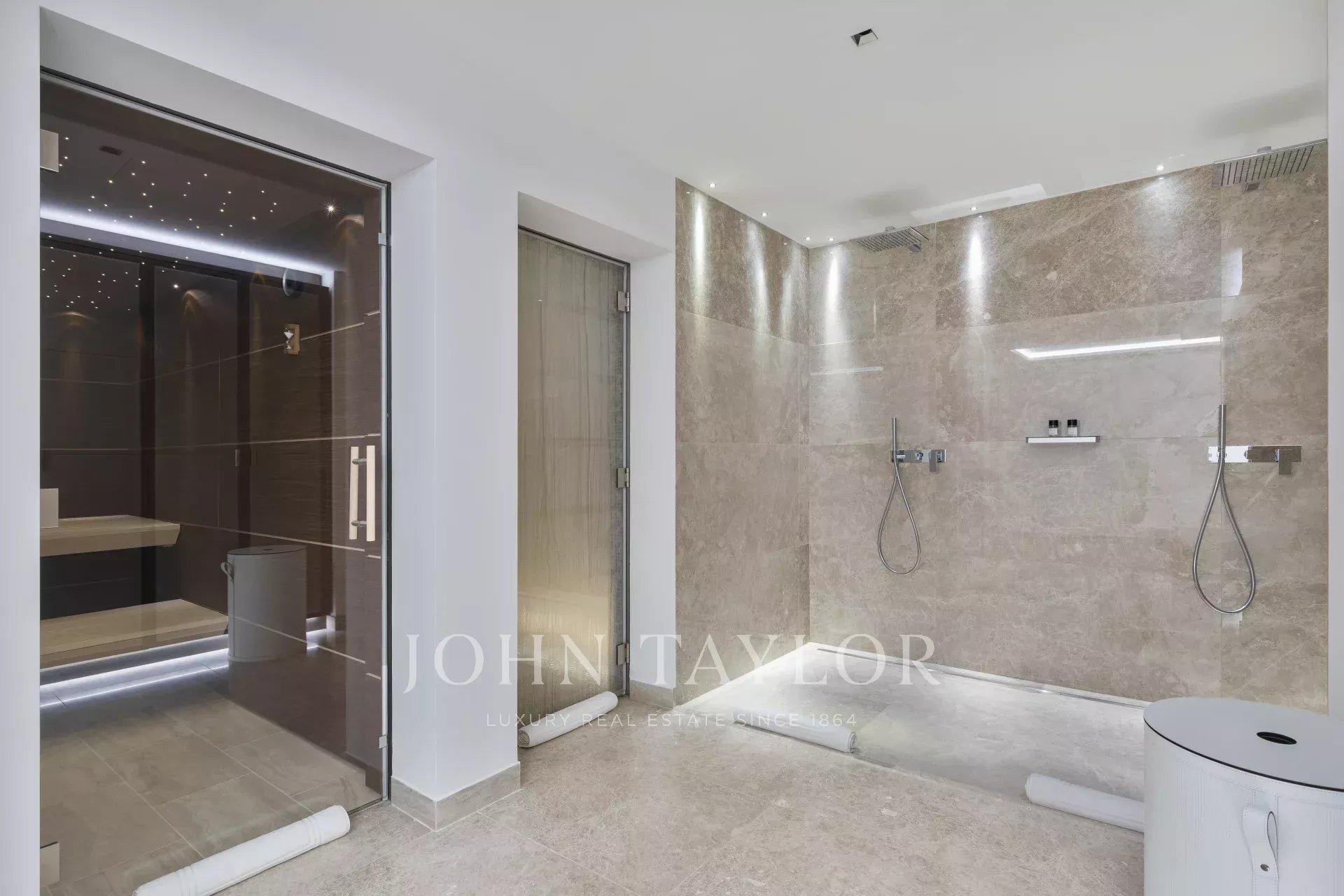 There is also a wellness area with a hammam, sauna and two massage rooms, as well as a large swimming pool with a kitchen and summer dining room for up to 26 guests.