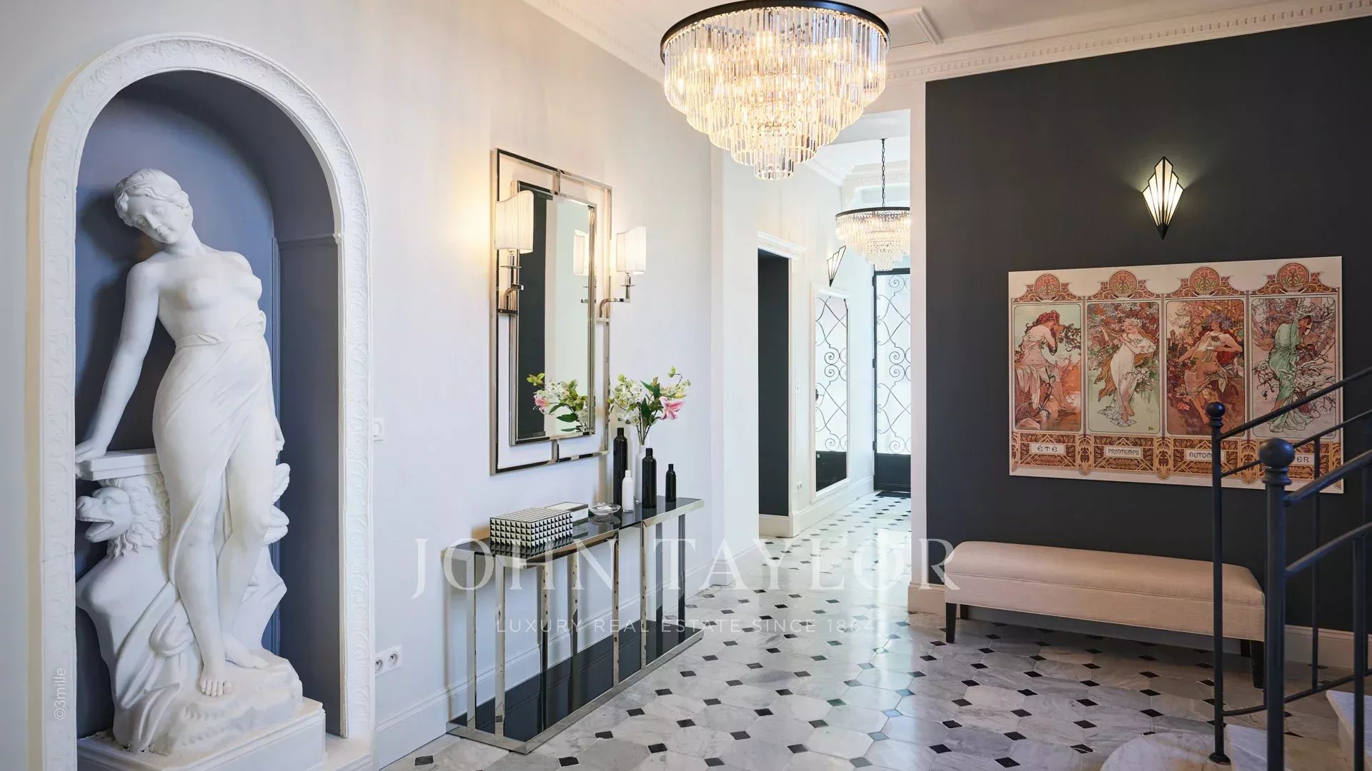 Elegant entrance hall leading to the triple reception, all opening onto the 60 sq.m terrace overlooking the pool