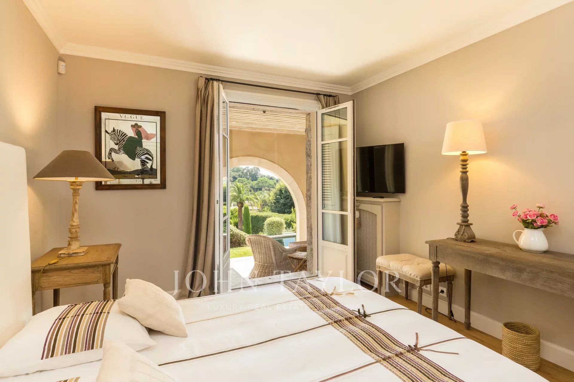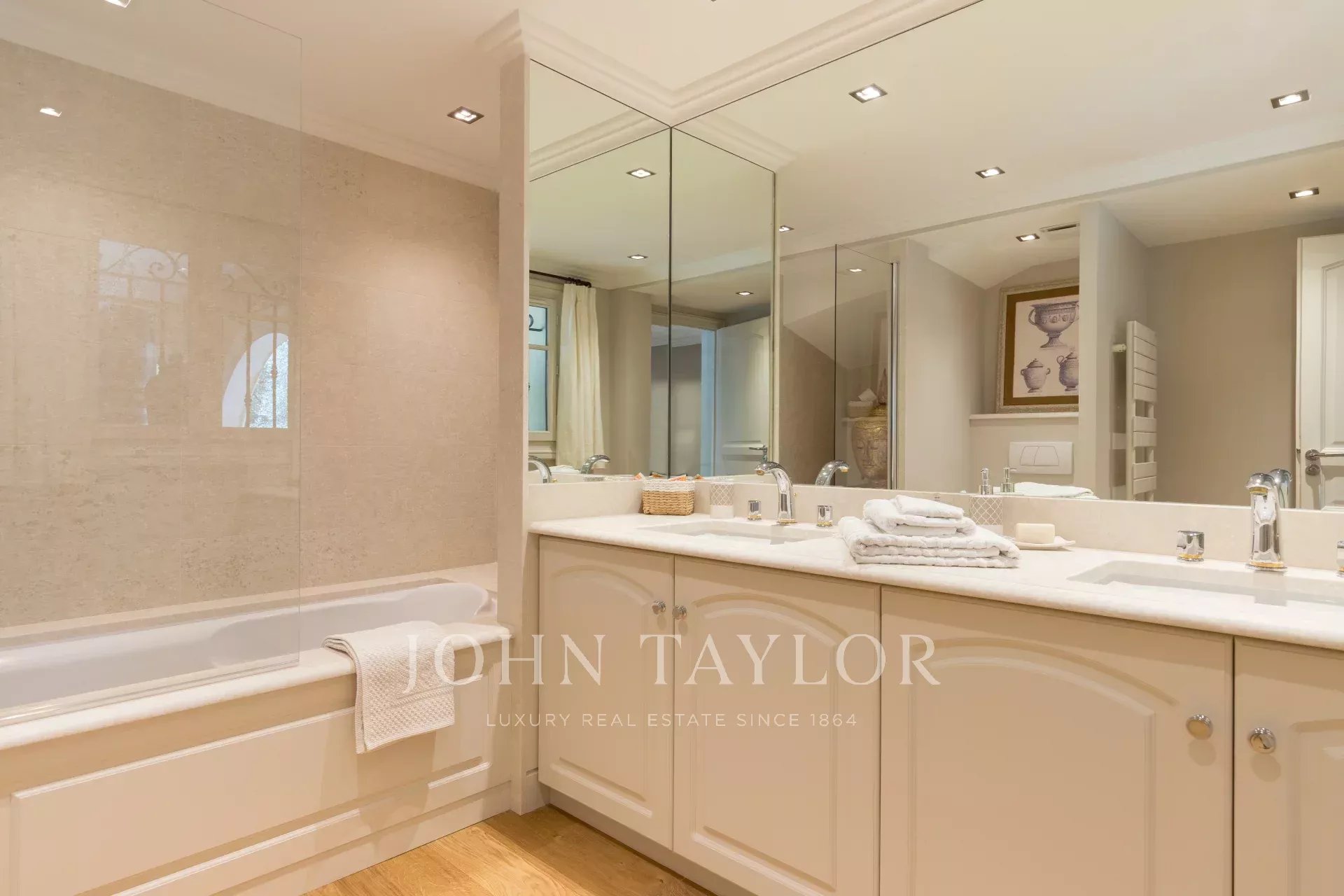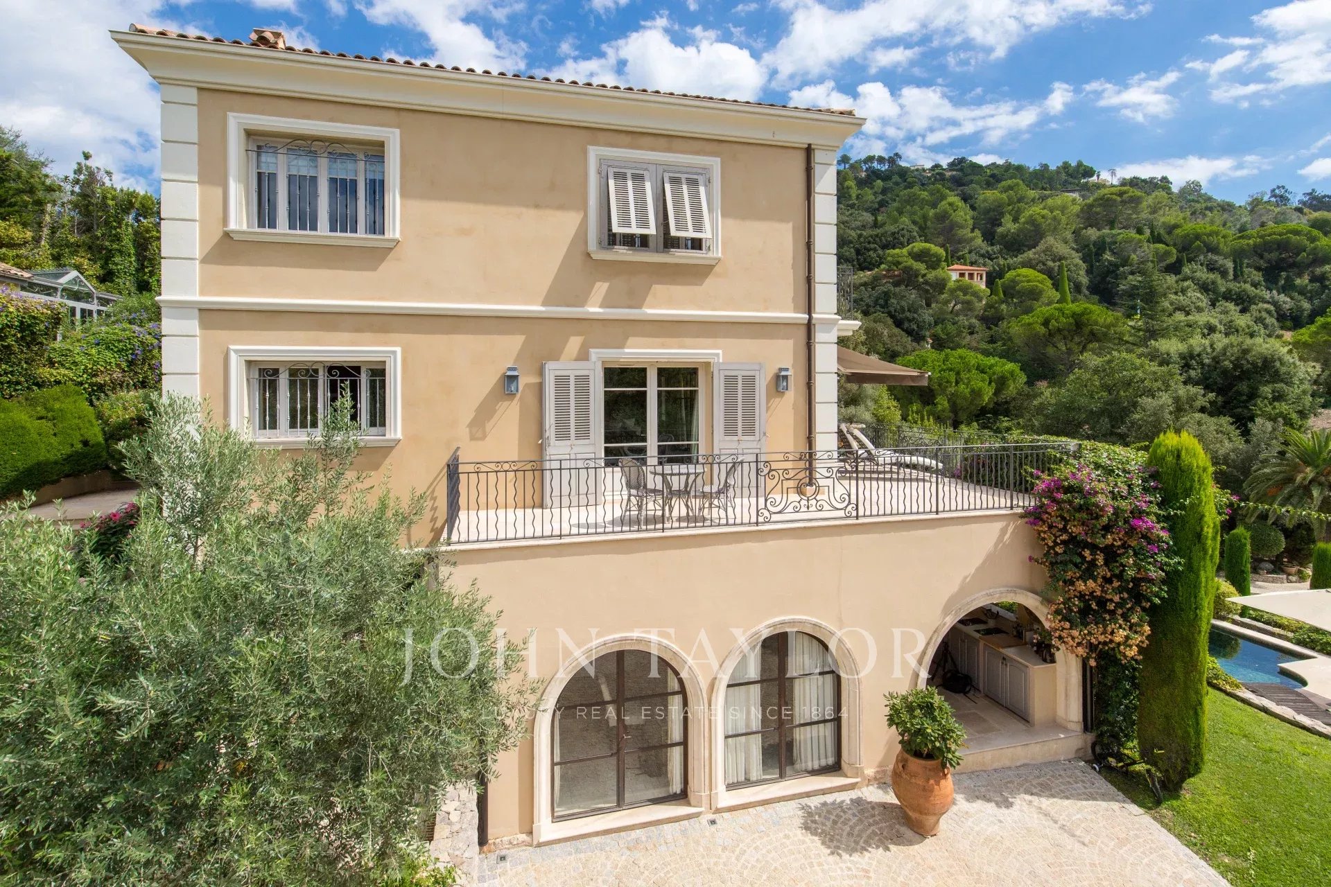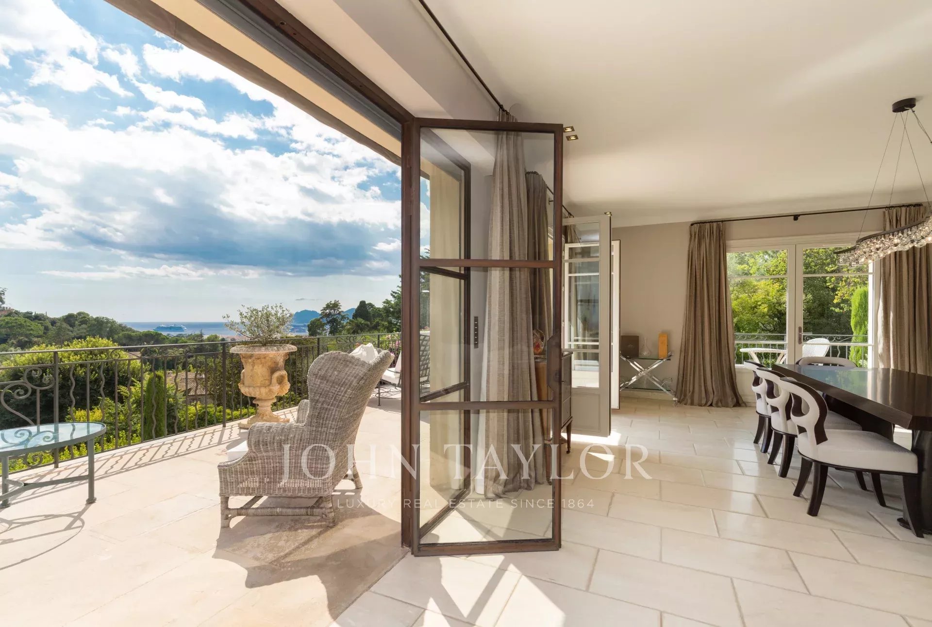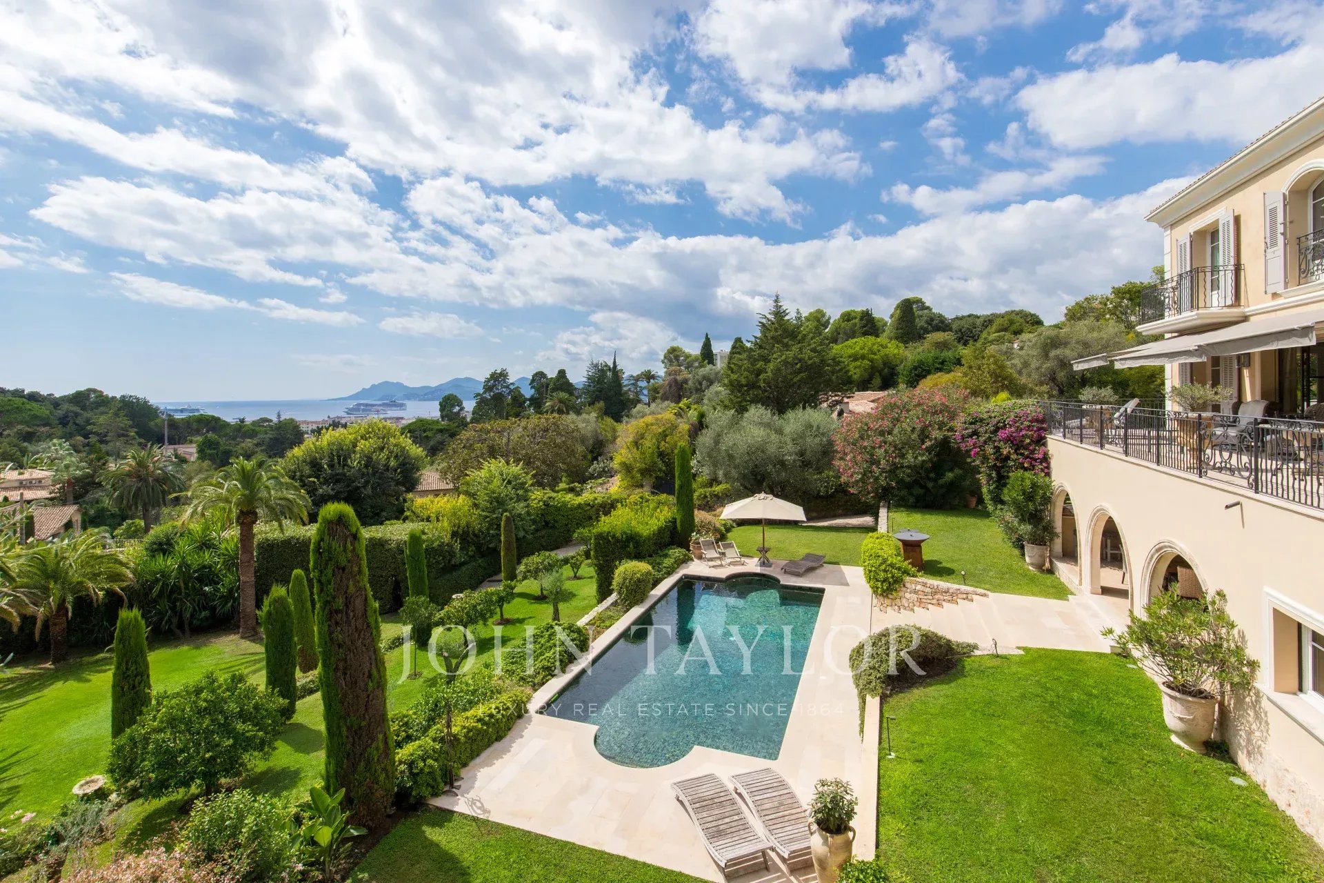 A few minutes walk from the city centre, in one of the most desirable areas of Cannes this attractive property enjoys wonderful views of the bay of Cannes to the Esterel.