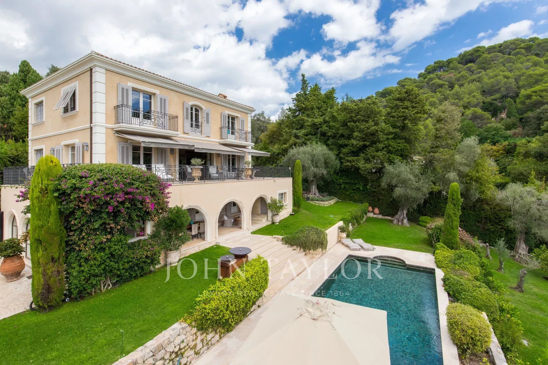 Nestled in a 3500 sq.m beautifully landscaped garden with several ponds and fountains, the house, entirely air-conditioned, with a living area of around 394 sq.m is composed as follows :