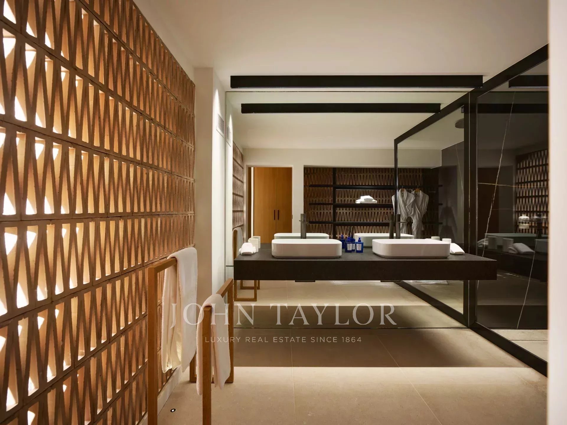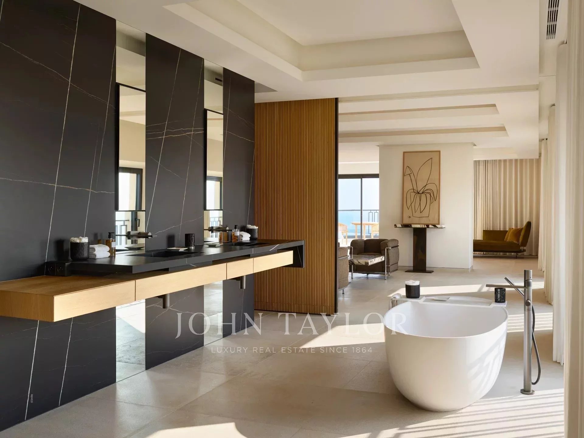 Spread across different levels, the suites offer absolute comfort and total privacy. Each has been designed as a true sanctuary, filled with natural light and opening onto the surrounding landscape. The master suite, with its private terrace and panoramic sea view, embodies the very essence of understated luxury and well-being.
