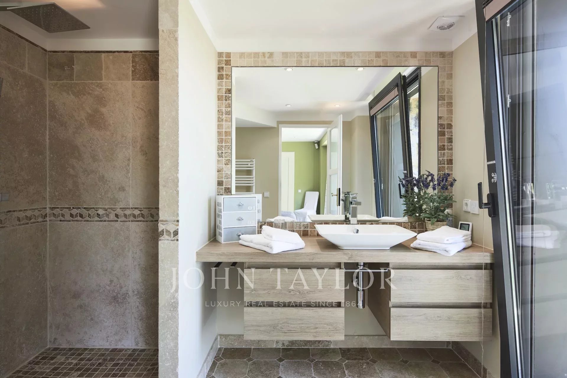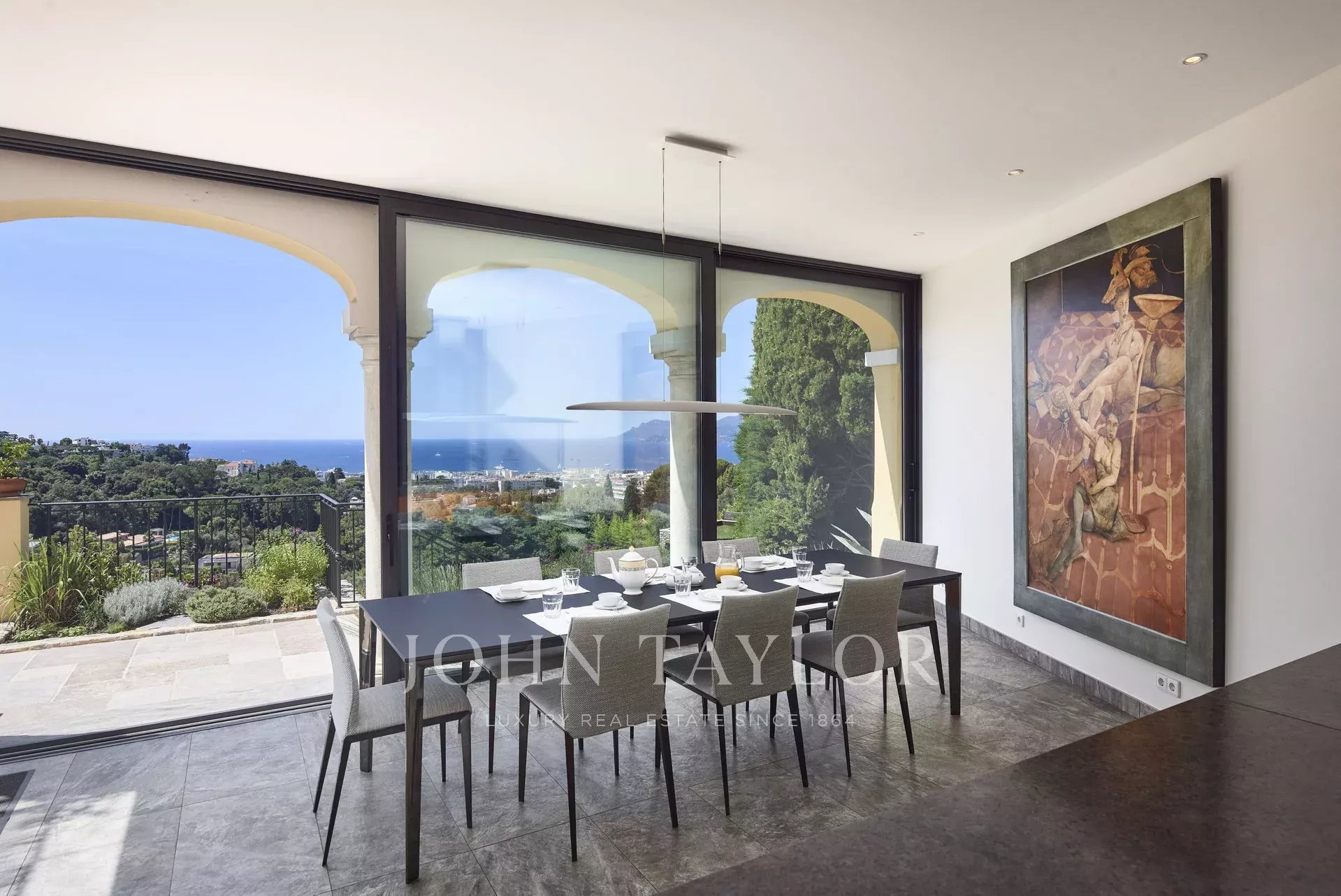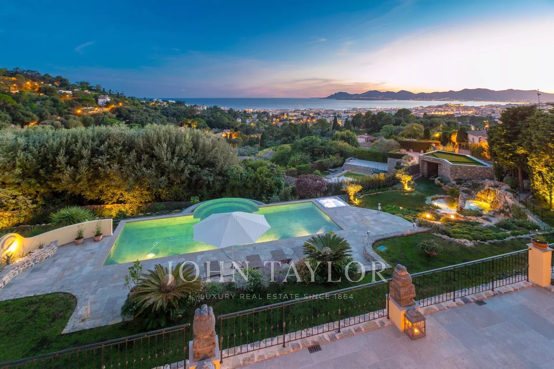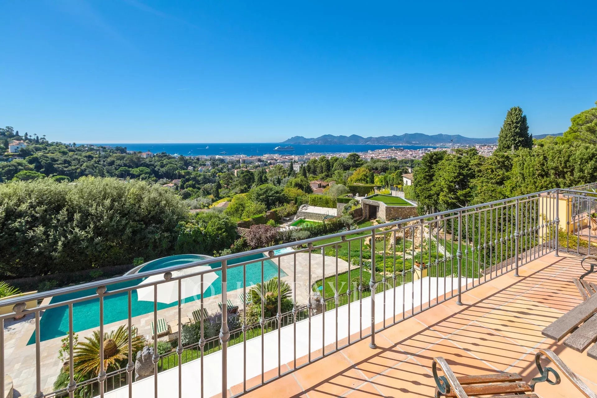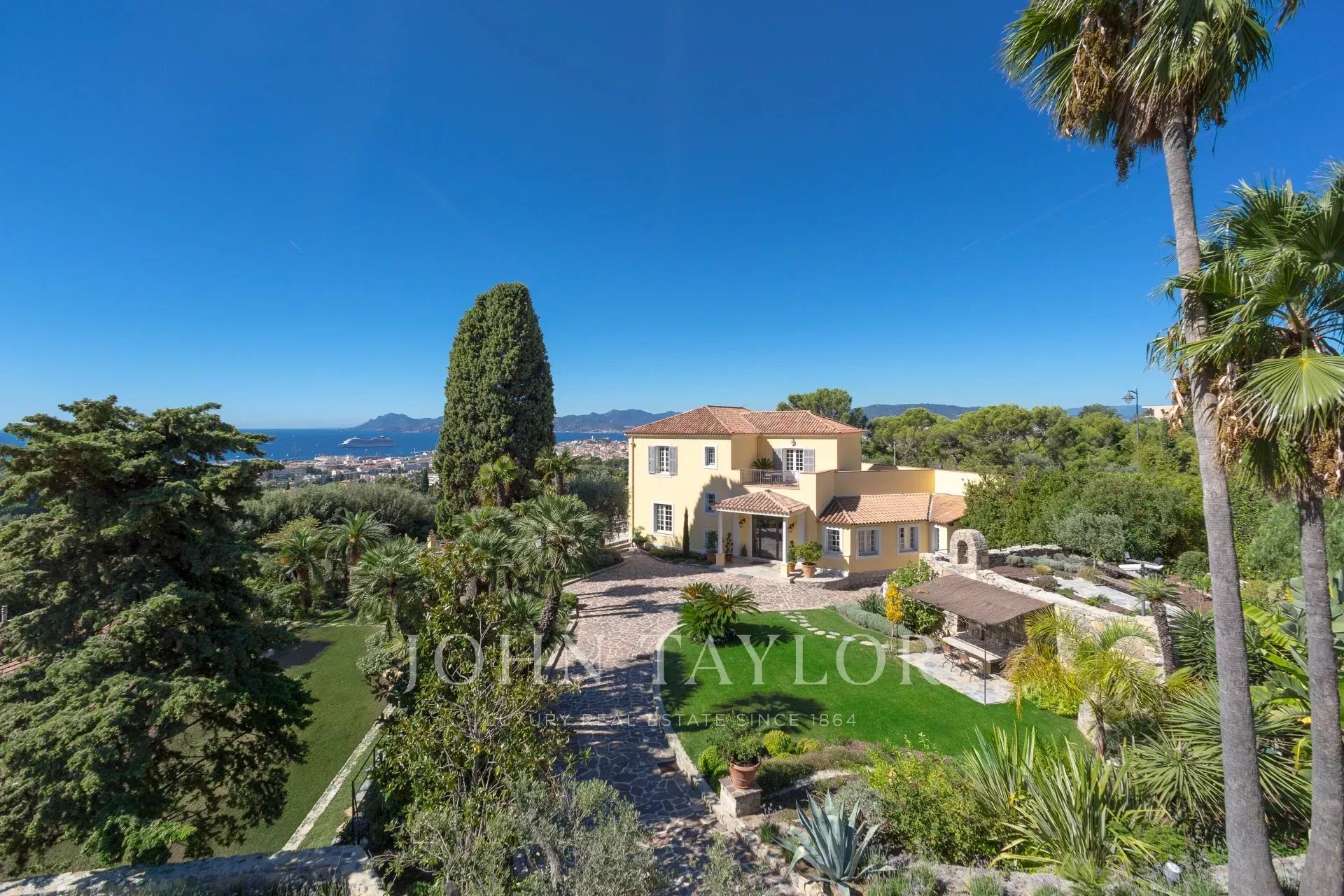 Superb Mansion, built around 1900, facing south, sets on 4 660 sq.m landscaped park, overlooking the Bay of Cannes, close to city centre.