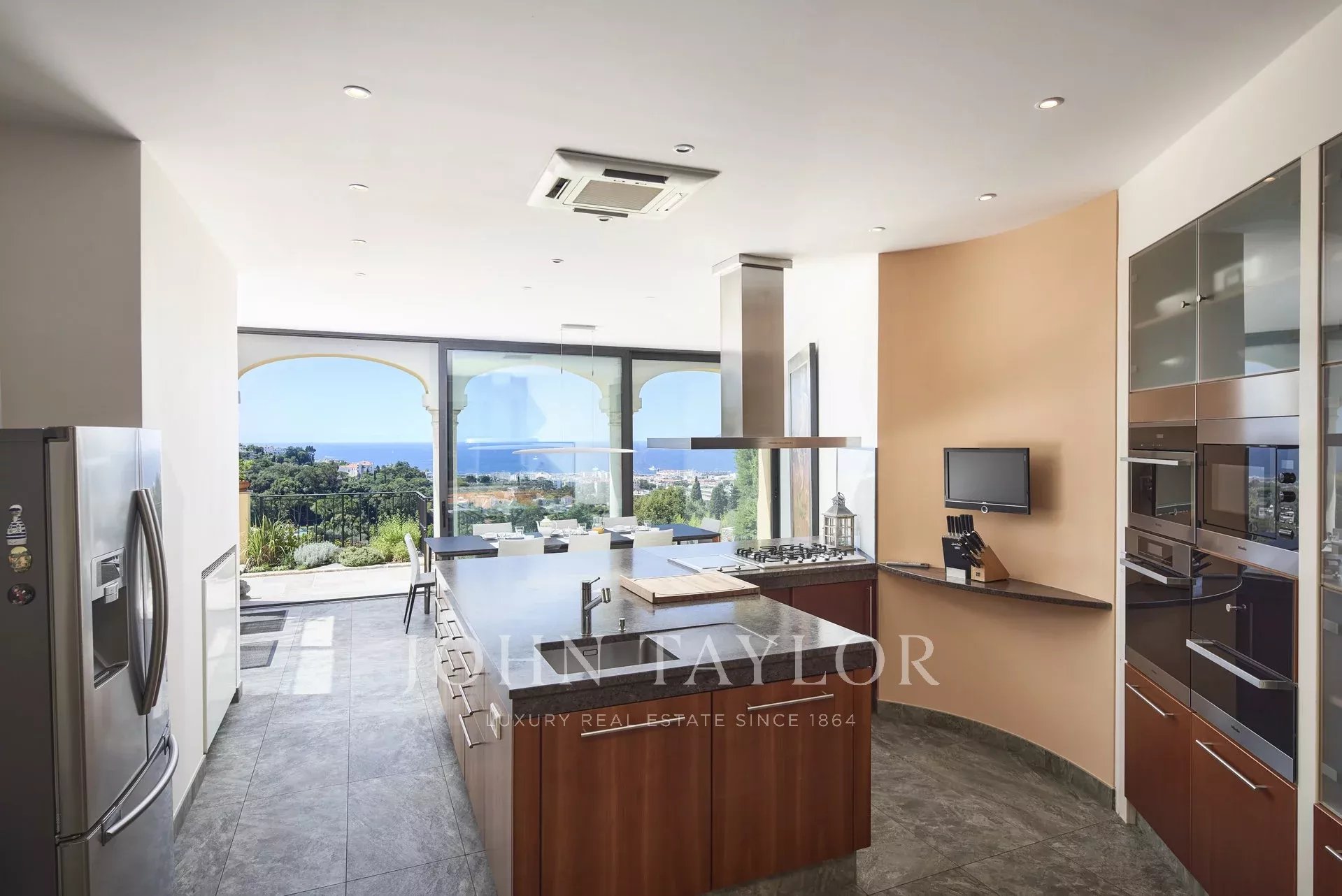 Large air conditioned kitchen with dining area opening onto the terrace - pantry