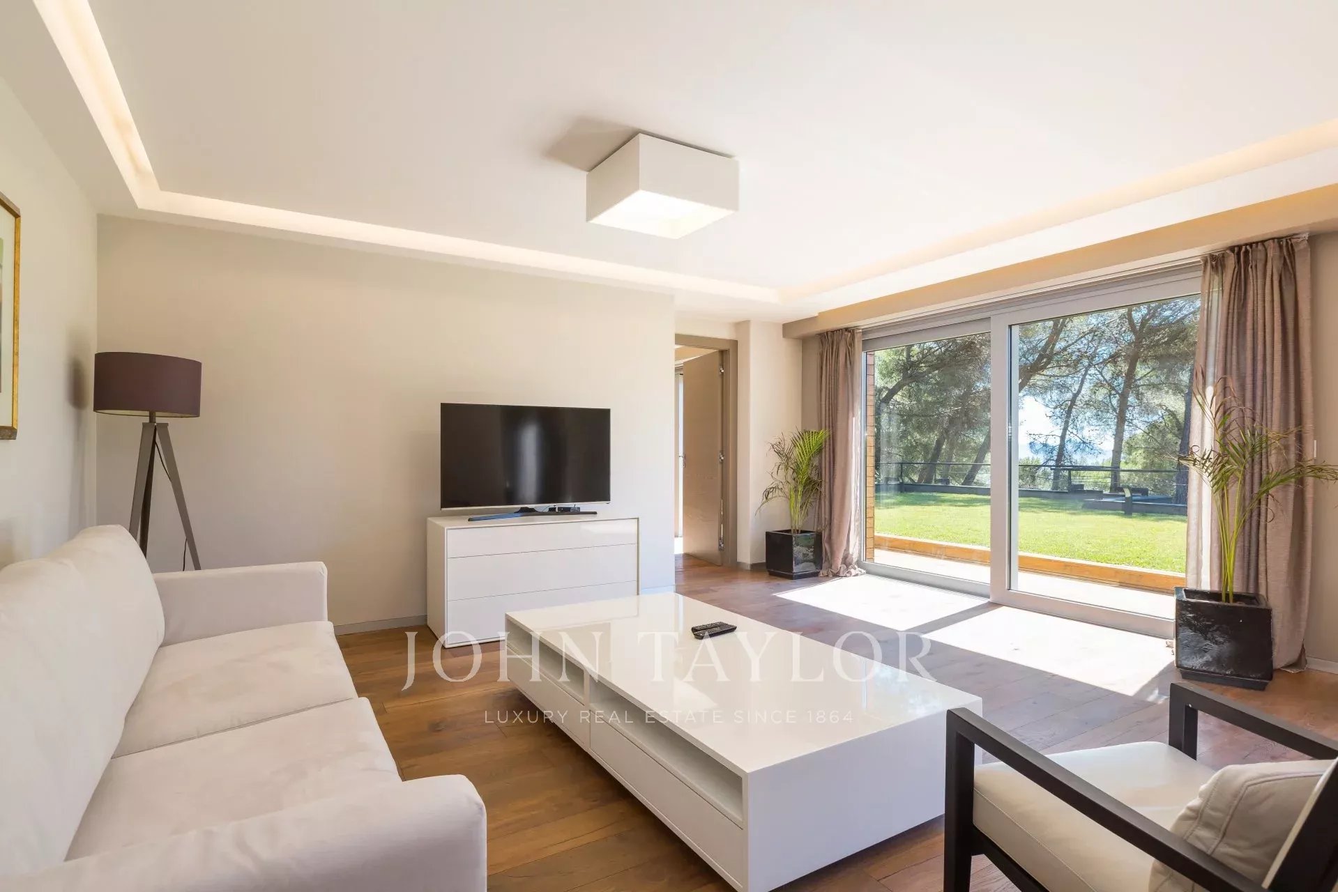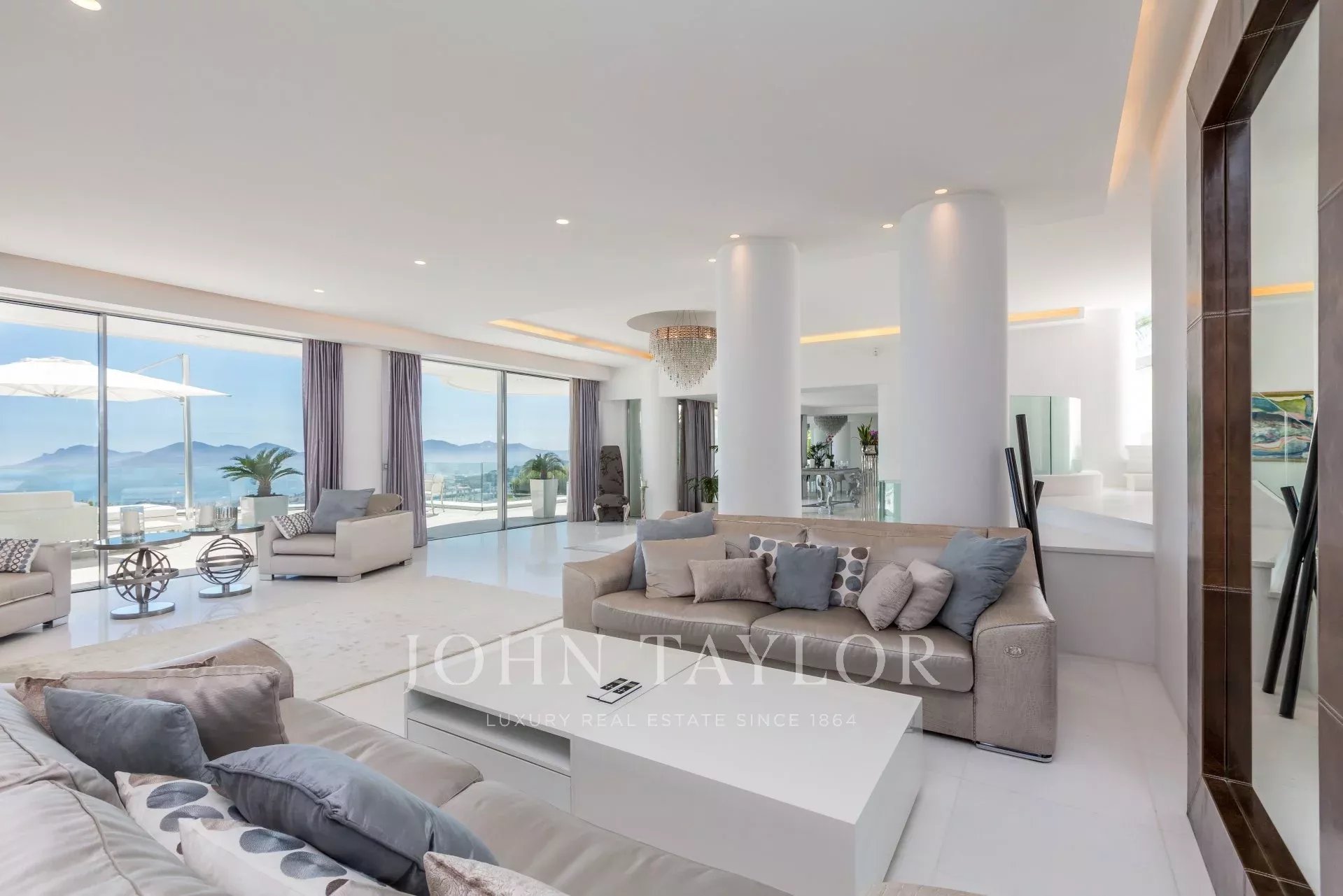 Triple reception room opening onto a large terrace with a beautiful view over the sea and garden access