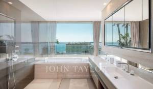In a closed domain near the sea and the city center, splendid new contemporary villa entirely air-conditioned offering superb sea views on the Bay of Cannes.