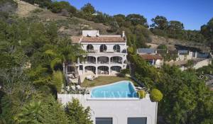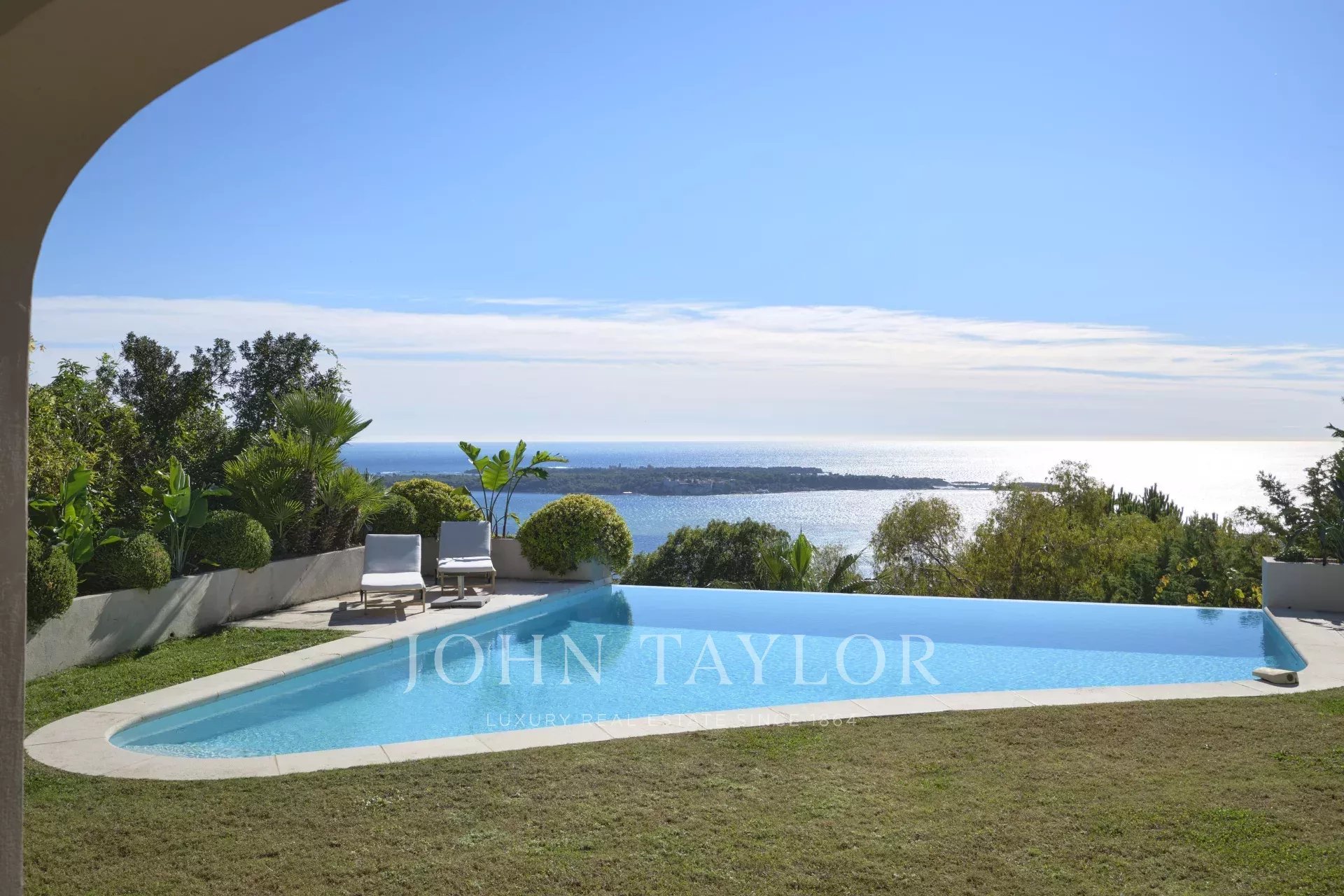 Located in the Californie area, the villa enjoys exceptional views from Cap d'Antibes to the Esterel Hills from all rooms.