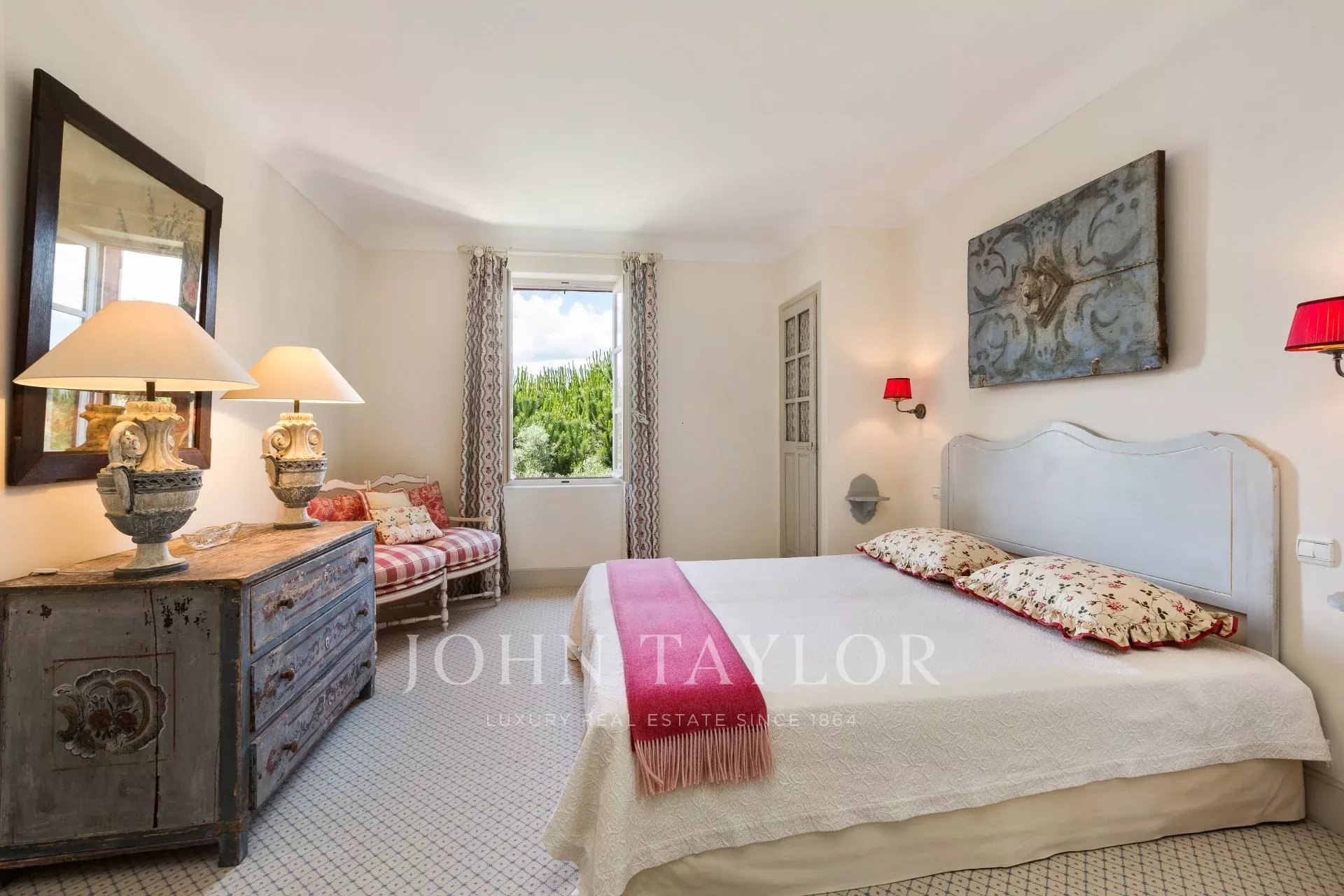 In the area of Cannes called "Croix des Gardes", just few minutes from the center, this French Bastide of 500 sq.m with panoramic views over the Bay of Cannes and the Esterel in the heart of grounds of 4,400 sq.m.