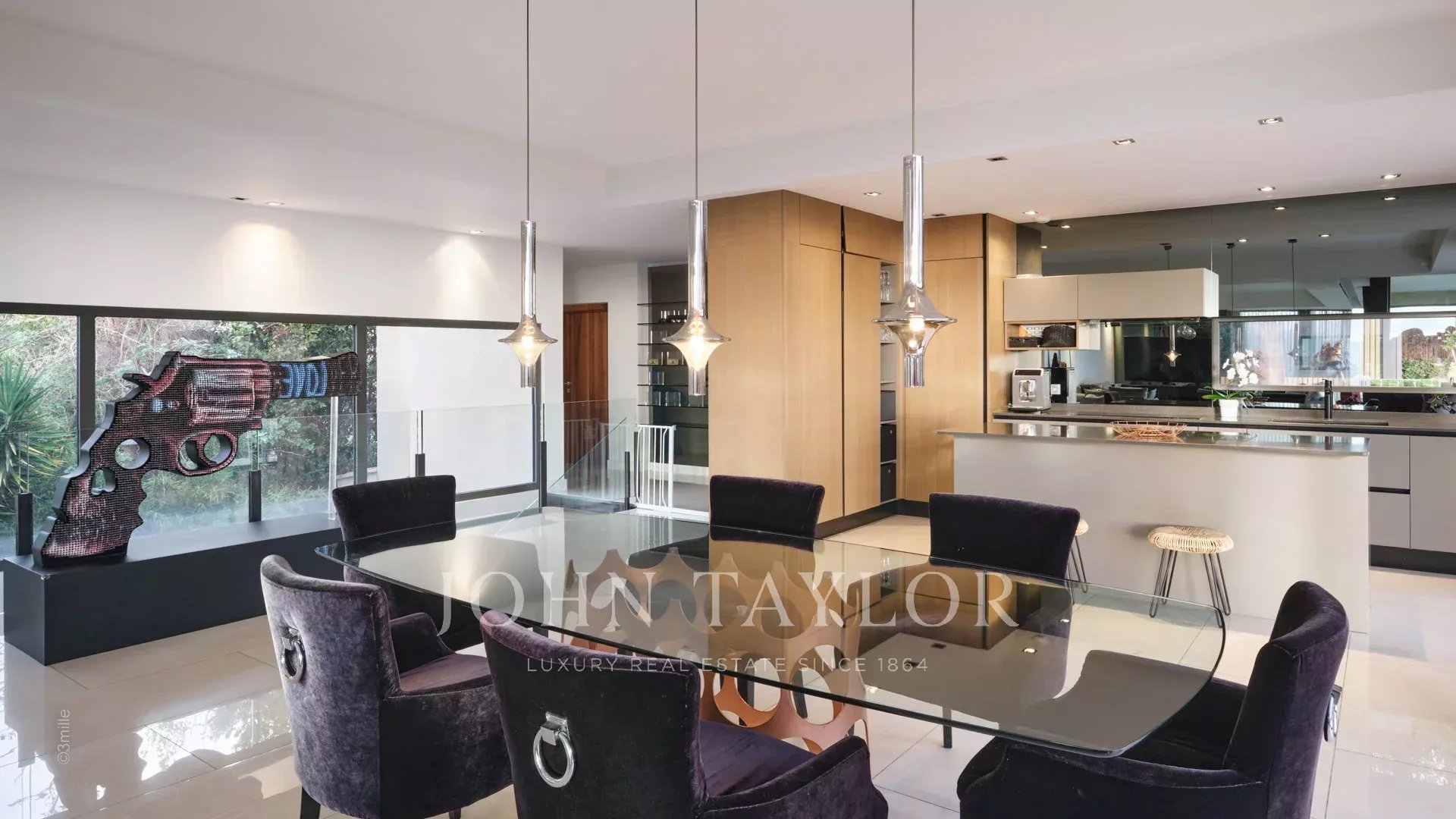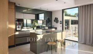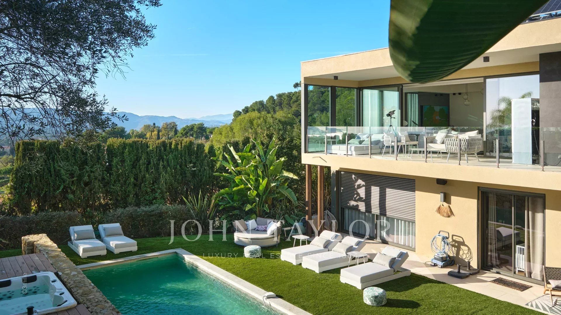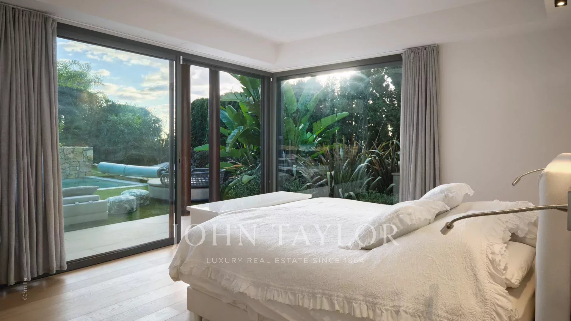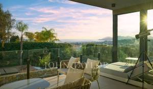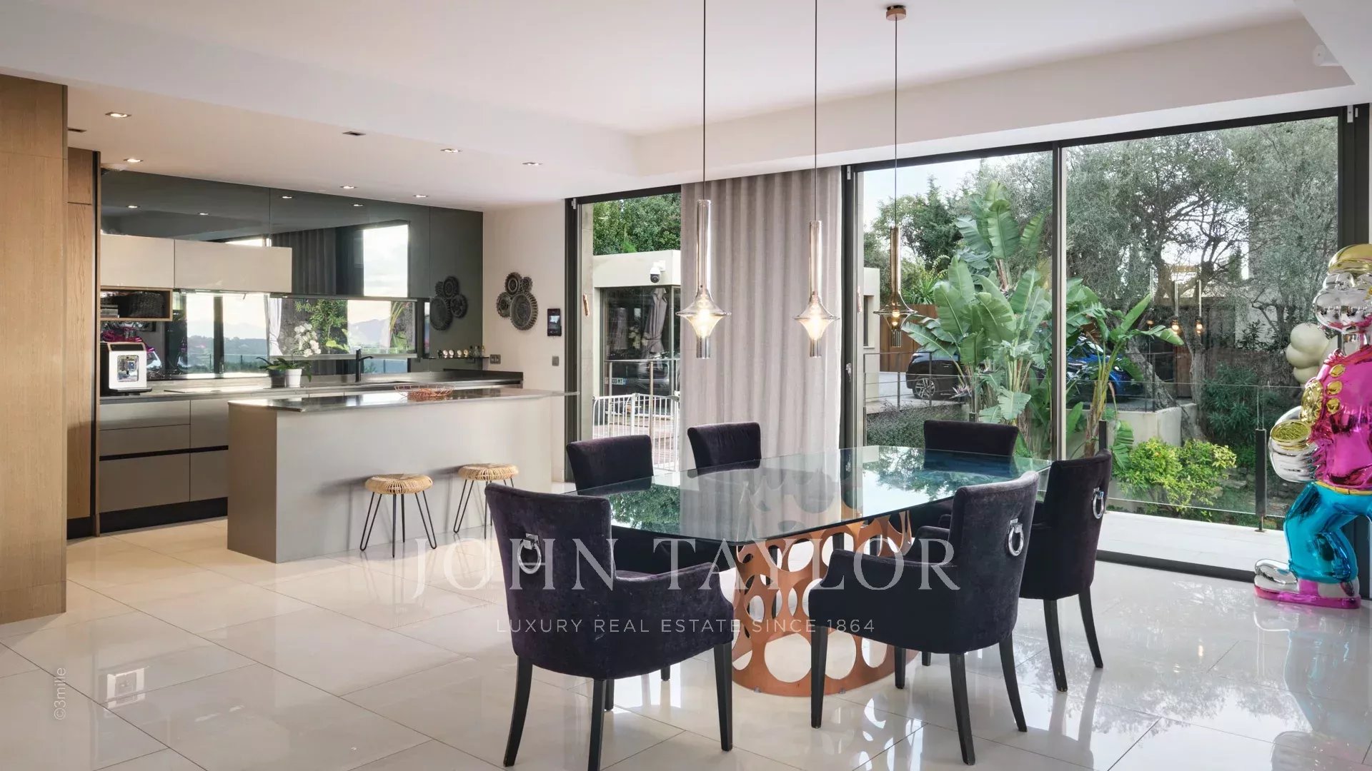 Nestled on the heights of Cannes, in the heart of a 1200 sq.m land, this superb contemporary villa offers a beautiful panorama of the sea and the Lérins Islands.