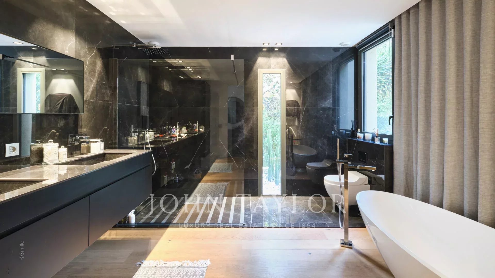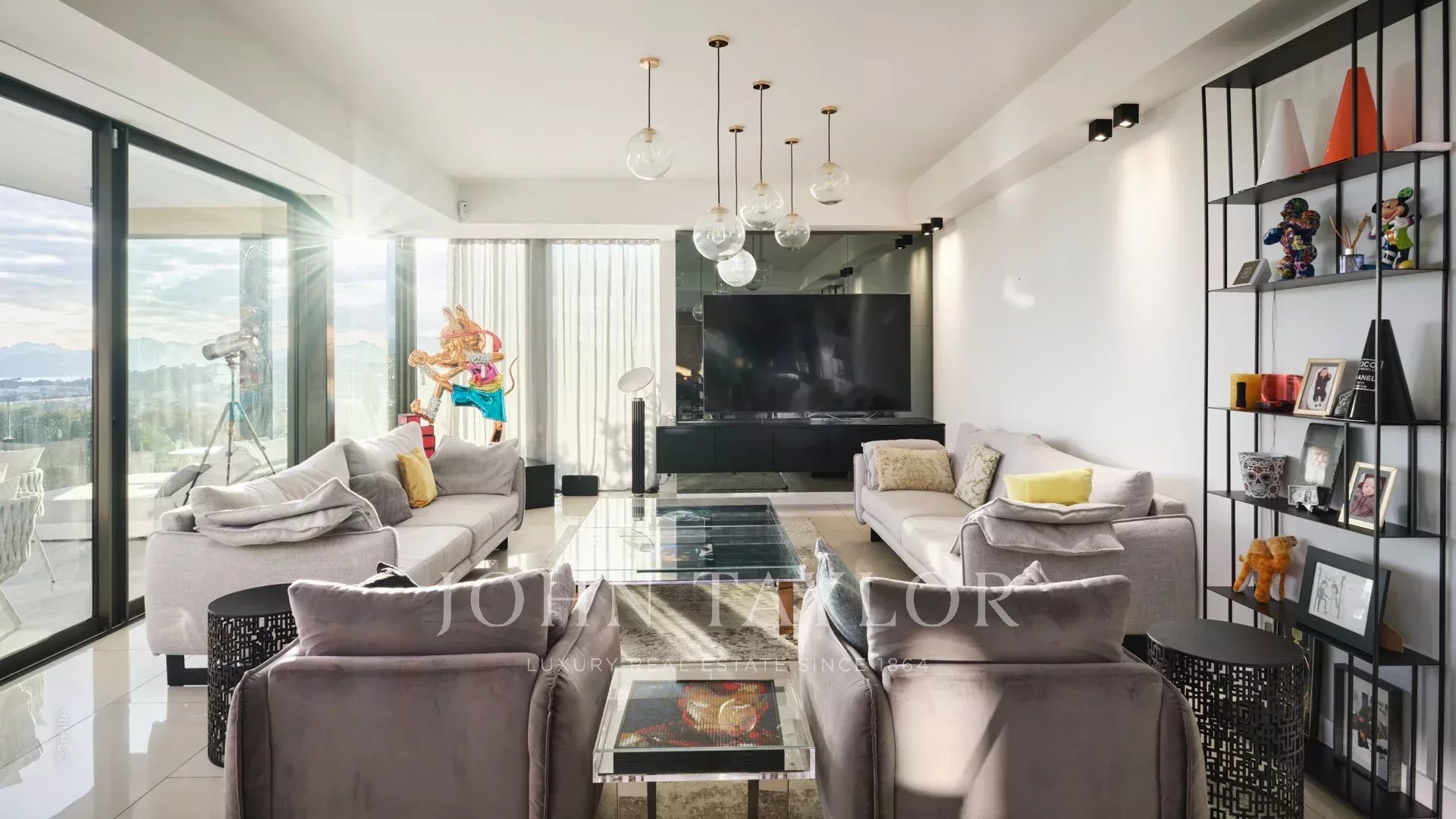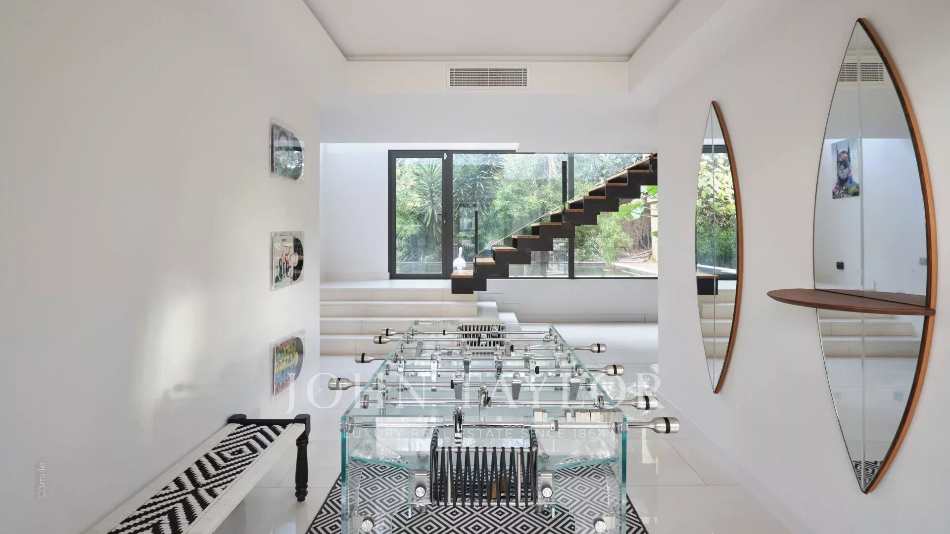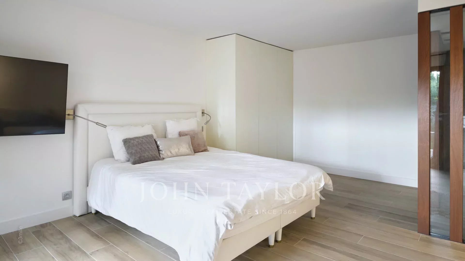 Nestled on the heights of Cannes, in the heart of a 1200 sq.m land, this superb contemporary villa offers a beautiful panorama of the sea and the Lérins Islands.