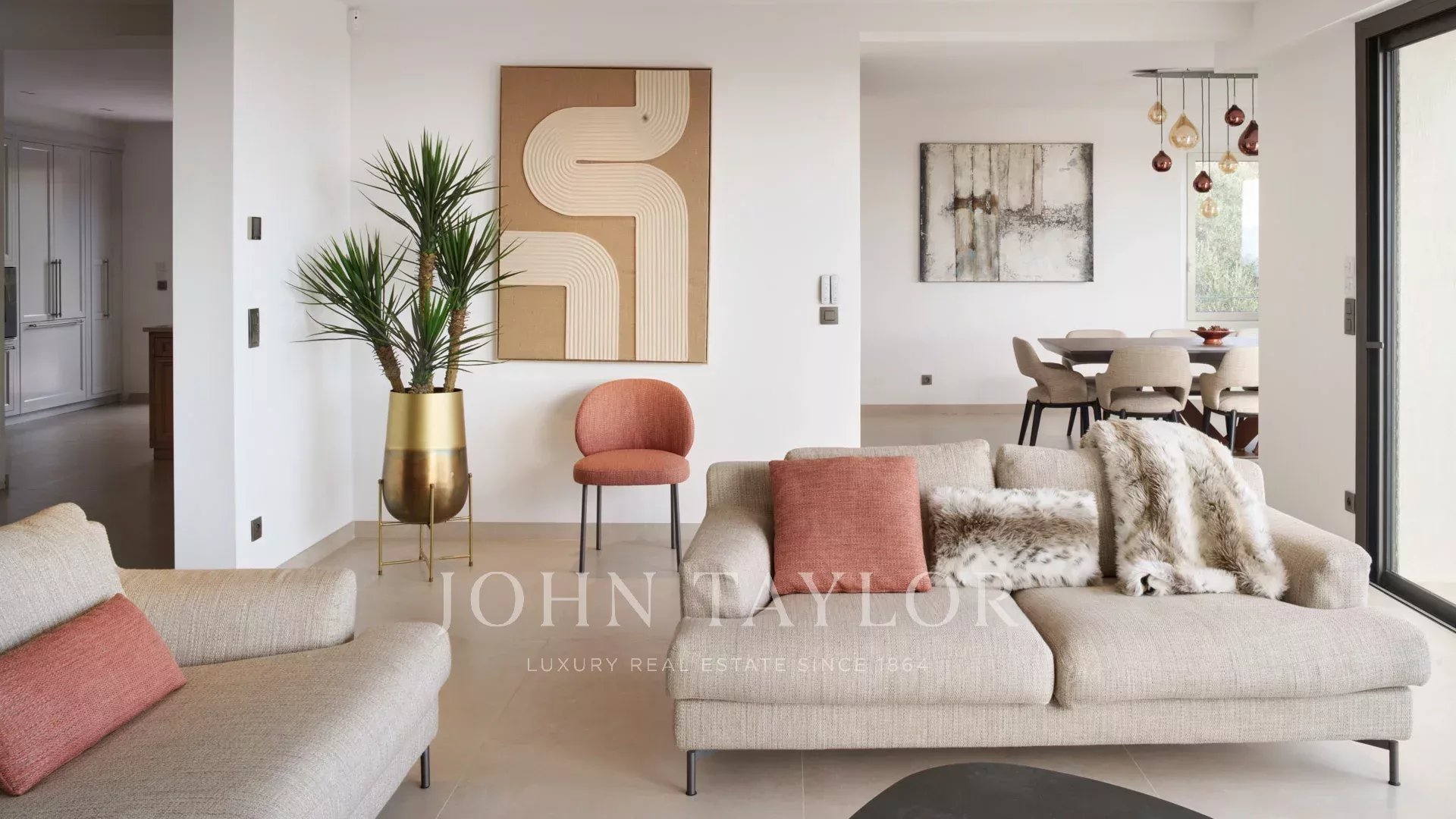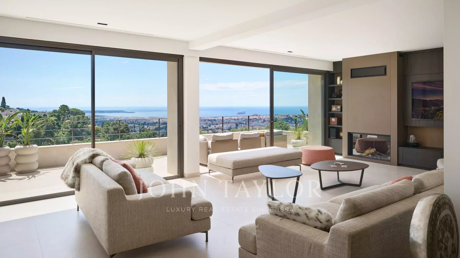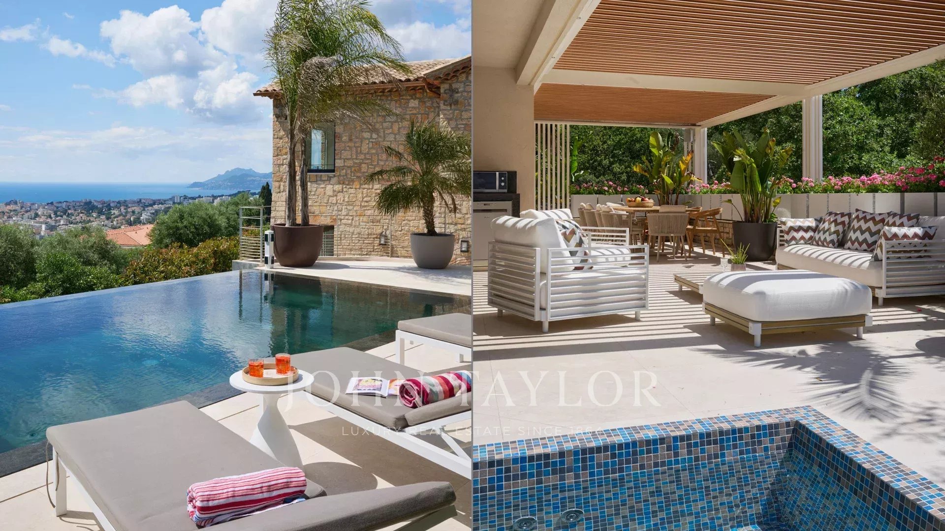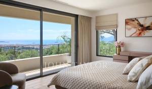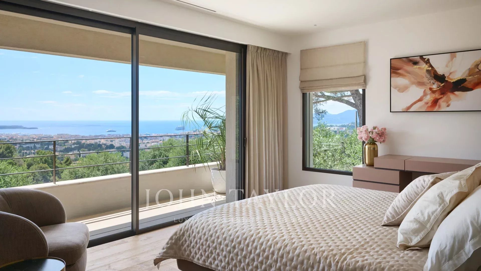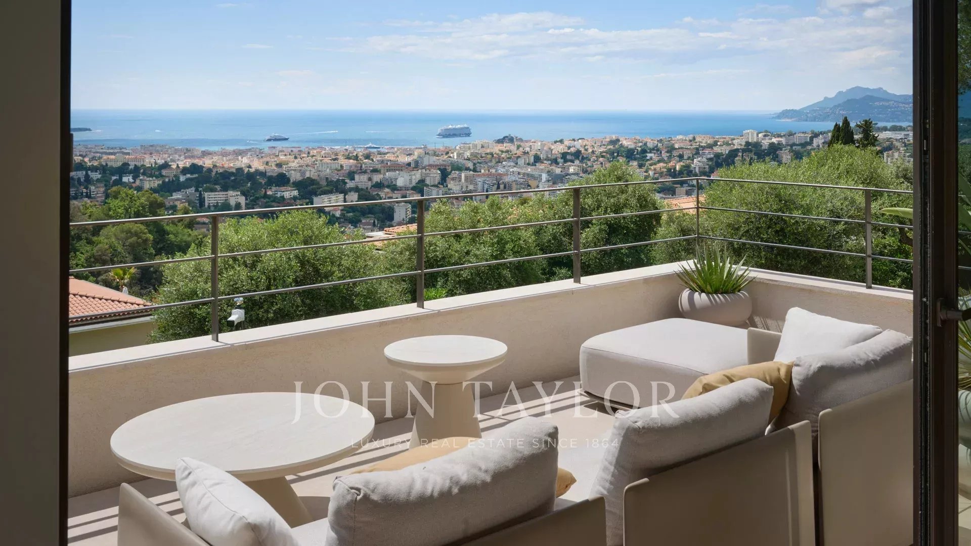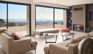 On the heights of Cannes, superb contemporary villa with 440 m2 of living space, fully air-conditioned, enjoying a beautiful sea view over the Bay of Cannes and the Esterel Massif.