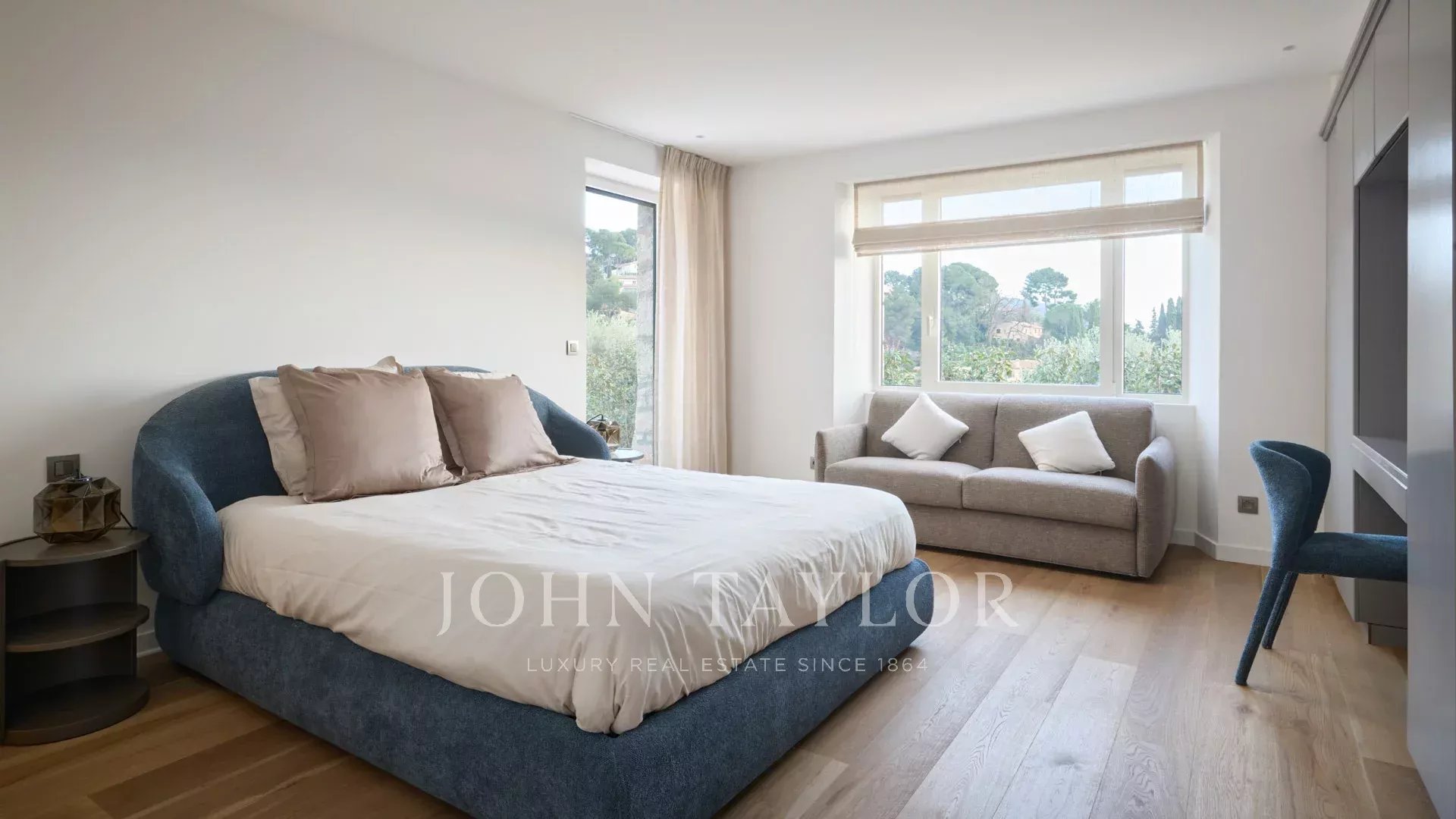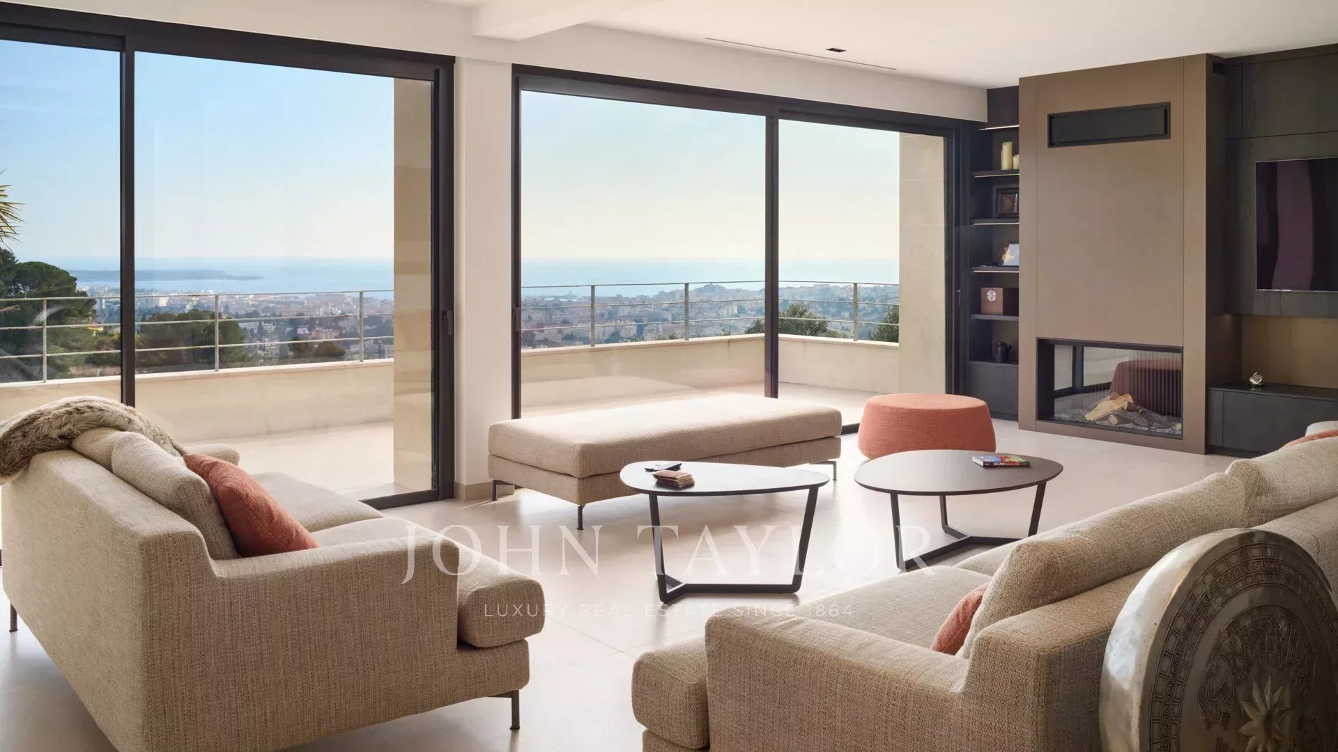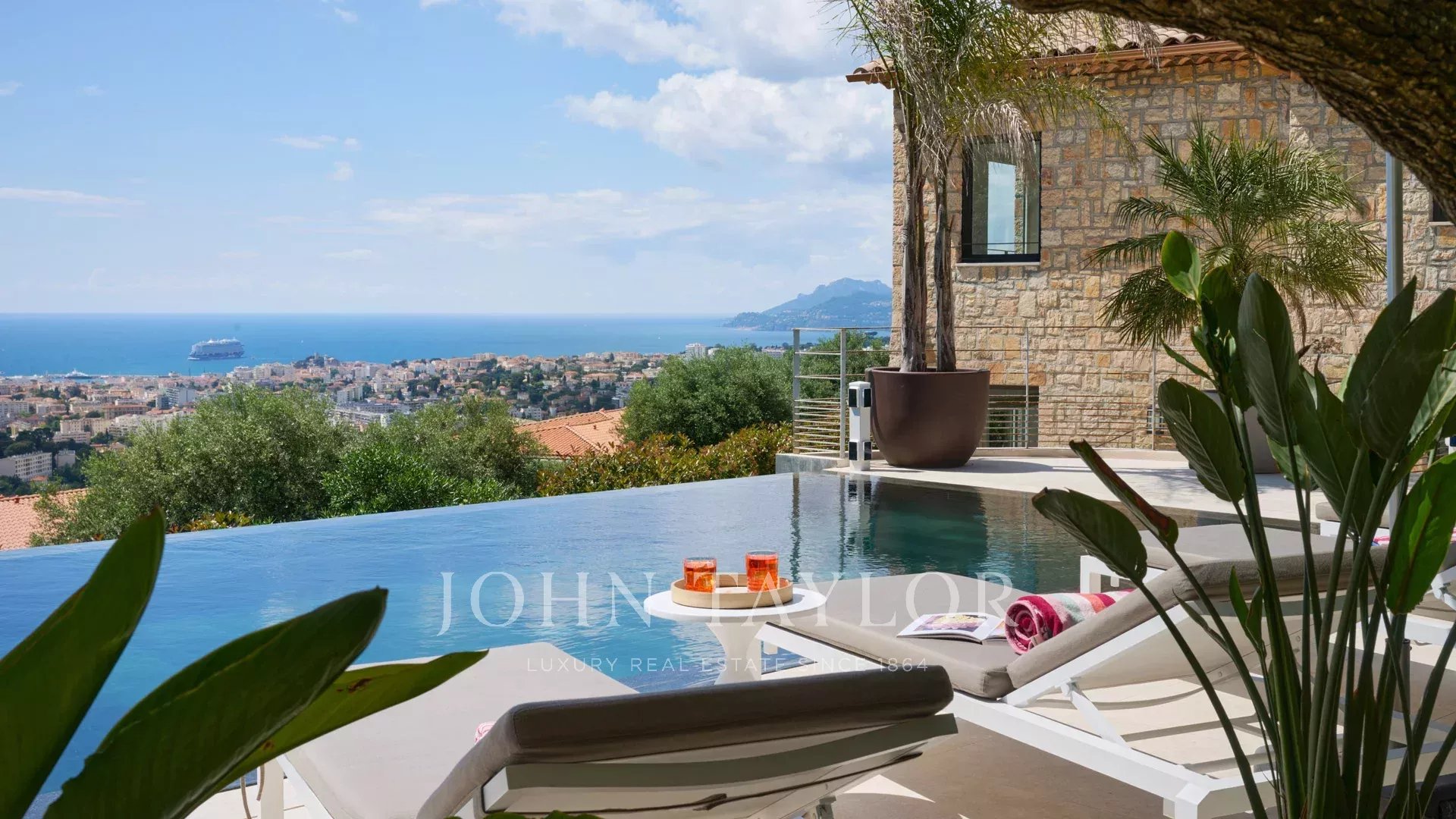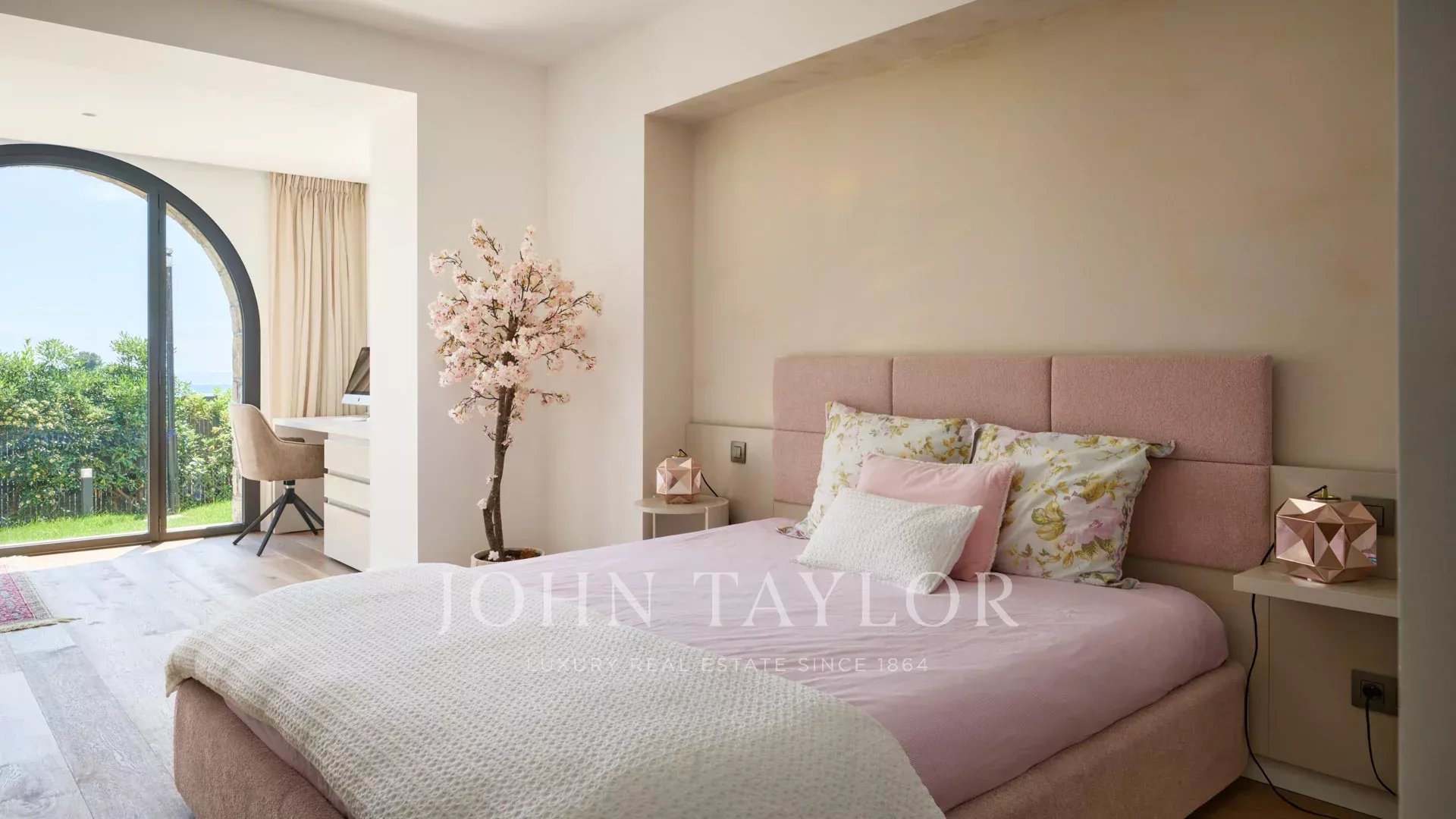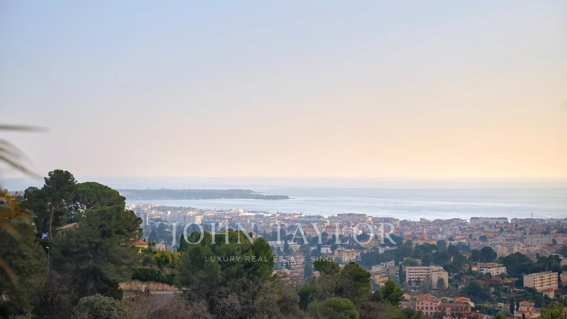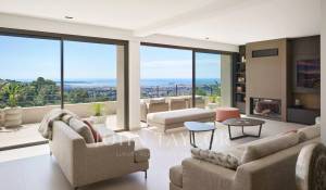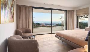 On the heights of Cannes, superb contemporary villa with 440 m2 of living space, fully air-conditioned, enjoying a beautiful sea view over the Bay of Cannes and the Esterel Massif.