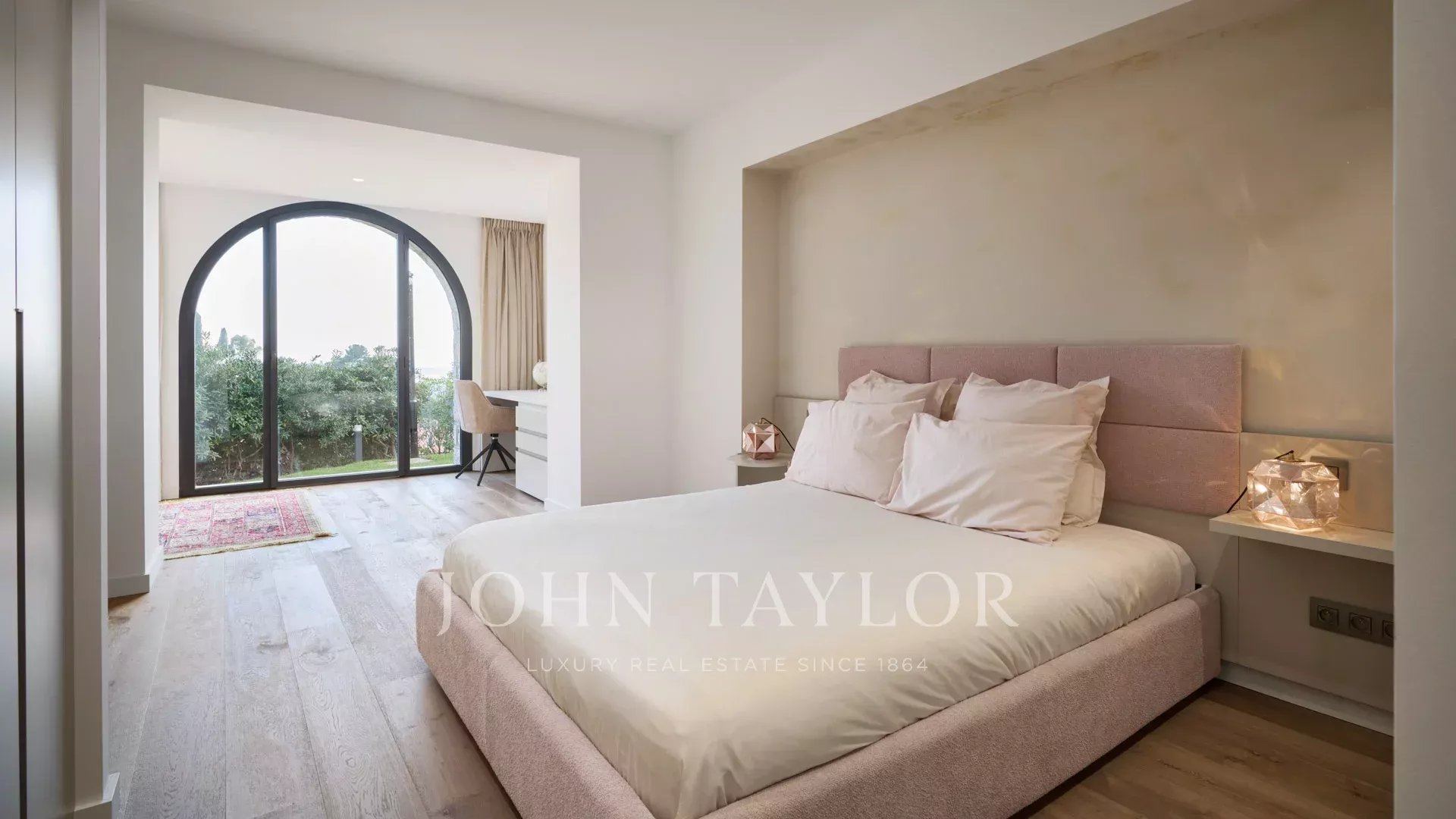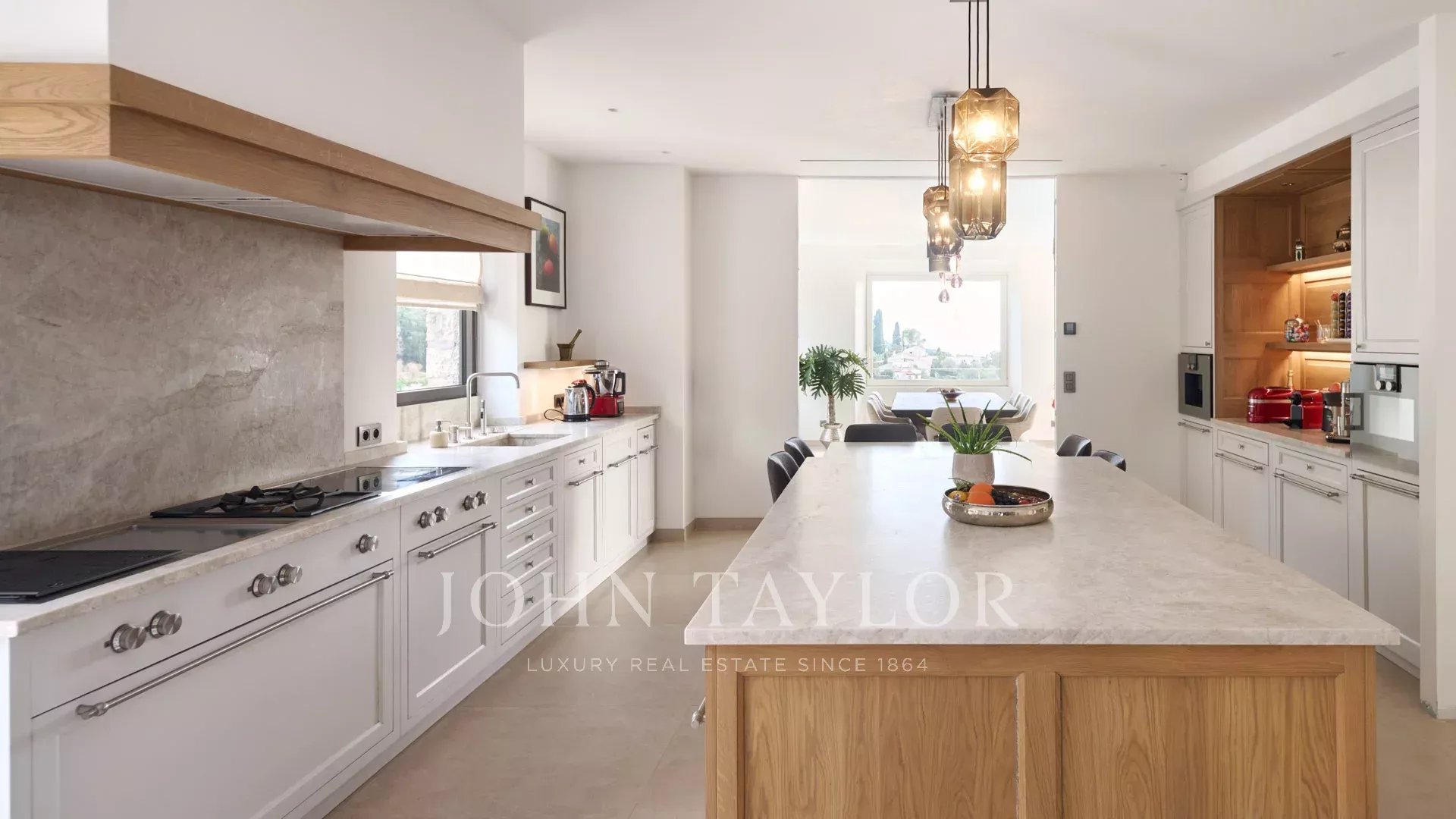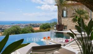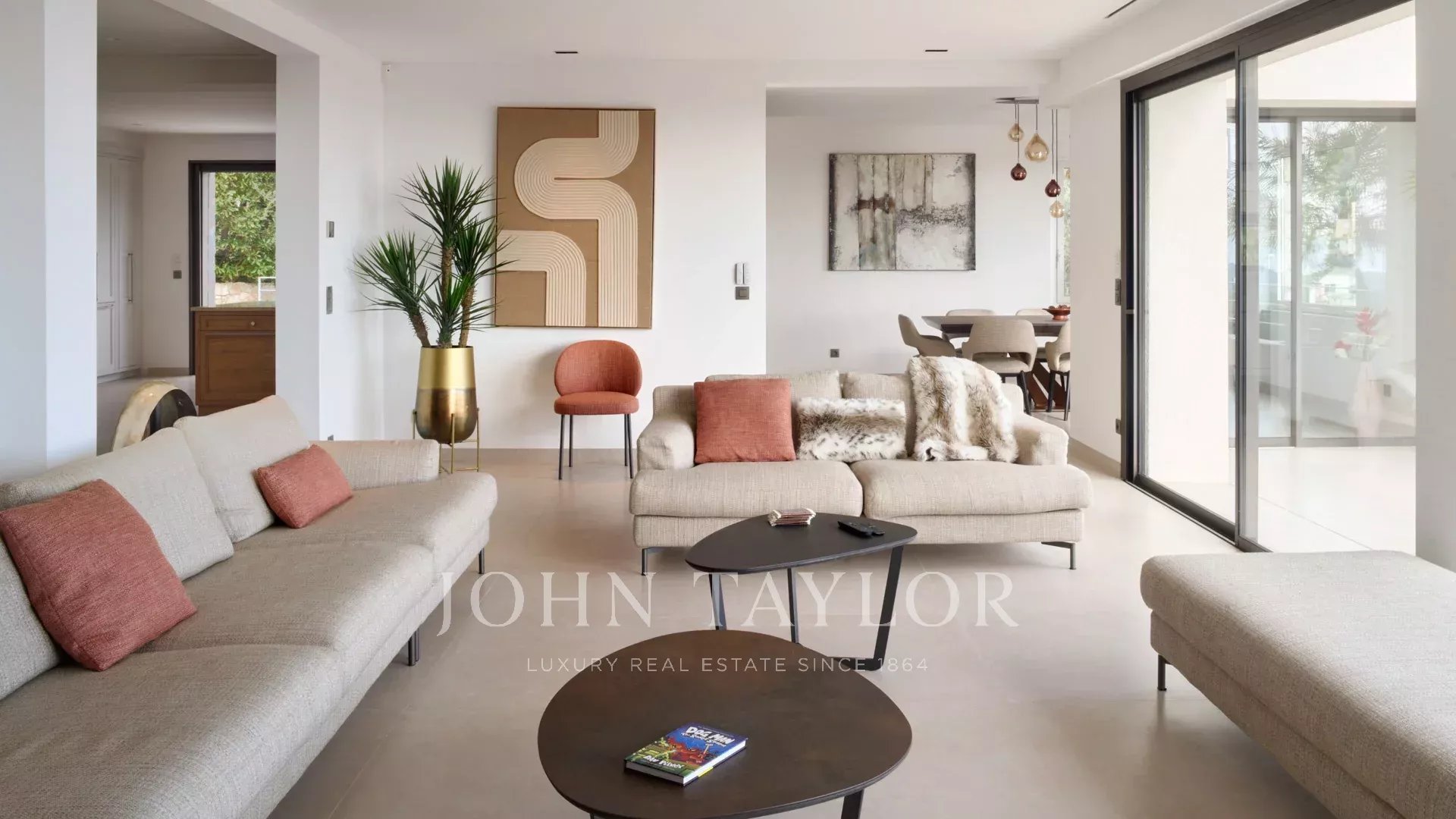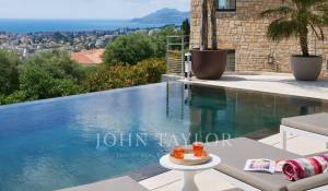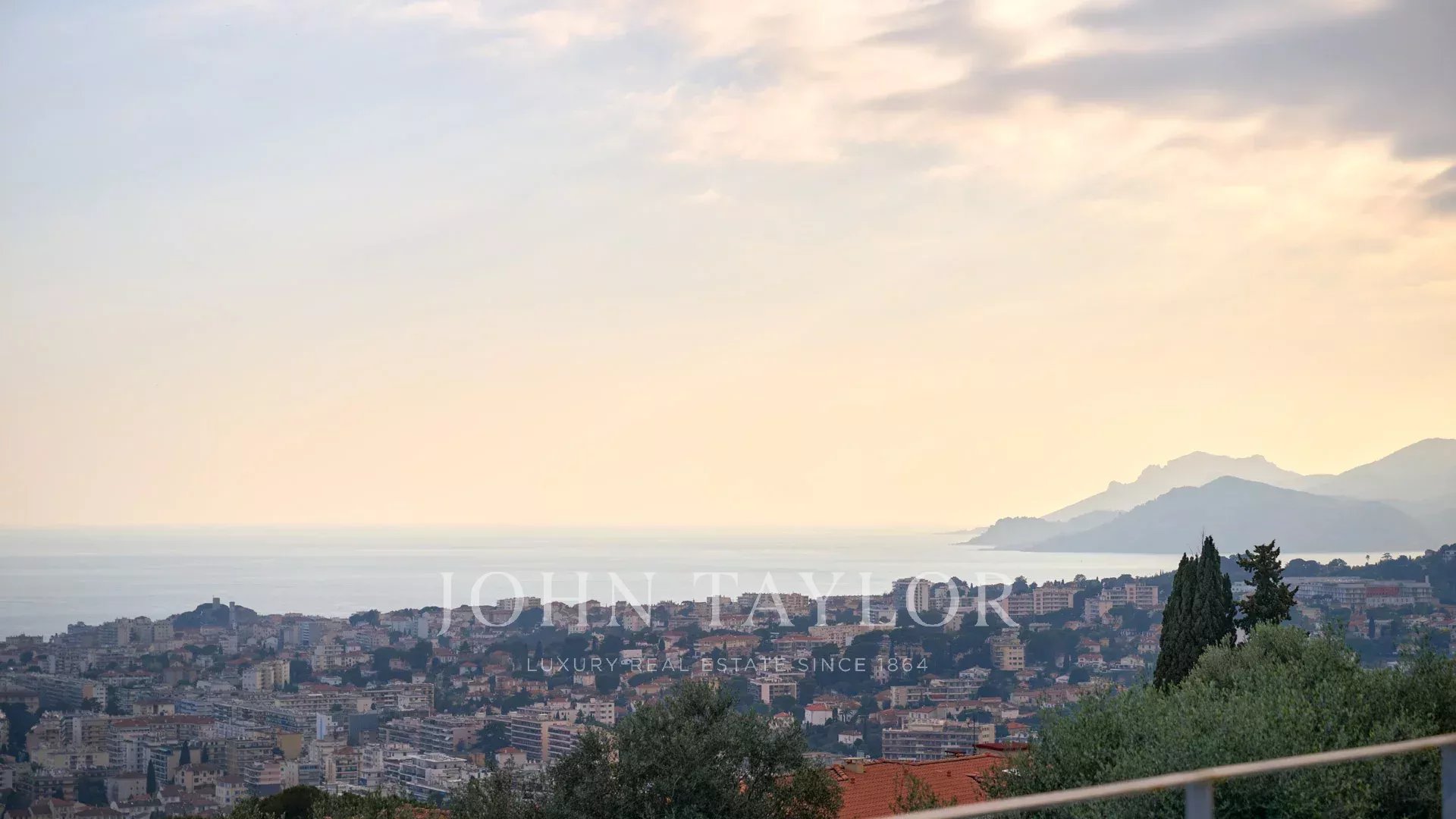 On the heights of Cannes, superb contemporary villa with 440 m2 of living space, fully air-conditioned, enjoying a beautiful sea view over the Bay of Cannes and the Esterel Massif.