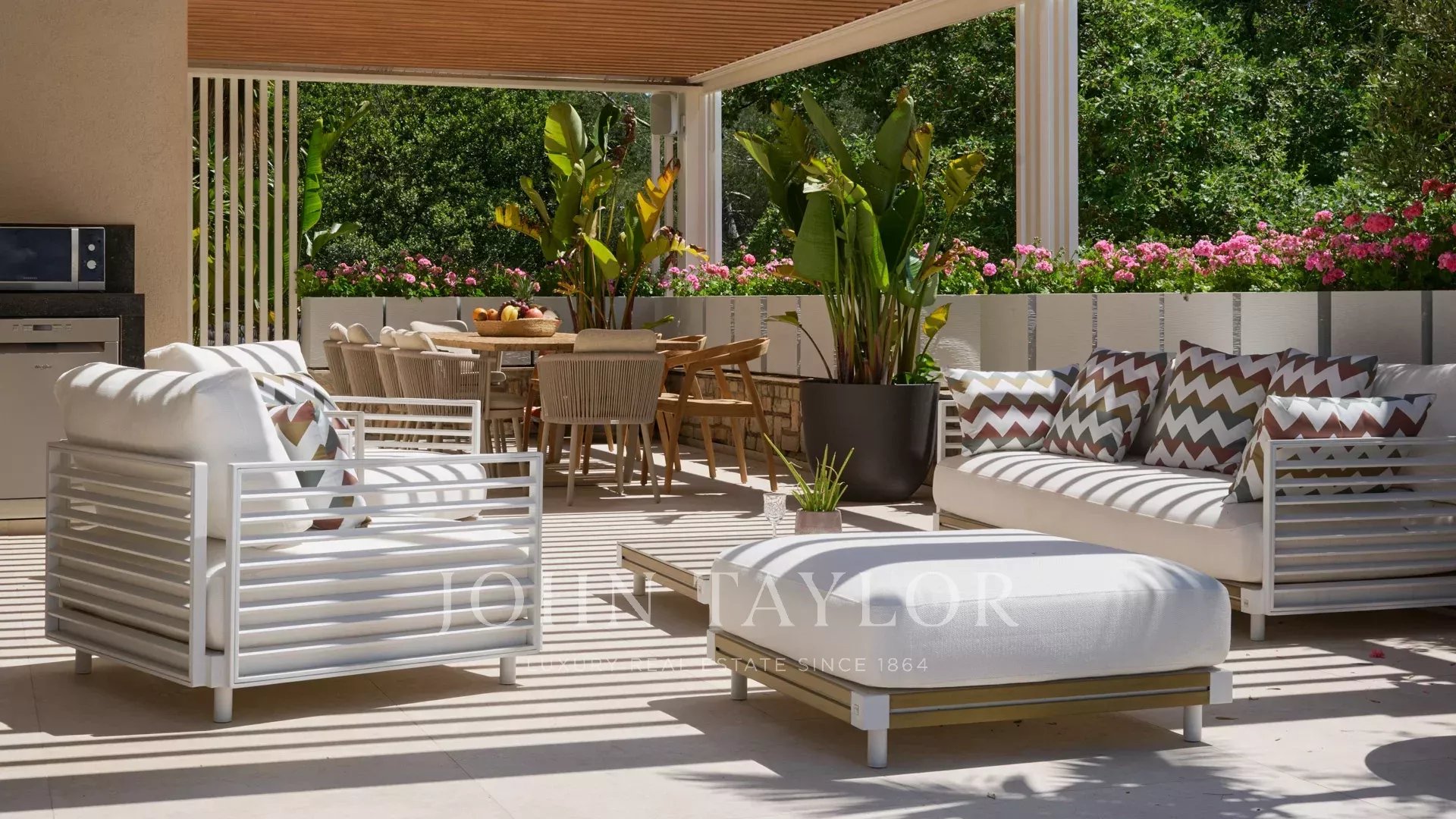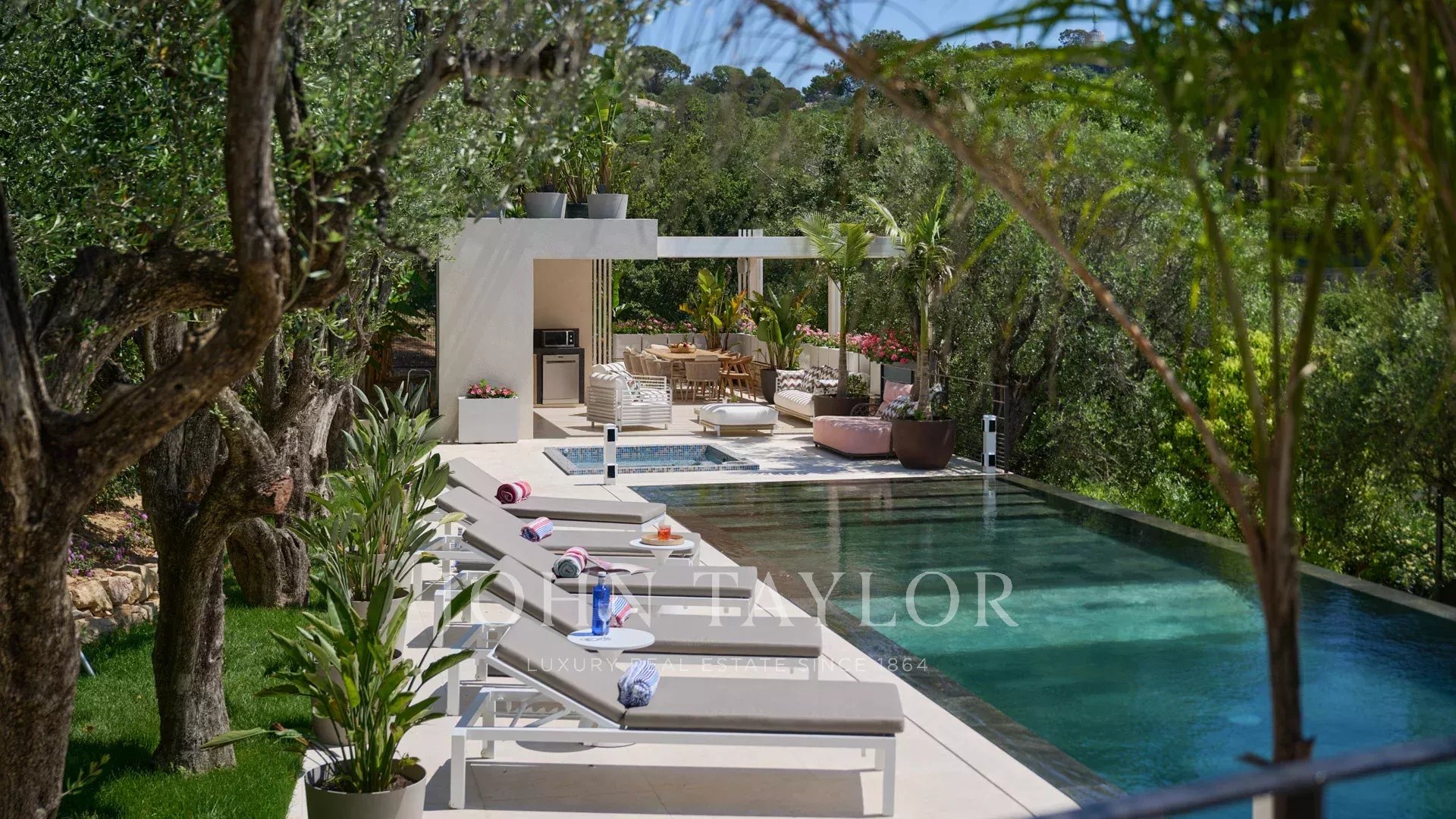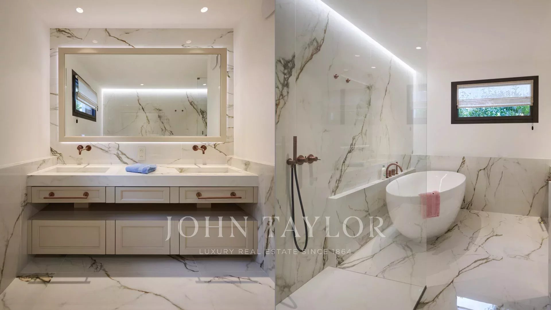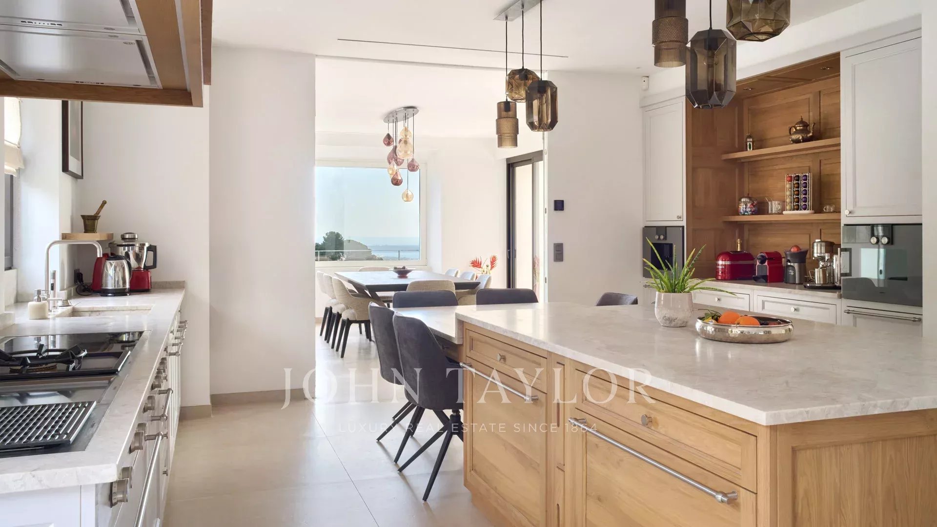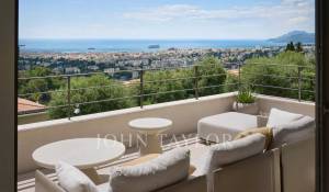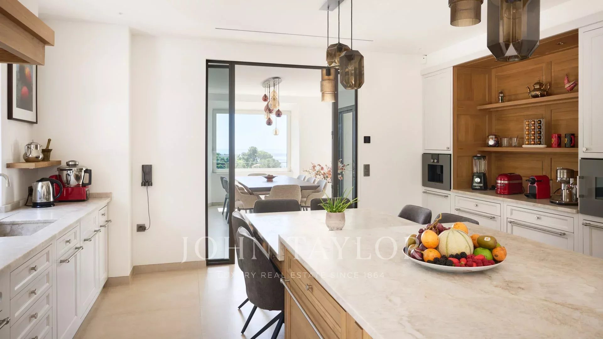 On the heights of Cannes, superb contemporary villa with 440 m2 of living space, fully air-conditioned, enjoying a beautiful sea view over the Bay of Cannes and the Esterel Massif.