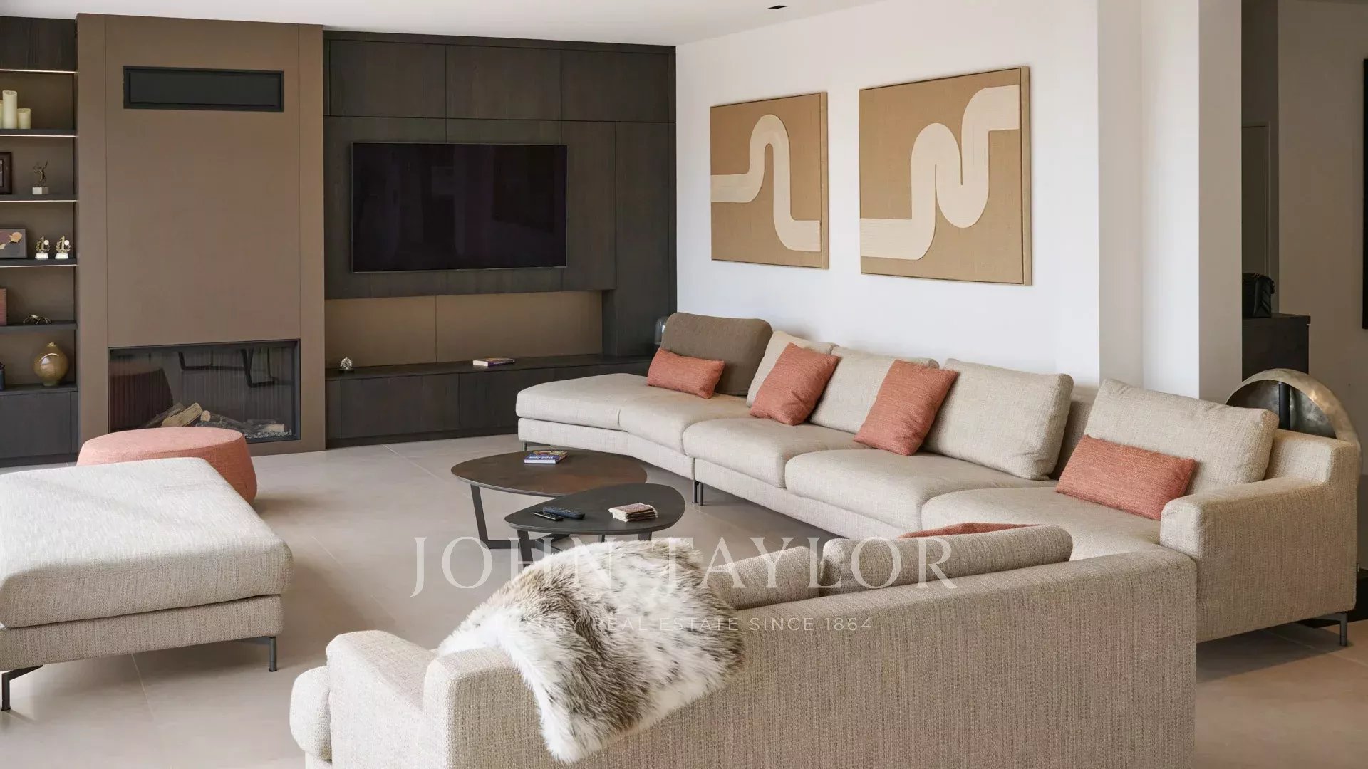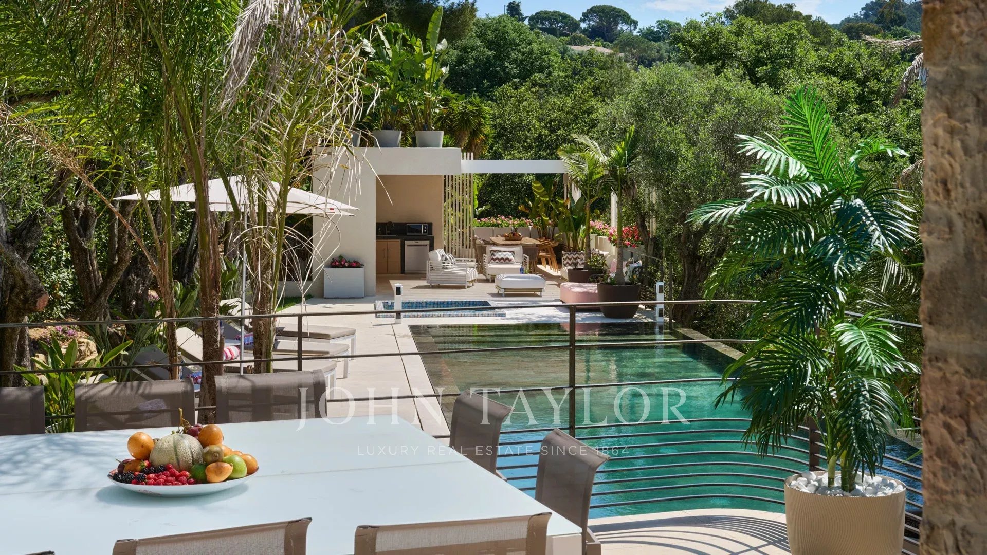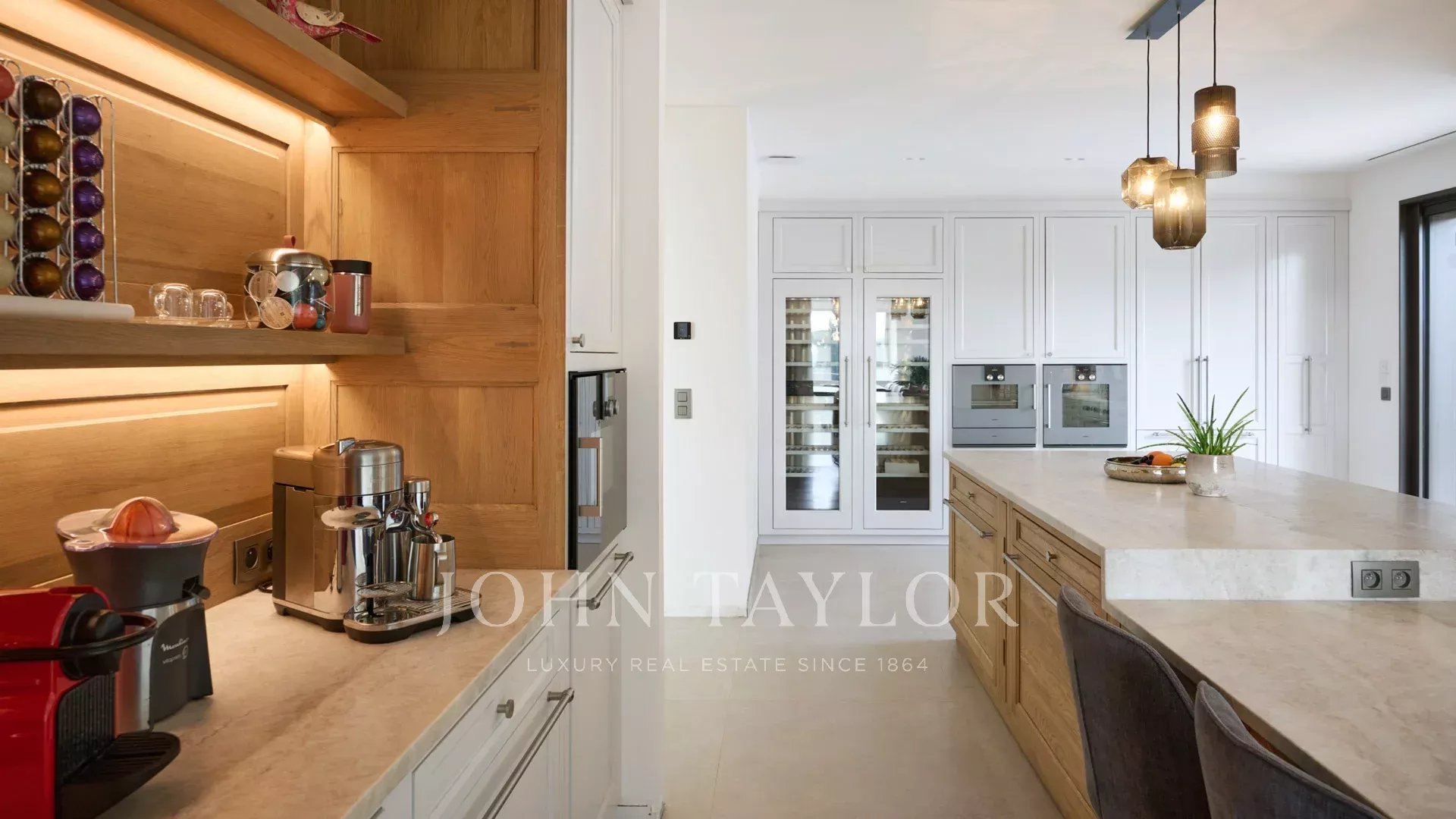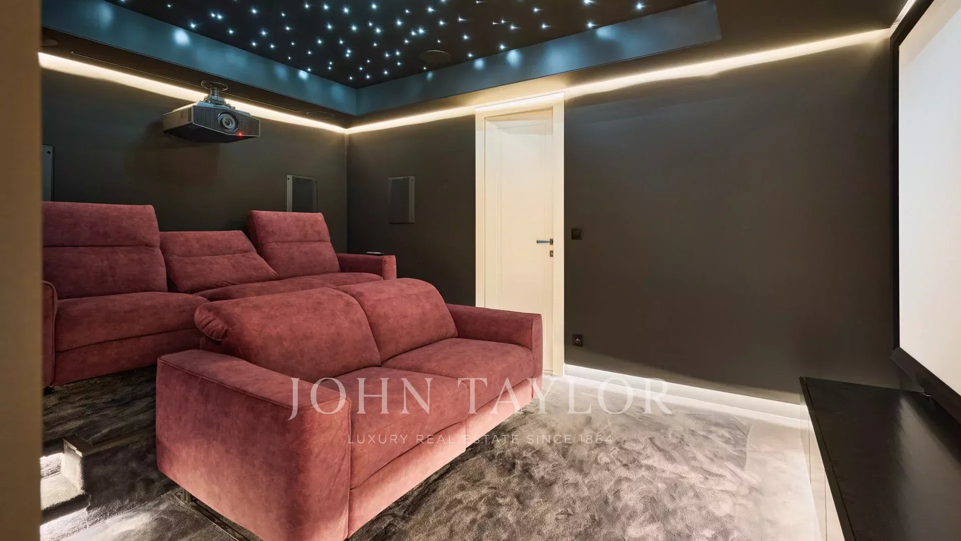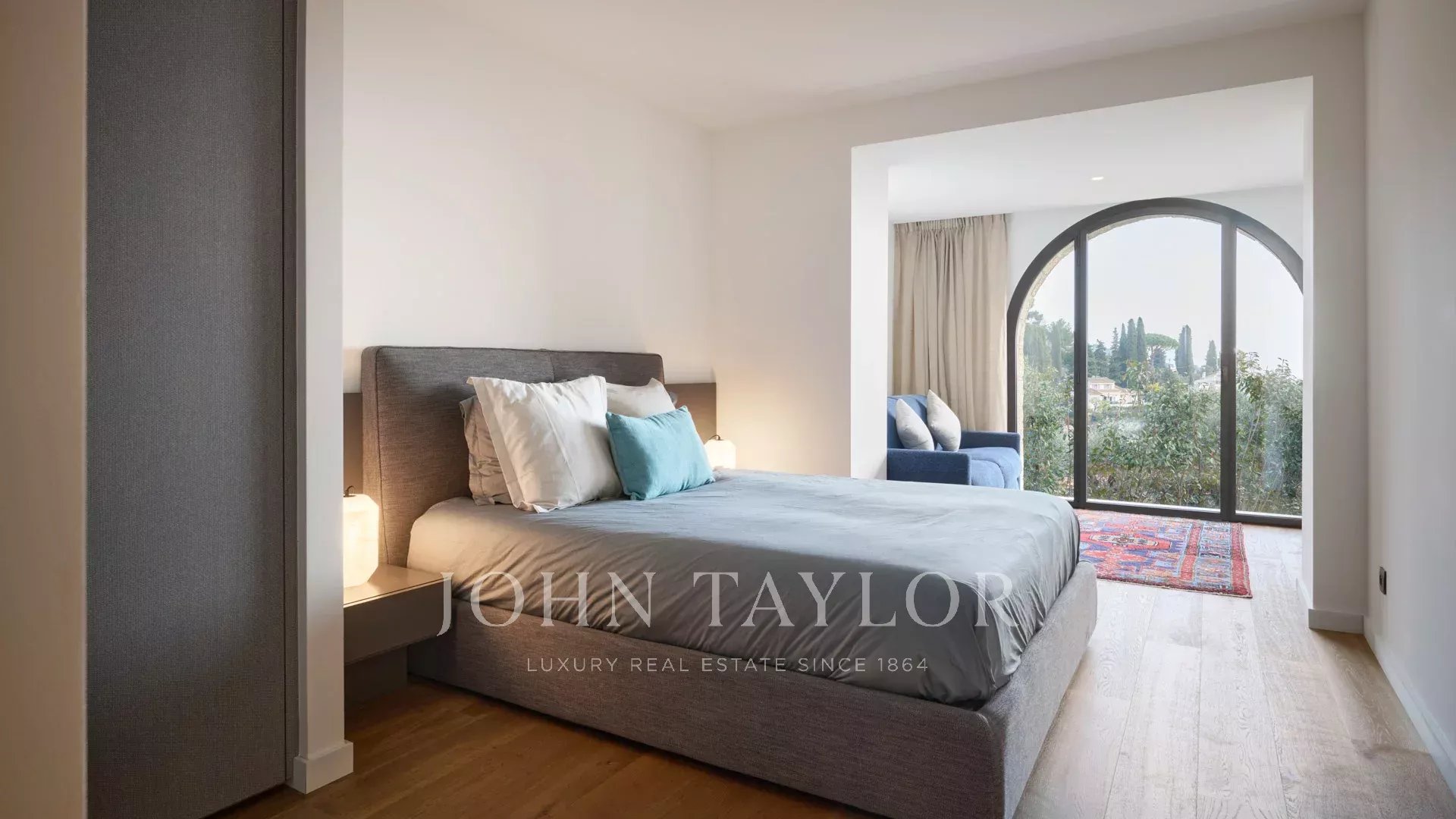 On the heights of Cannes, superb contemporary villa with 440 m2 of living space, fully air-conditioned, enjoying a beautiful sea view over the Bay of Cannes and the Esterel Massif.
