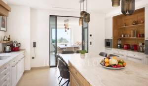 Fully equipped kitchen (mineralized water - ice maker - dining area for 6) opening onto terrace, pool view