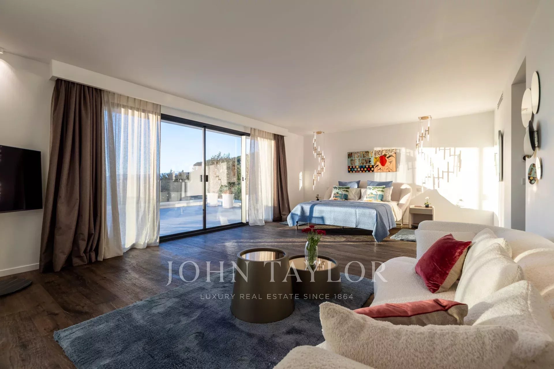 Located just 10 minutes from the Croisette, in a prestigious residential area of Le Cannet, this stunning contemporary estate offers the perfect blend of elegance, comfort, and privacy for an unforgettable stay on the French Riviera.