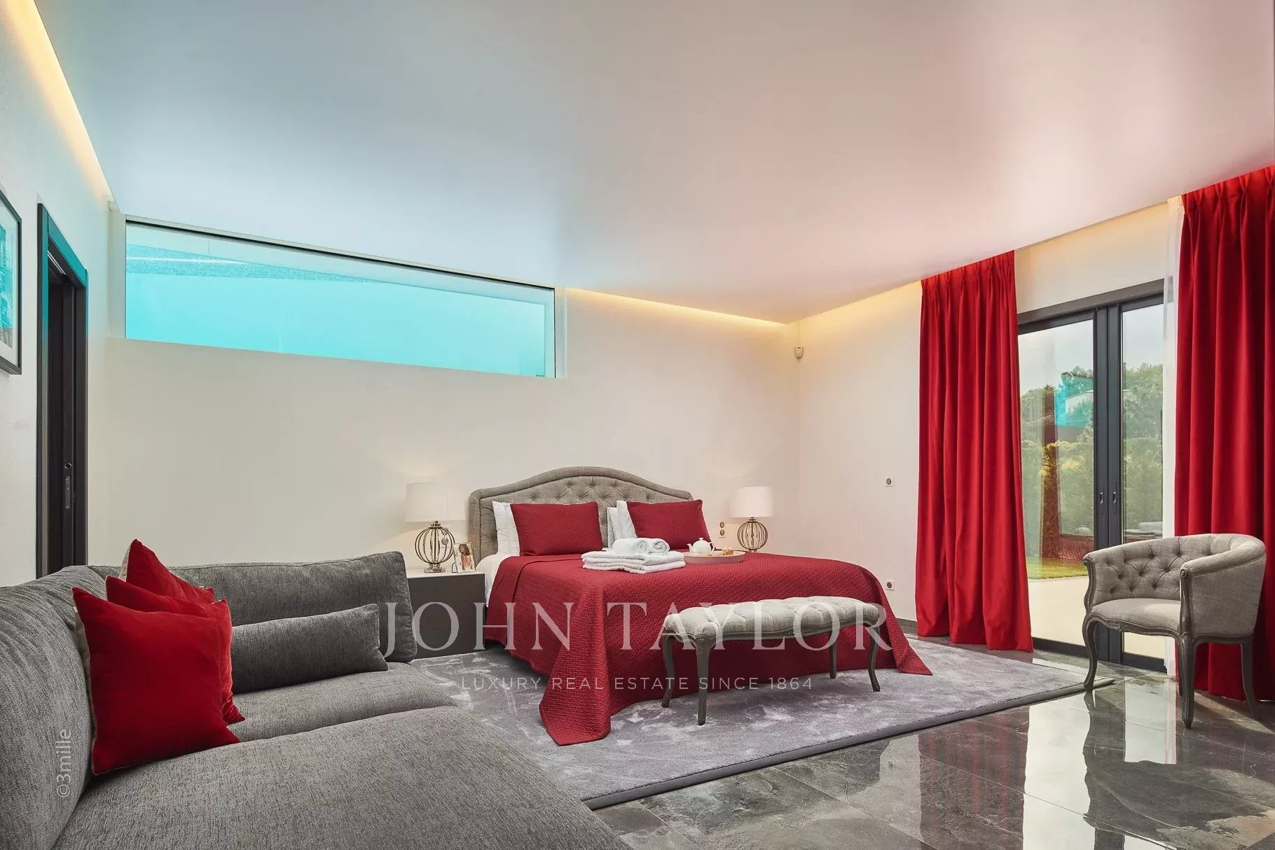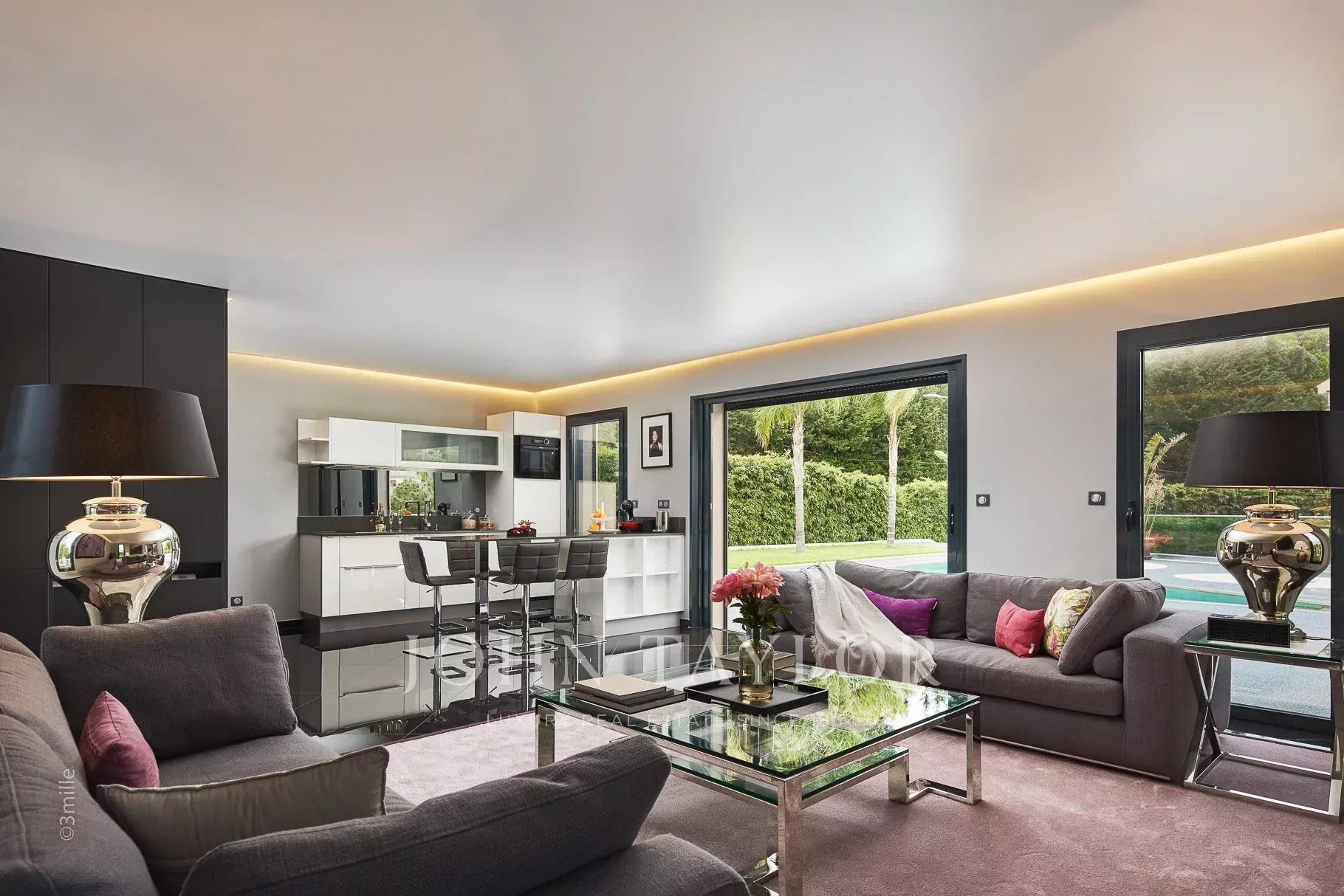 Enjoying views of the Cap d'Antibes from its lounge area and with a contemporary modern style, the MAIN VILLA, bright and spacious offers 460 m2 on several levels and is composed as follows: