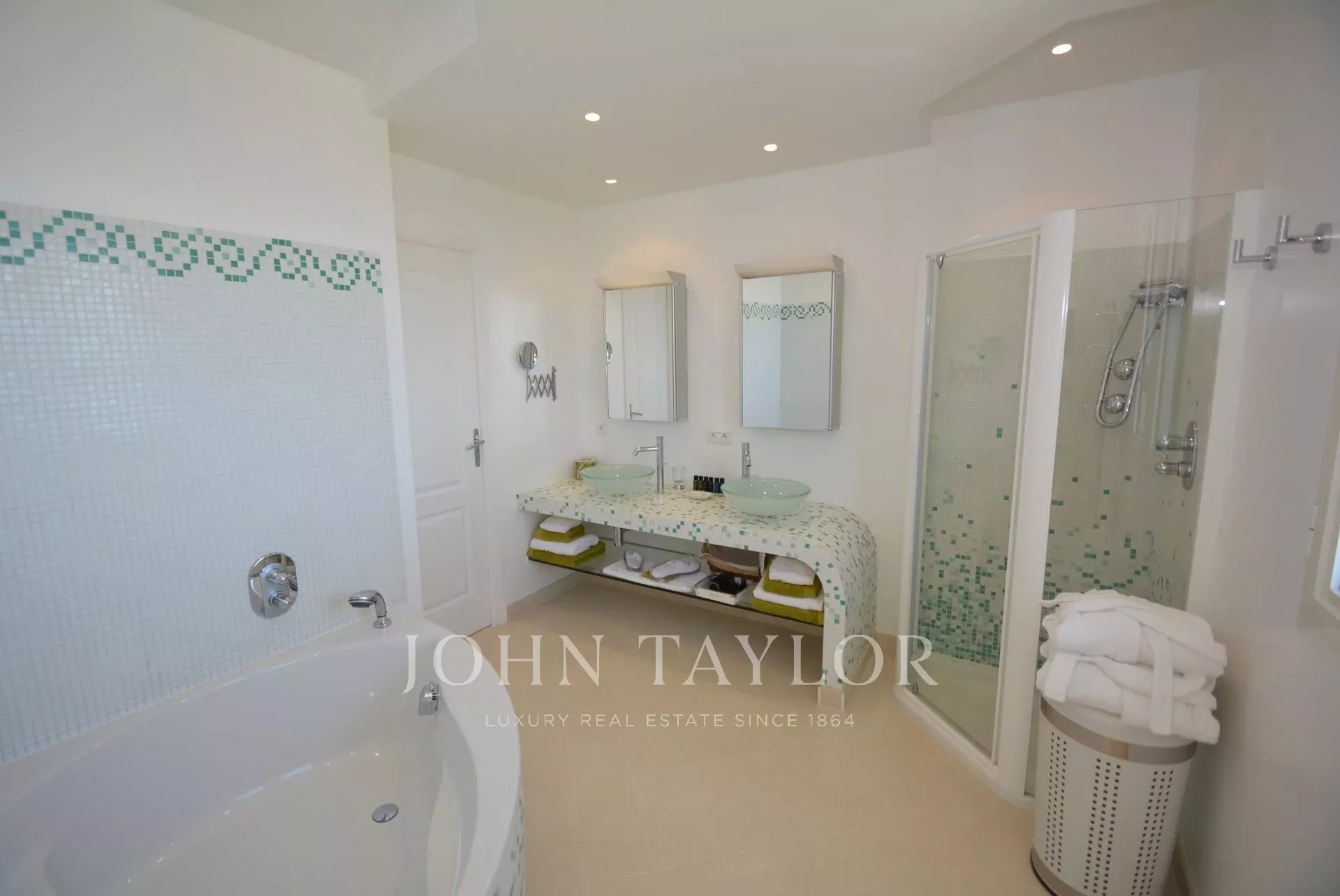 New Neo-provençale villa, contemporary decorated and fully air-conditioned. In the area called "Super Cannes", this villa with its 400 sq.m living space enjoys magnificent views over the Bay.