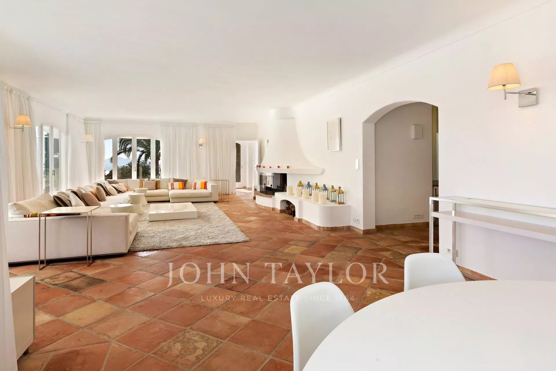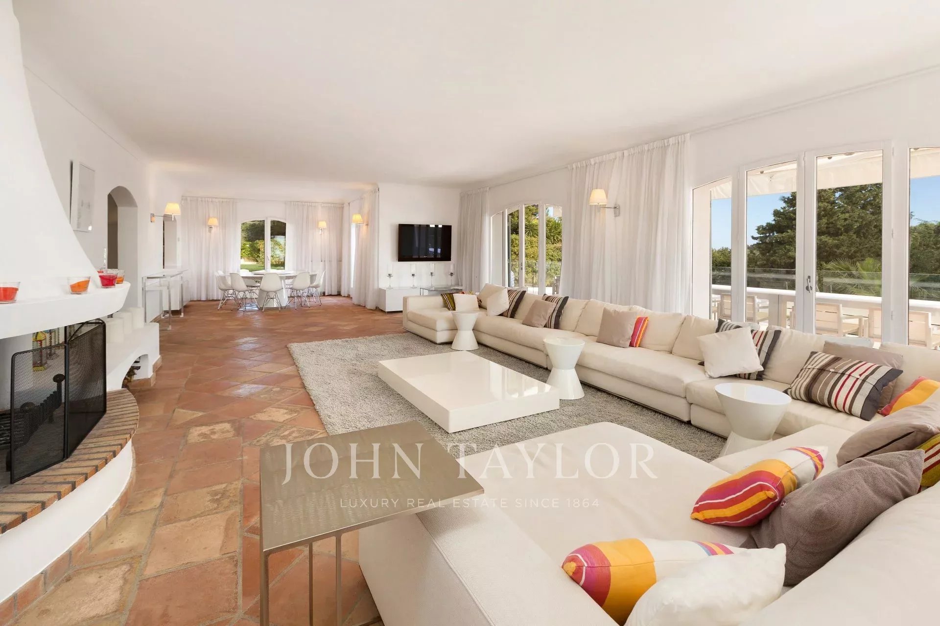 Large reception room comprising lounge and dining area, opening onto a large terrace equipped with summer dining area for 20 people and enjoying sea view