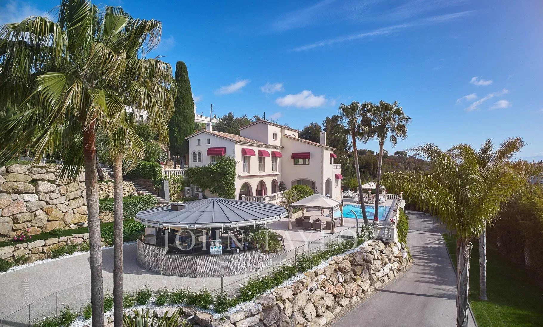 In the district of Super Cannes, magnificent villa located in a quiet area on the hills of Cannes, surrounded by a large plot of 20,000 m2 planted with different species (eucalyptus, mimosa, pine).