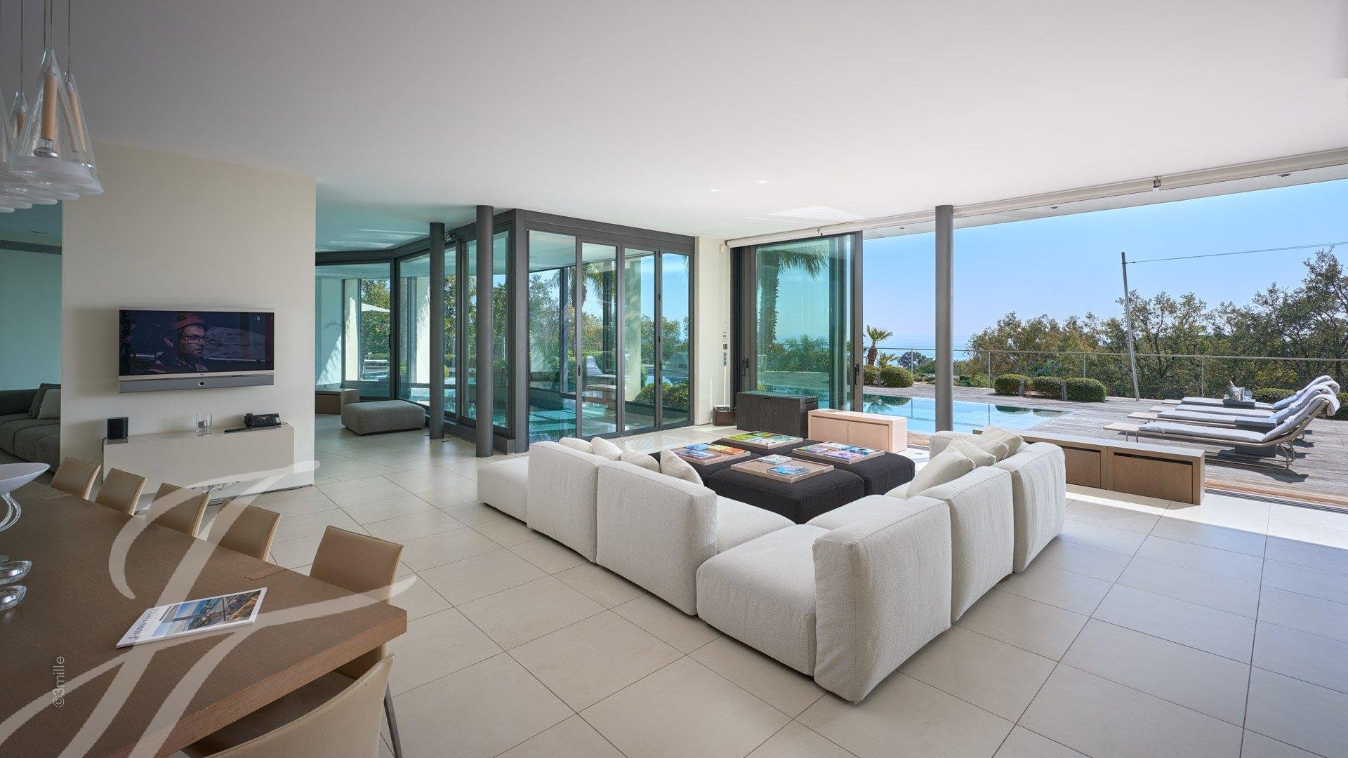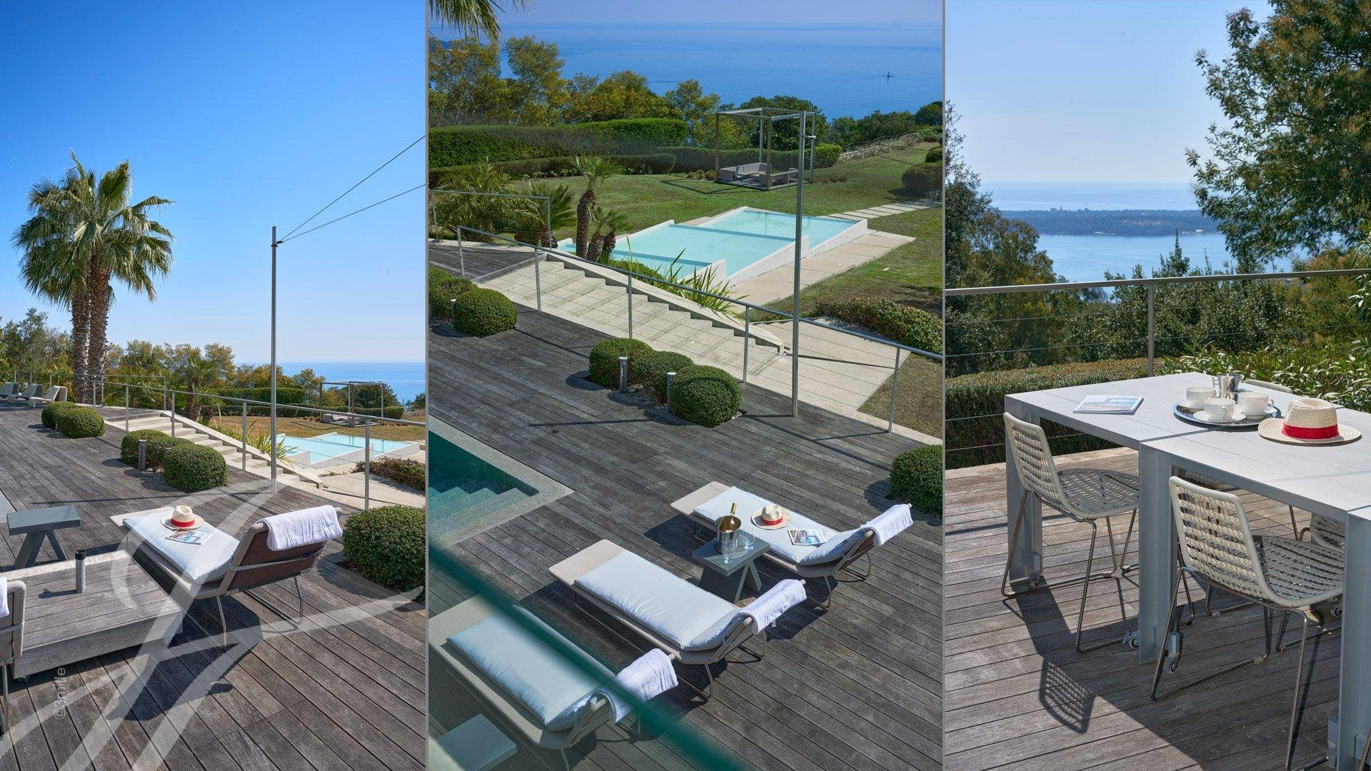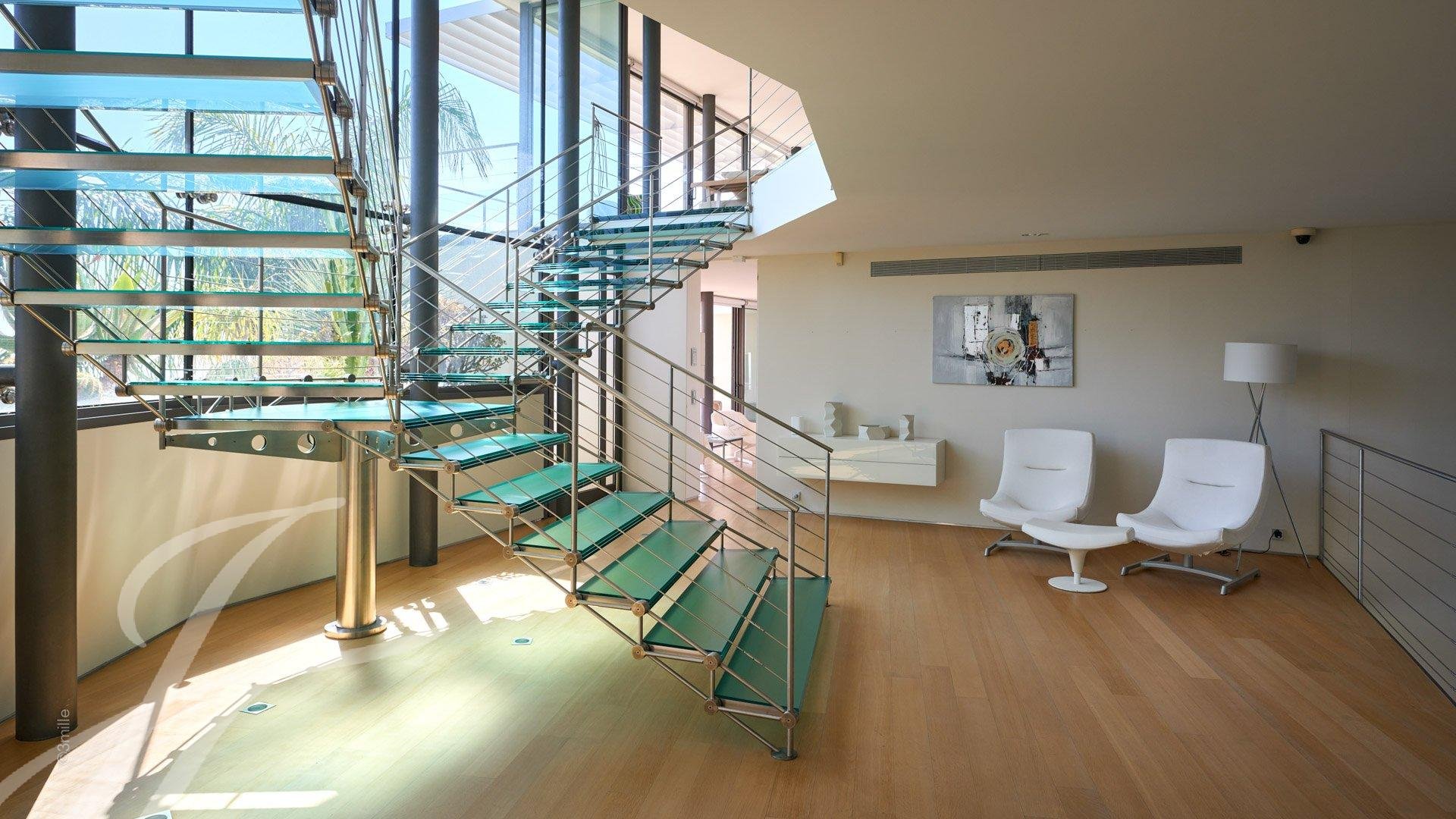 Welcome to this superb contemporary villa, a modern oasis of 800 sq.m spread over 4 levels, with a lift, nestling in the heart of a vast 6,000 sq.m plot. This air-conditioned residence offers a luxurious experience with breathtaking panoramic sea views stretching from the Lérins Islands to the majestic Cap d'Antibes.