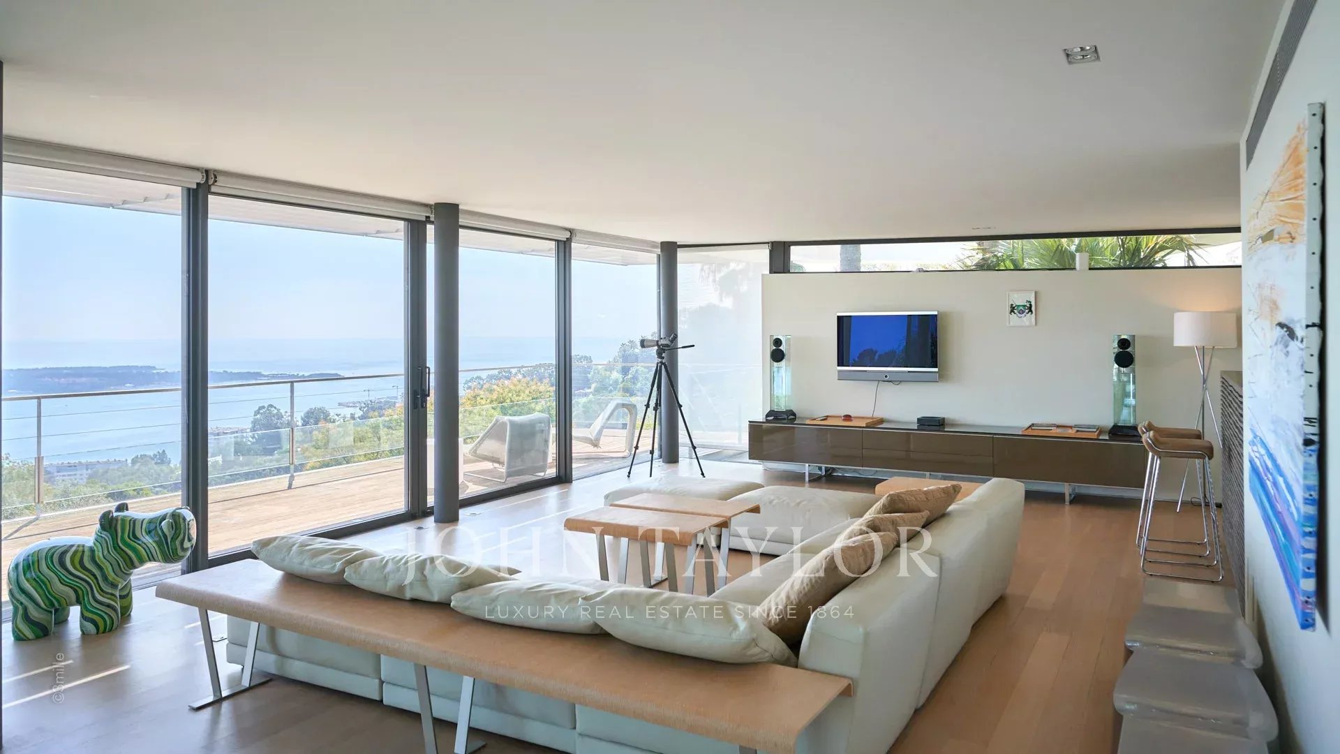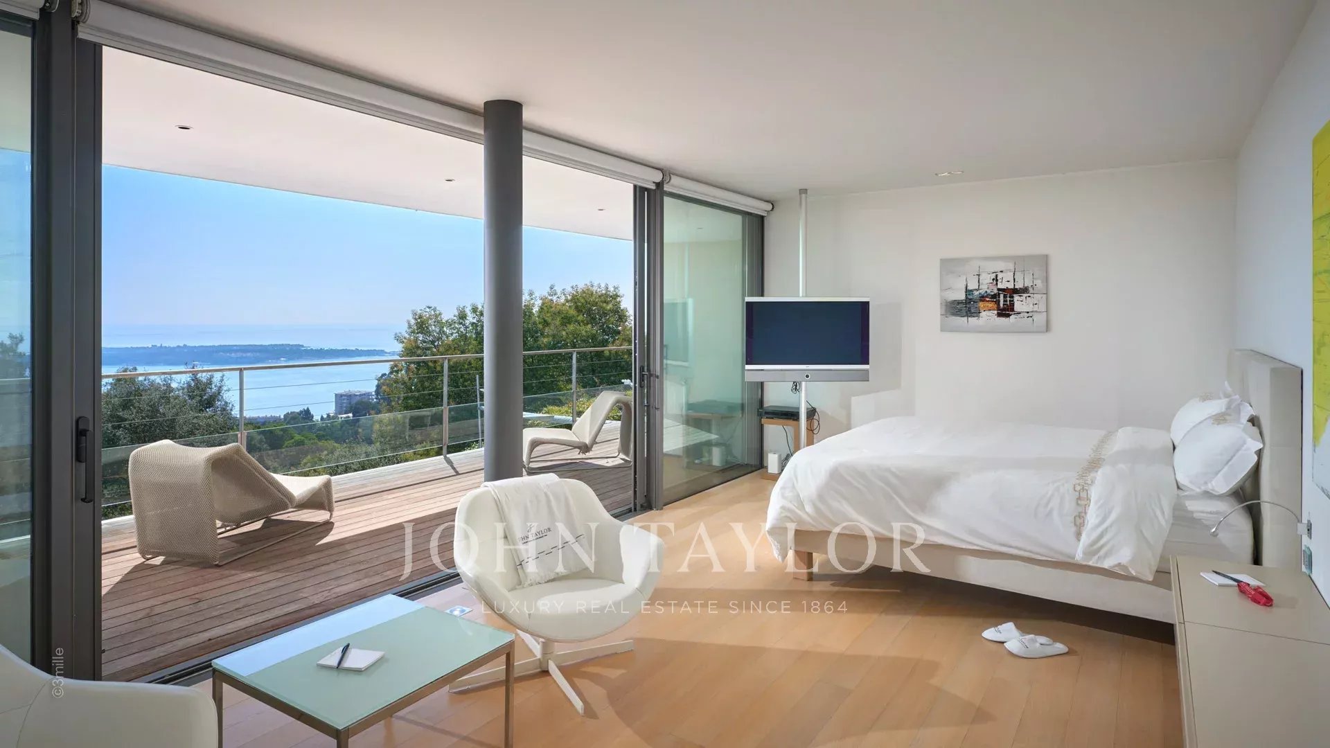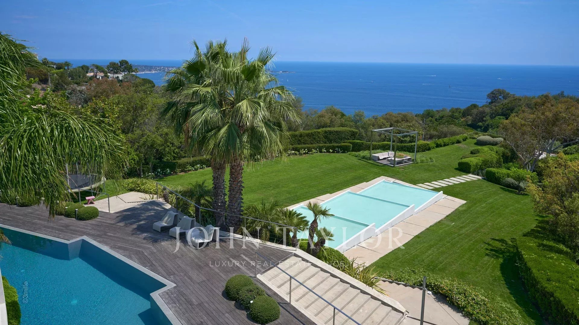 Welcome to this superb contemporary villa, a modern oasis of 800 sq.m spread over 4 levels, with a lift, nestling in the heart of a vast 6,000 sq.m plot. This air-conditioned residence offers a luxurious experience with breathtaking panoramic sea views stretching from the Lérins Islands to the majestic Cap d'Antibes.