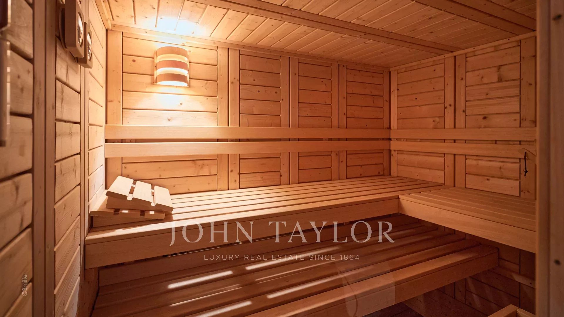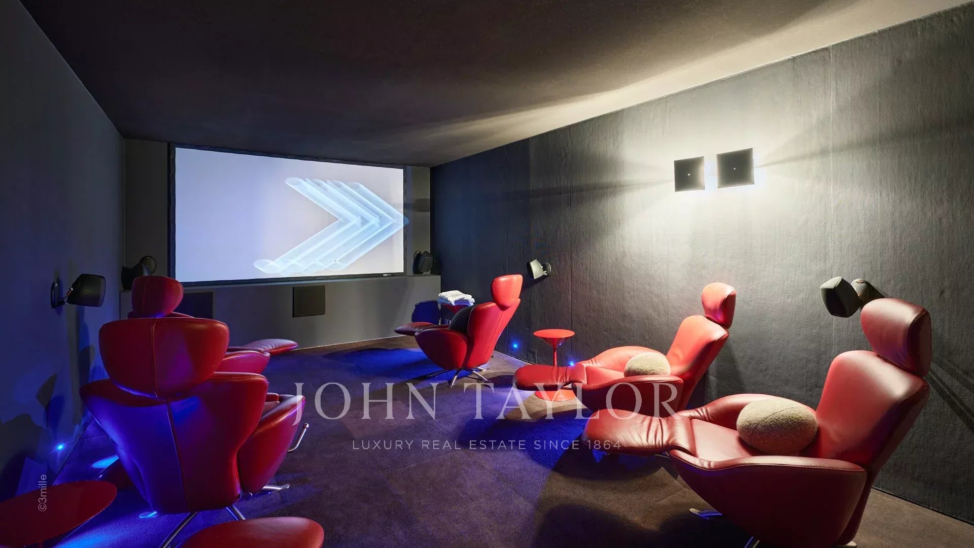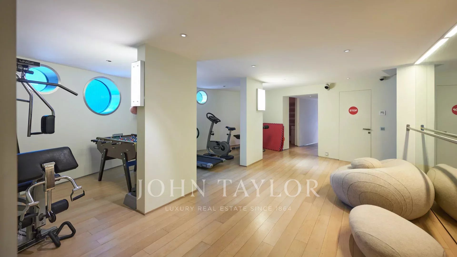 The next level reserves a sports room with table football and bar area, two shower rooms, a sauna, toilets, a cinema room, a laundry room equipped with 2 washing machines and 2 tumble dryers, as well as a shower and toilets for staff.