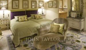 Bedroom (twin beds x 100), TV / Dressing room / Bathroom with TV, double sink, bath, shower and toilet / opened on garden