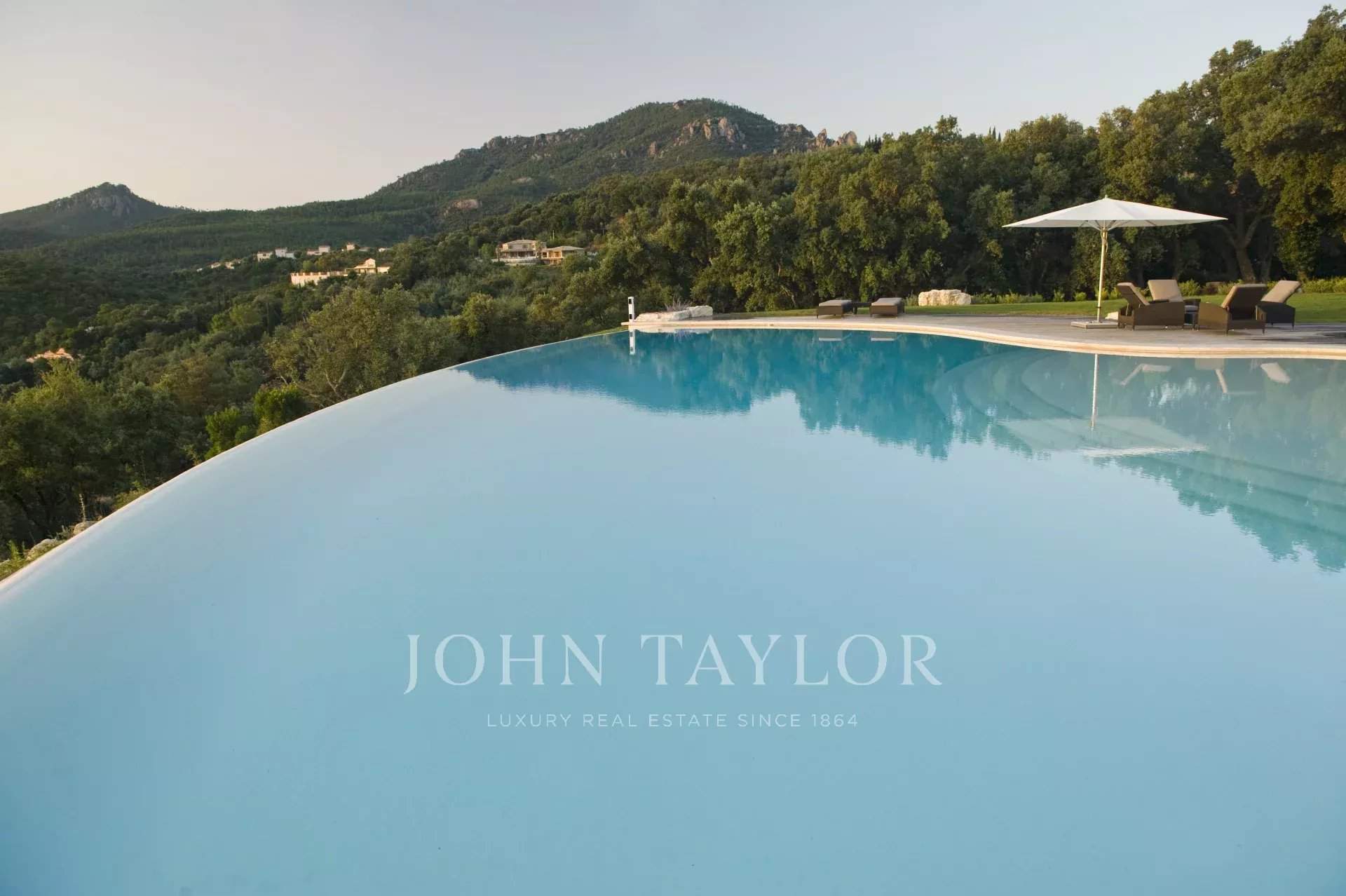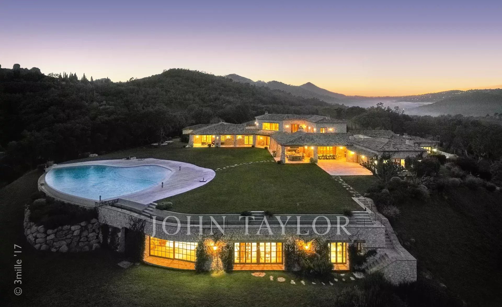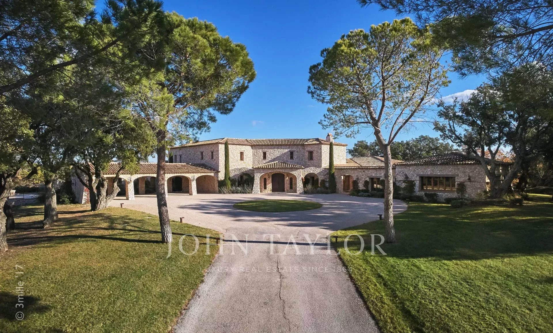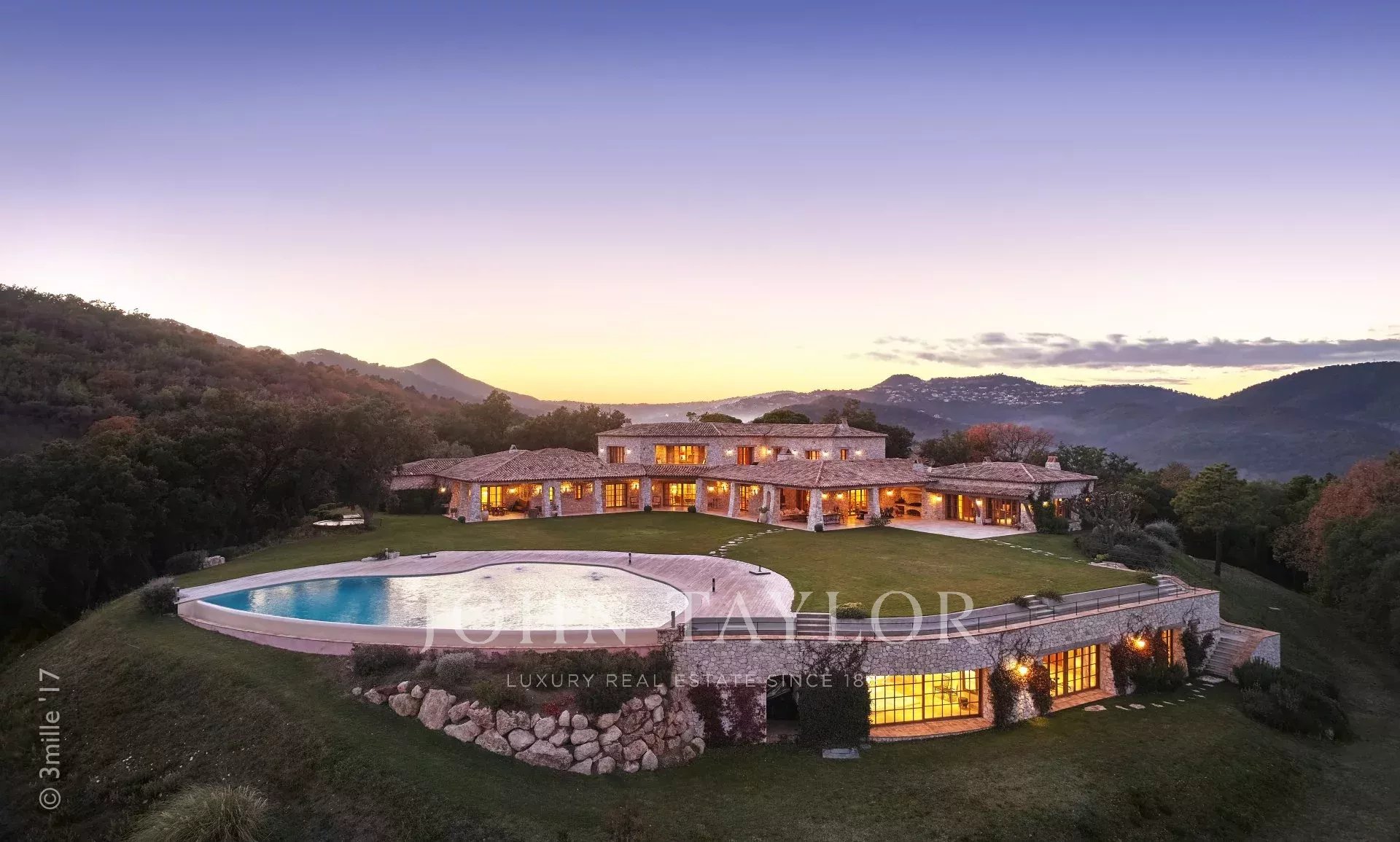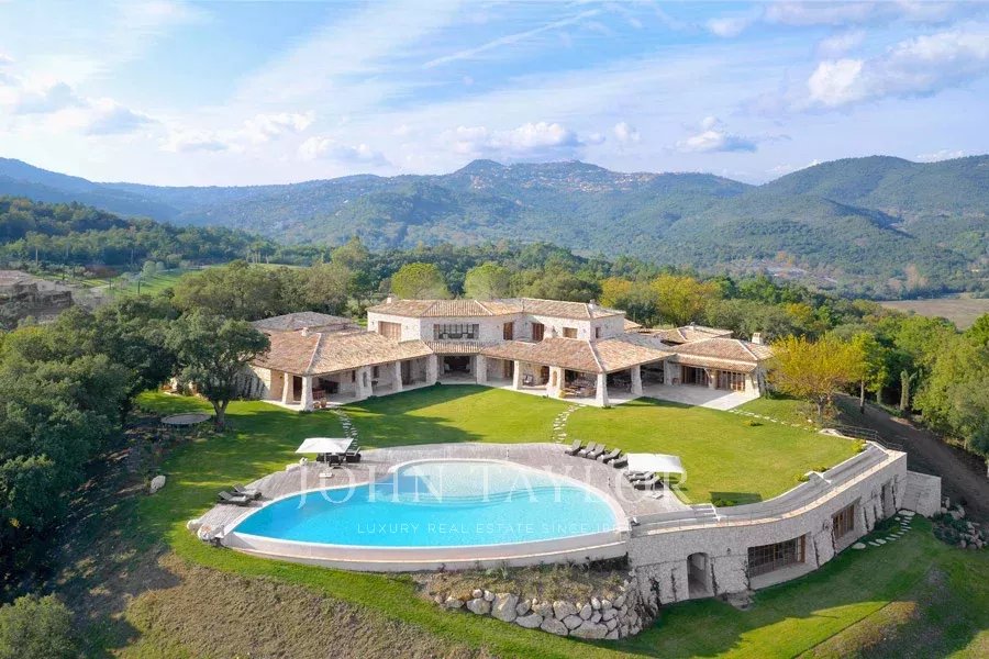 This unique and exceptional property is at only 20 minutes from Croisette in Cannes and 10 minutes from Cannes Mandelieu Airport. Private estate of 30 hectares laids out with care of hundred years old olive trees, lavender fields, lawns, tennis court, footpath or jogging (4 km) and heliport. Spectacular view overlooking the Bay of Cannes, Les Iles de Lerins and the Esterel Mountains.