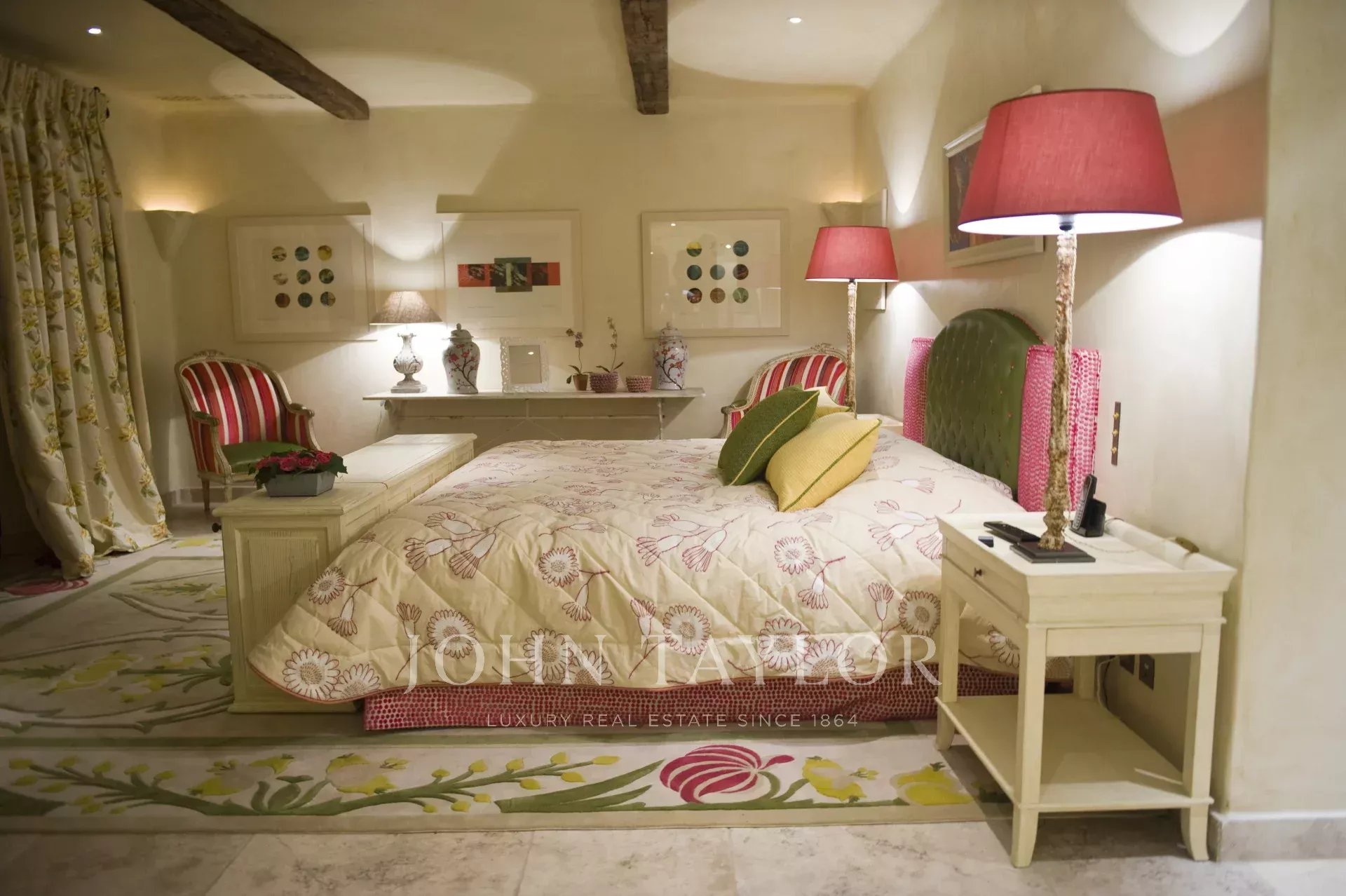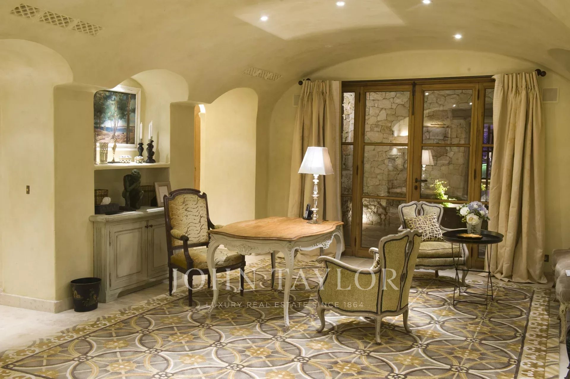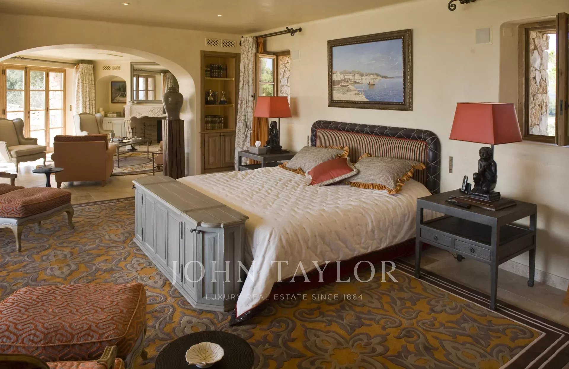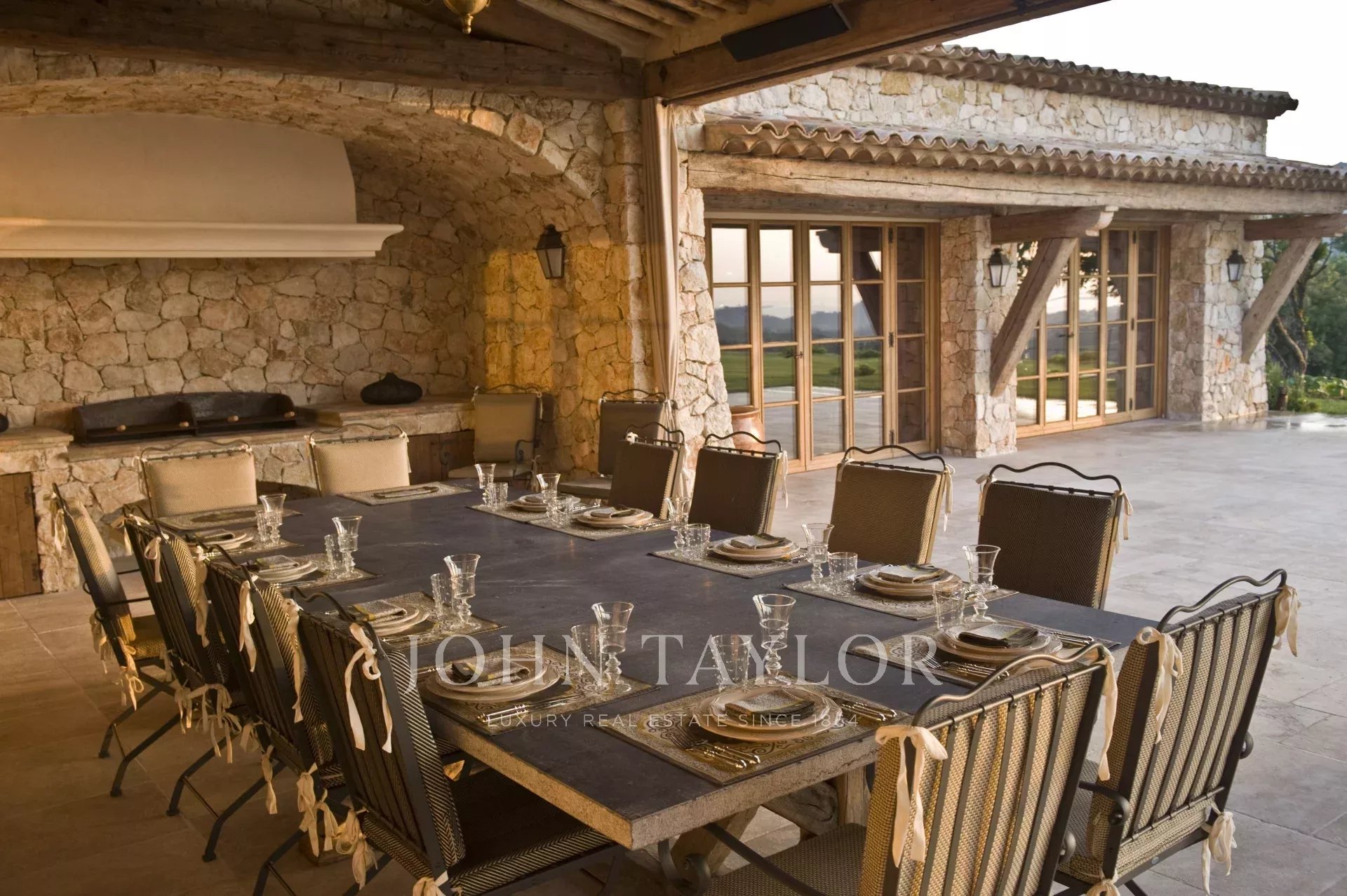 This unique and exceptional property is at only 20 minutes from Croisette in Cannes and 10 minutes from Cannes Mandelieu Airport. Private estate of 30 hectares laids out with care of hundred years old olive trees, lavender fields, lawns, tennis court, footpath or jogging (4 km) and heliport. Spectacular view overlooking the Bay of Cannes, Les Iles de Lerins and the Esterel Mountains.