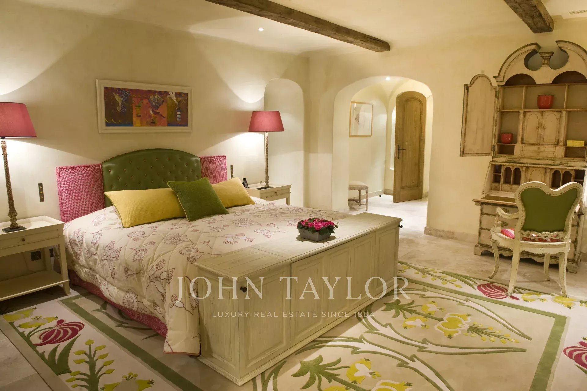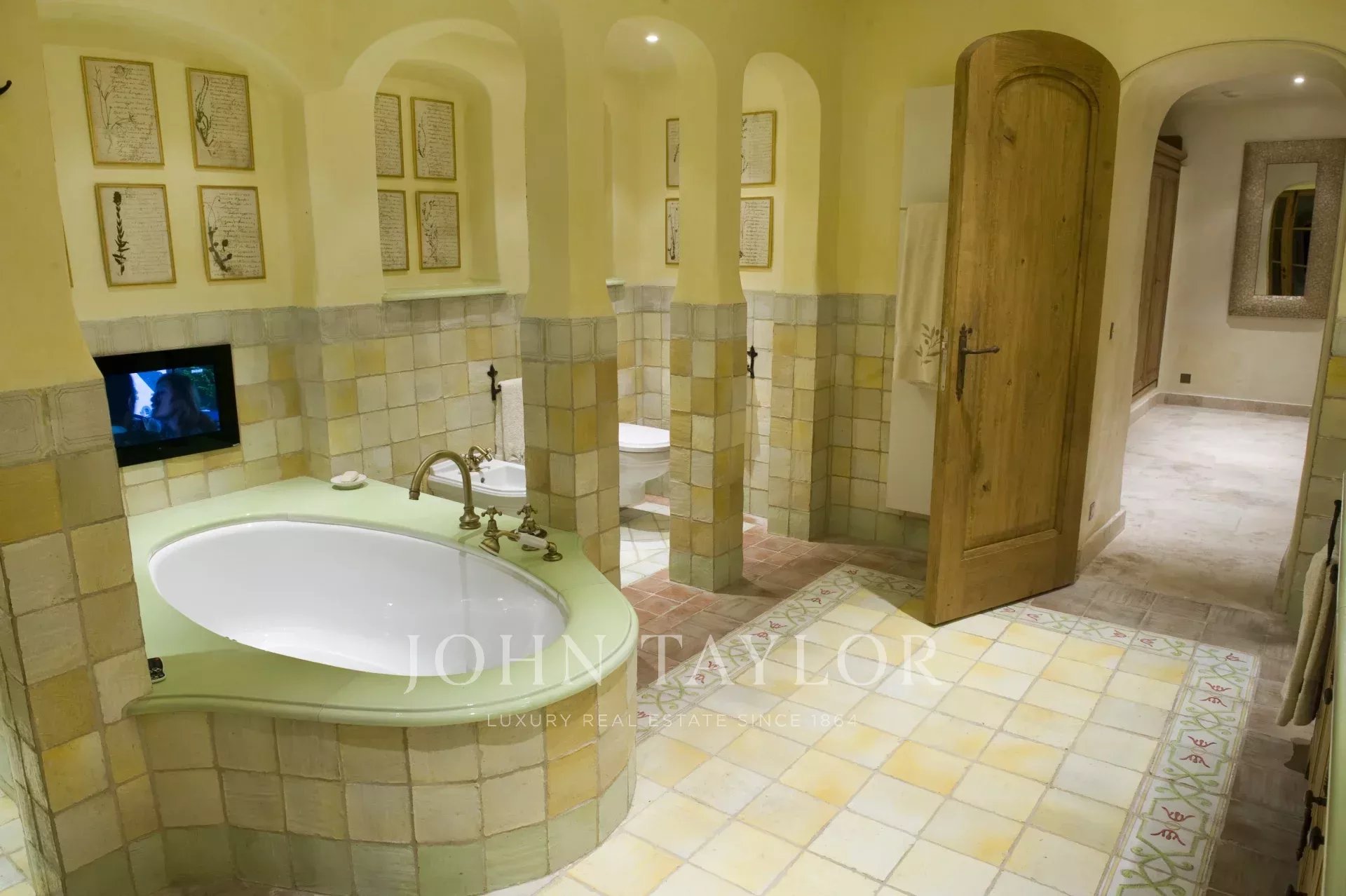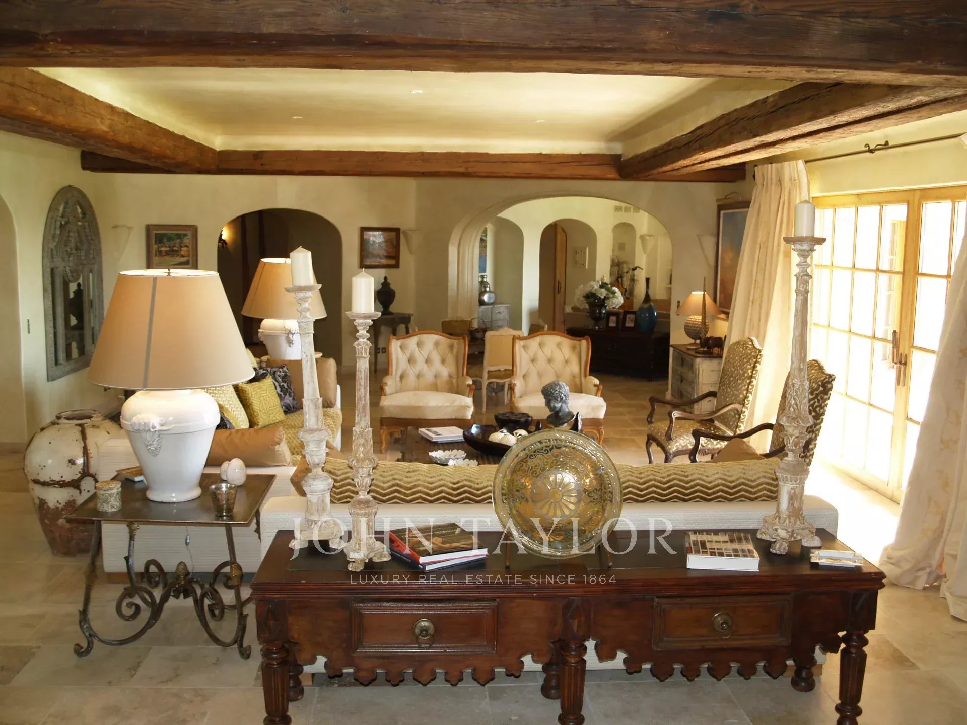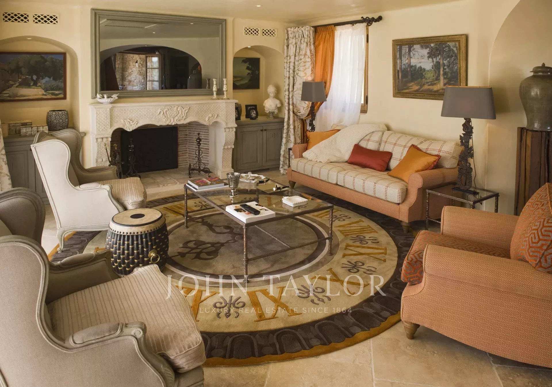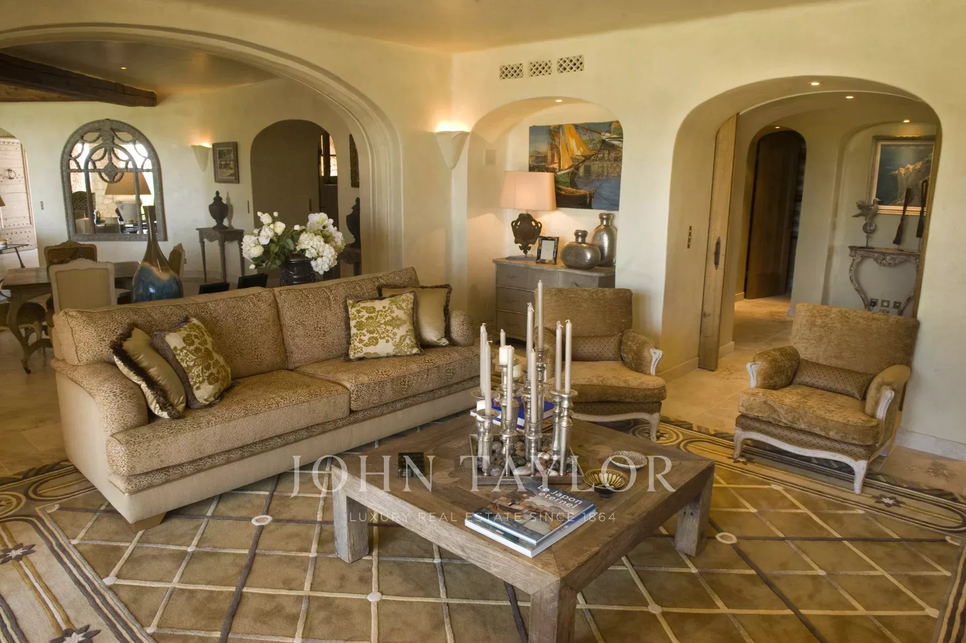 This unique and exceptional property is at only 20 minutes from Croisette in Cannes and 10 minutes from Cannes Mandelieu Airport. Private estate of 30 hectares laids out with care of hundred years old olive trees, lavender fields, lawns, tennis court, footpath or jogging (4 km) and heliport. Spectacular view overlooking the Bay of Cannes, Les Iles de Lerins and the Esterel Mountains.