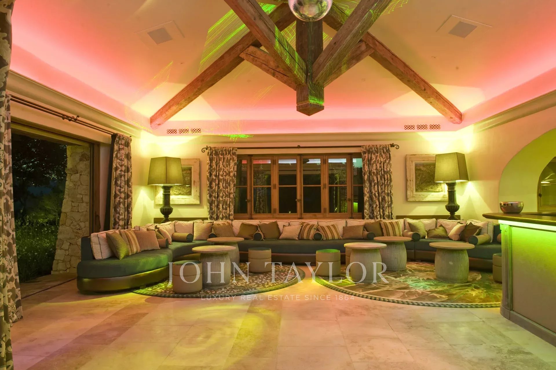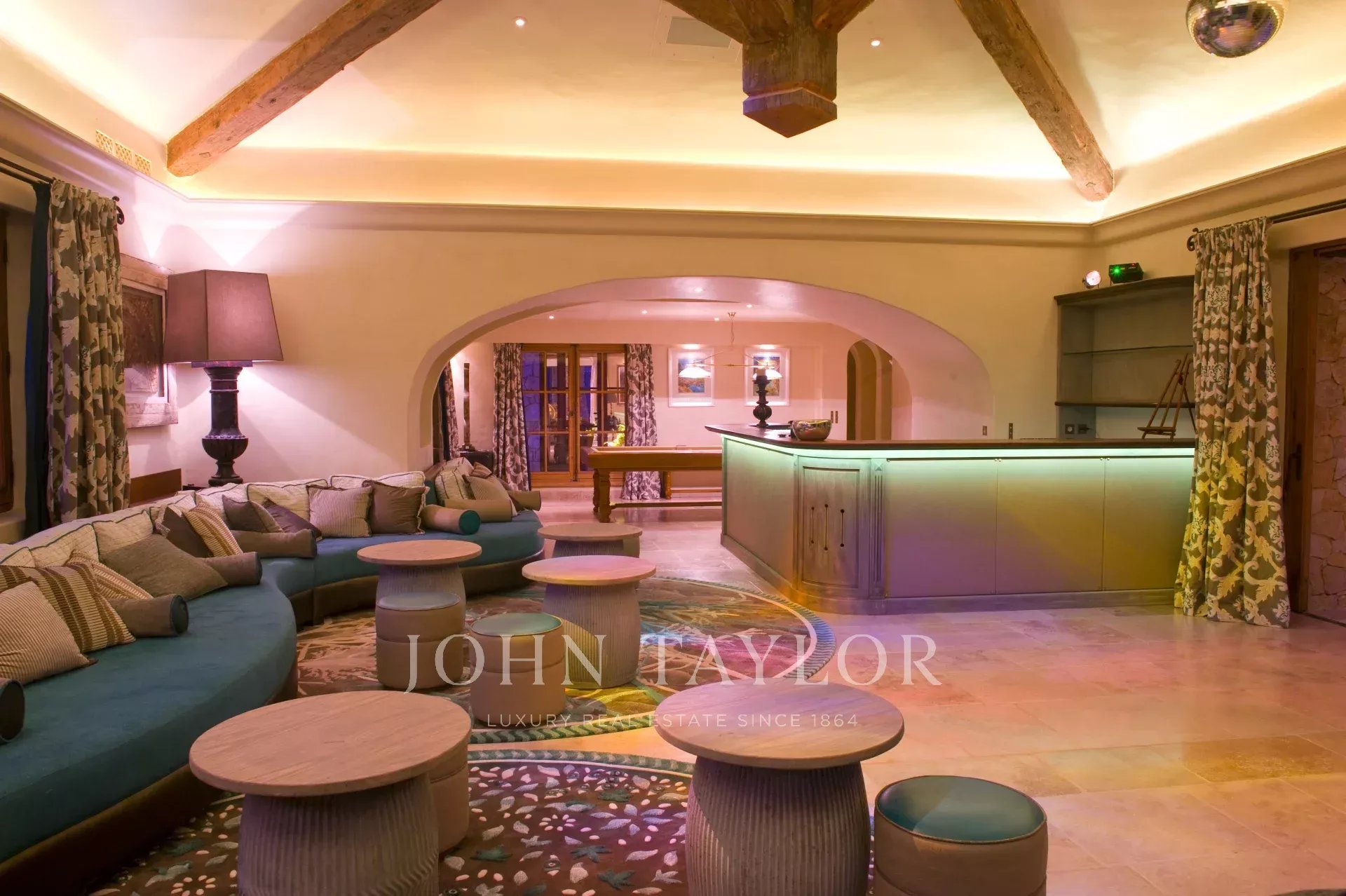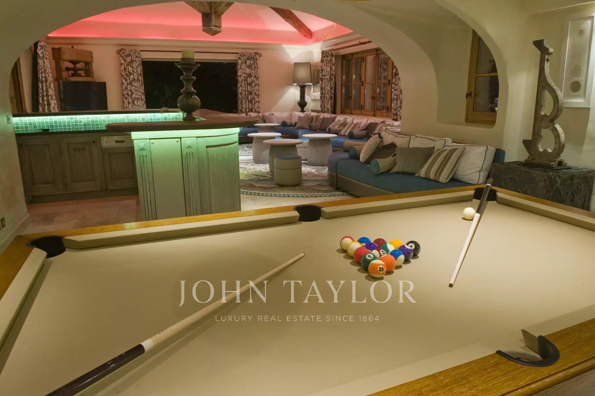 WEST SIDE : Lounge Home Cinéma, disco (56 m ²), billiards, bar, toilet opening on terrace of games and garden.