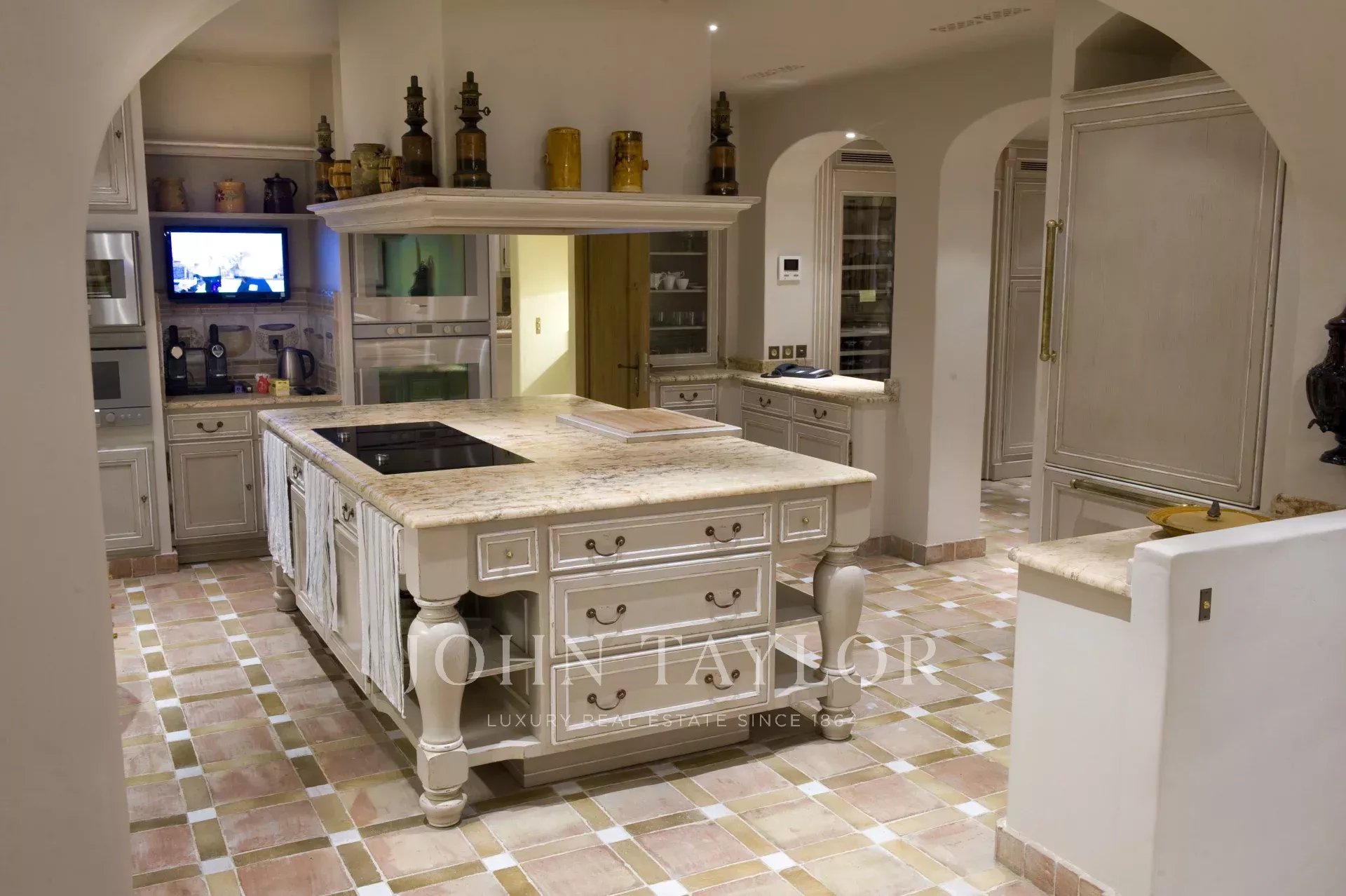 Magnificent and luxury large kitchen (90 m ²) completely equipped with scullery, storeroom, sideboard (independent direct access), big laundry and ironing room with independent access.