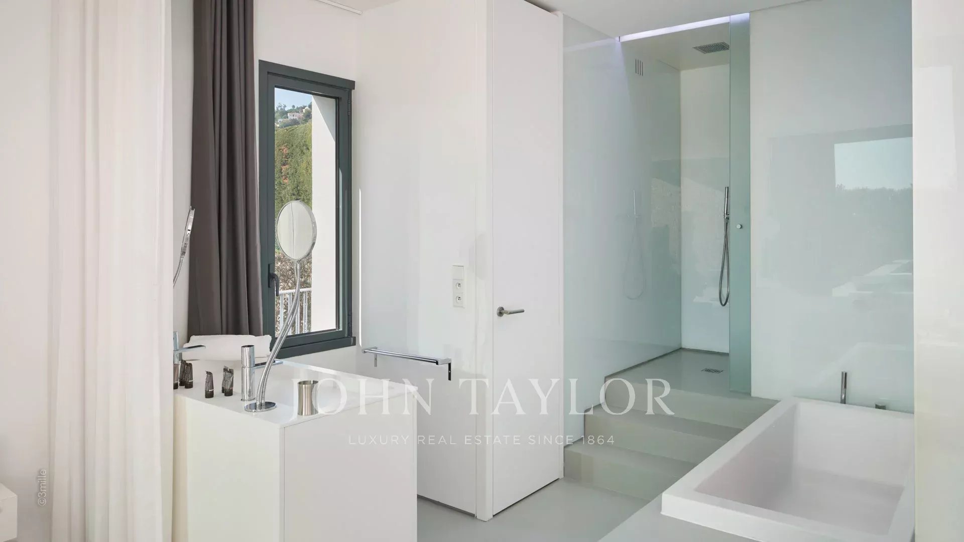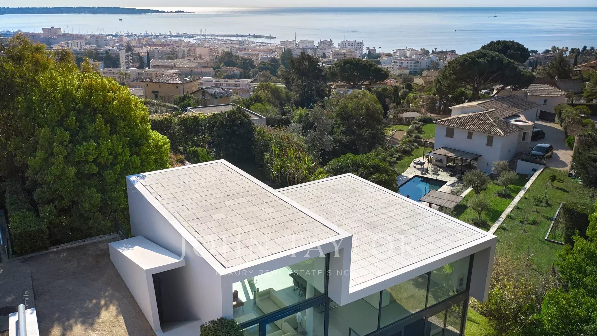 On the hills of Golfe-Juan and entirely air-conditioned, modern architecture, an attractive property built on two levels and comprising as follows :