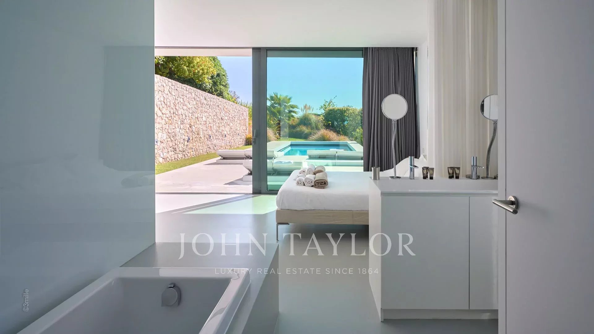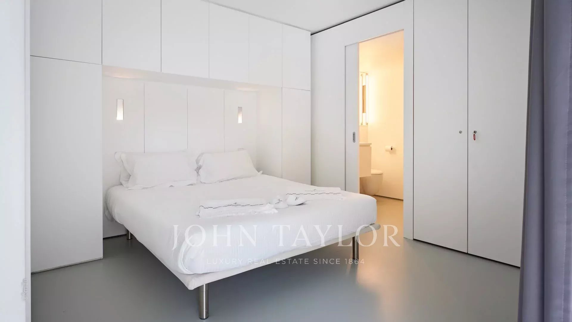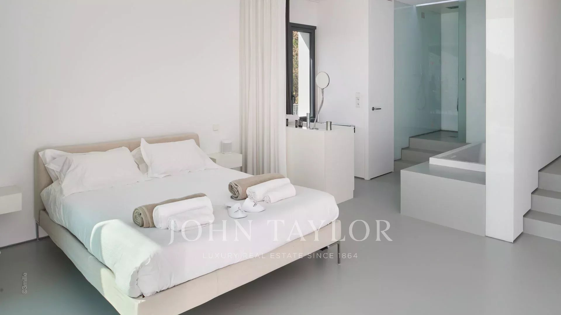 Master bedroom (double bed) opening onto terrace, sea view - Open bathroom / WC