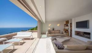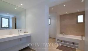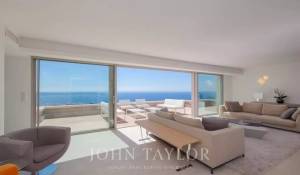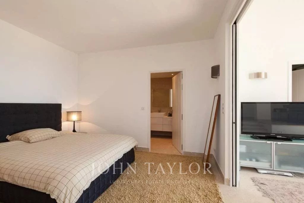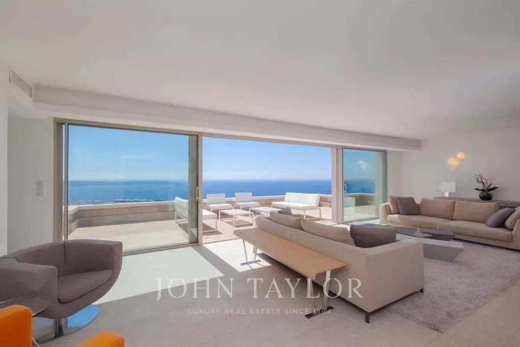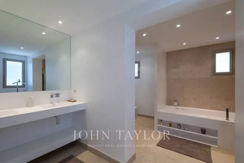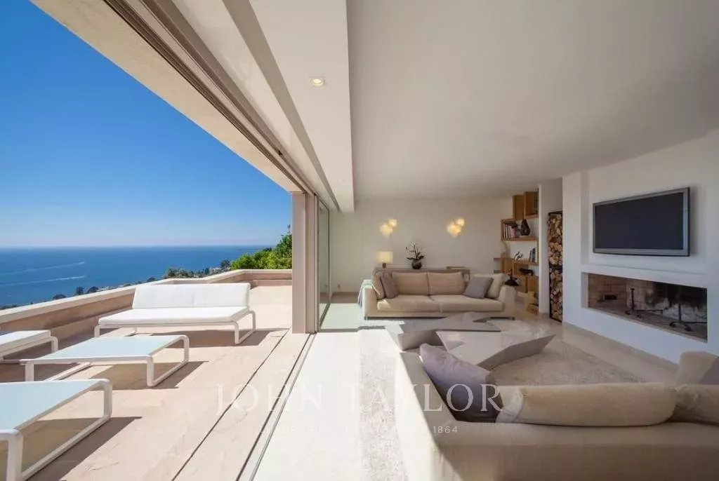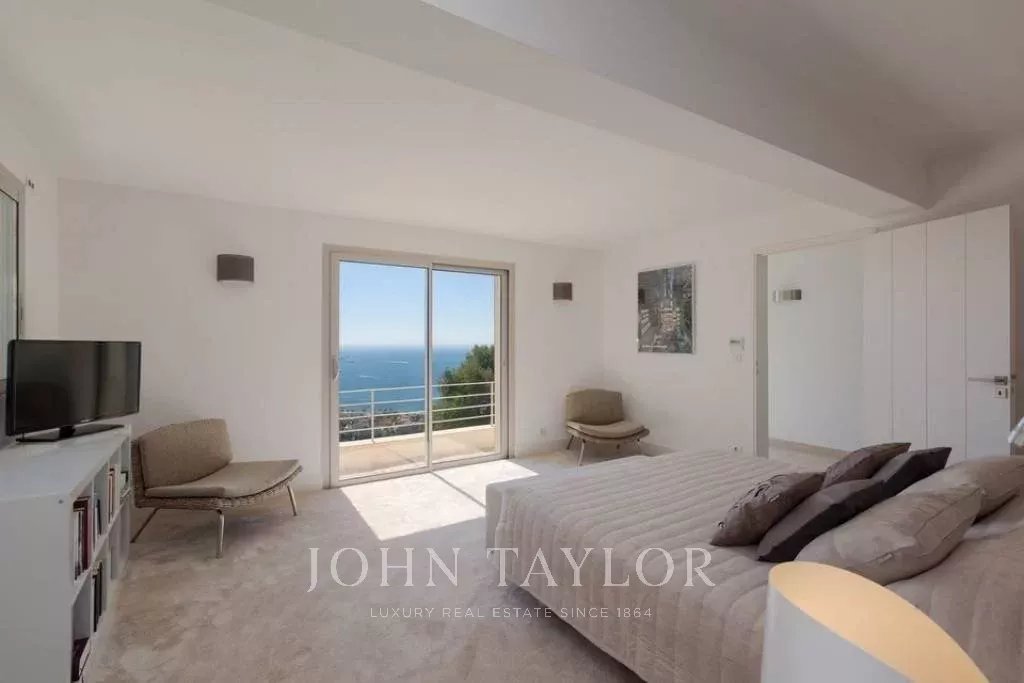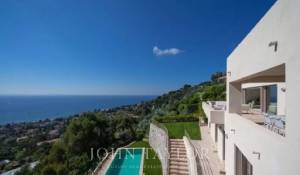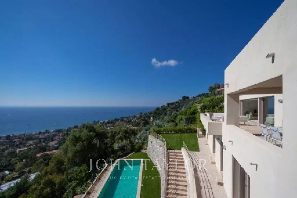 Overlooking the whole bay to the Cap d'Antibes, facing South East, superb contemporary style villa entirely and luxuriously renovated, standing in grounds of about 2 000 sq.m.