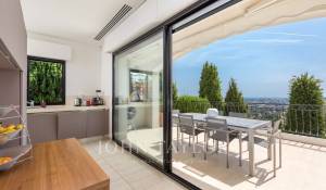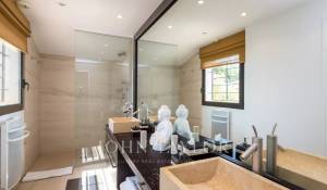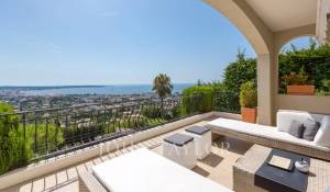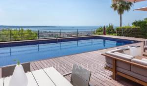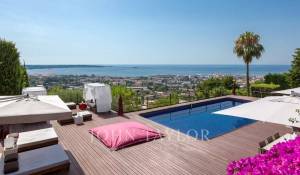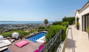 In the heights of Golfe Juan and set in a landscaped garden of about 3 000 sq.m, this magnificent villa, with first class contemporary style appointments, offers exceptional views of the sea, Cap d'Antibes and Nice.