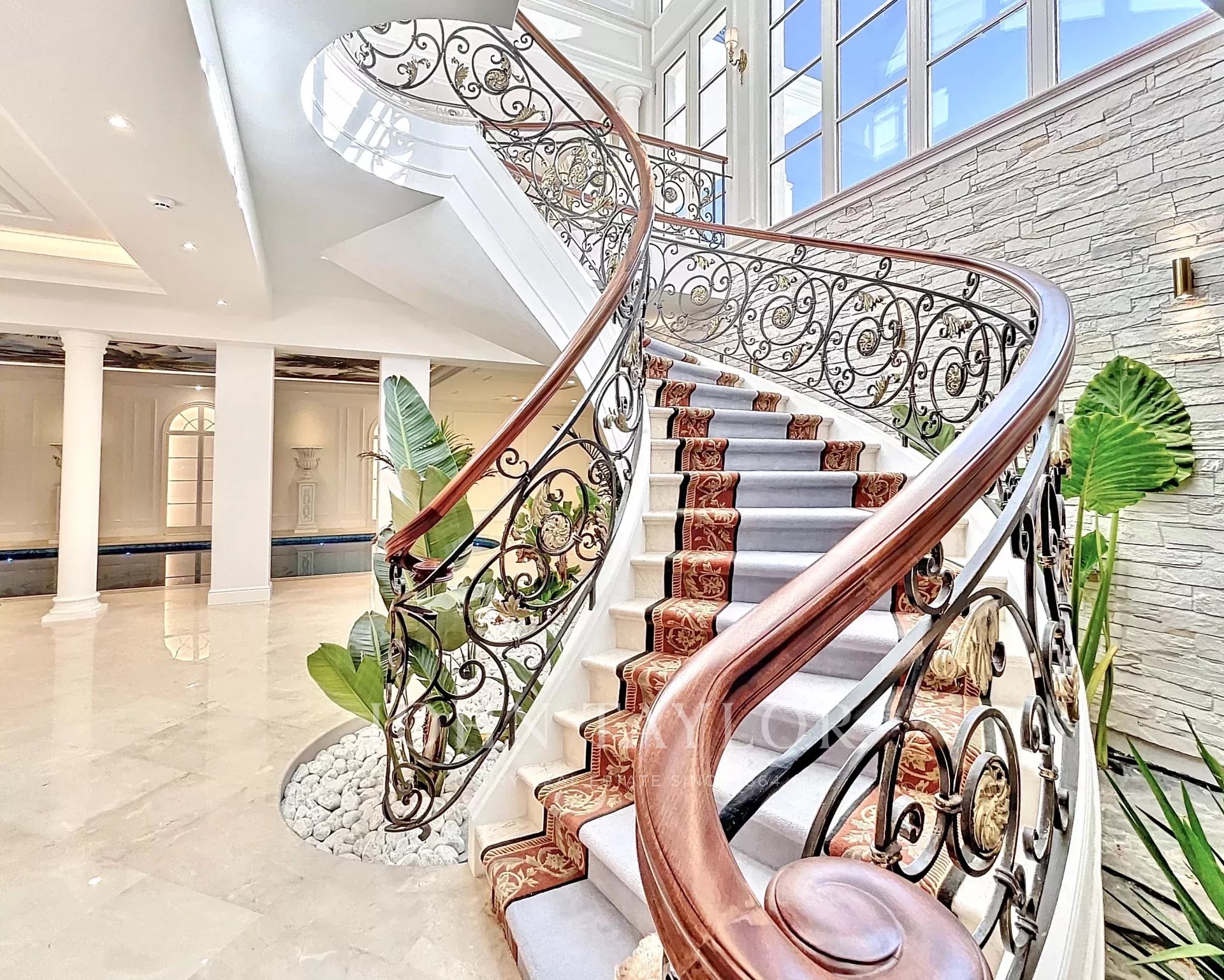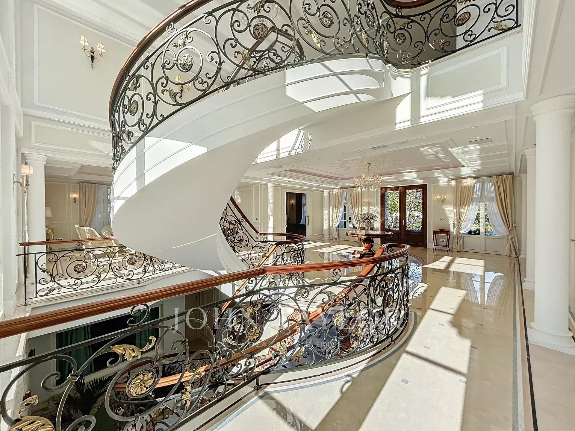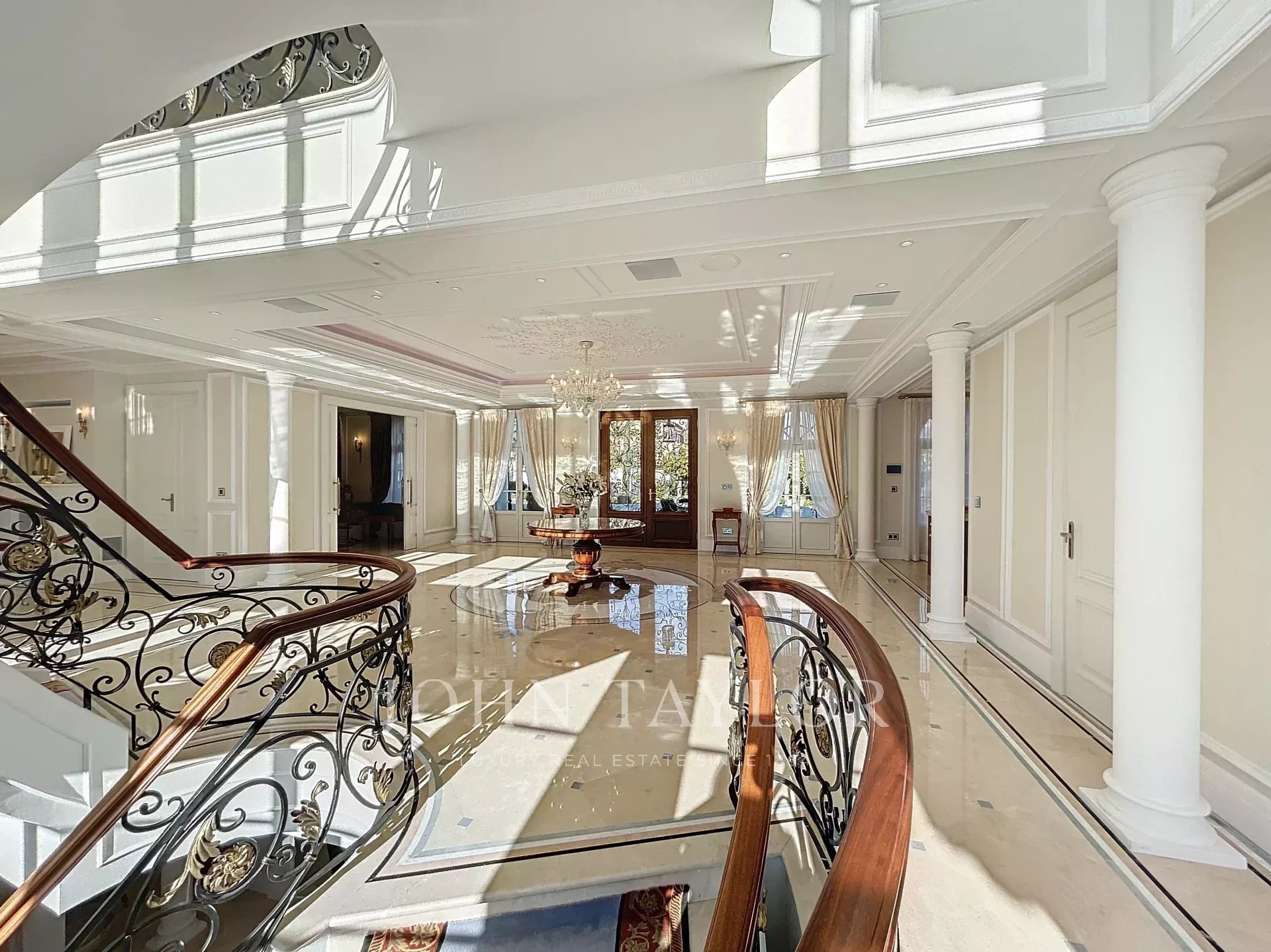 A majestic central staircase leads to the UPPER FLOOR: